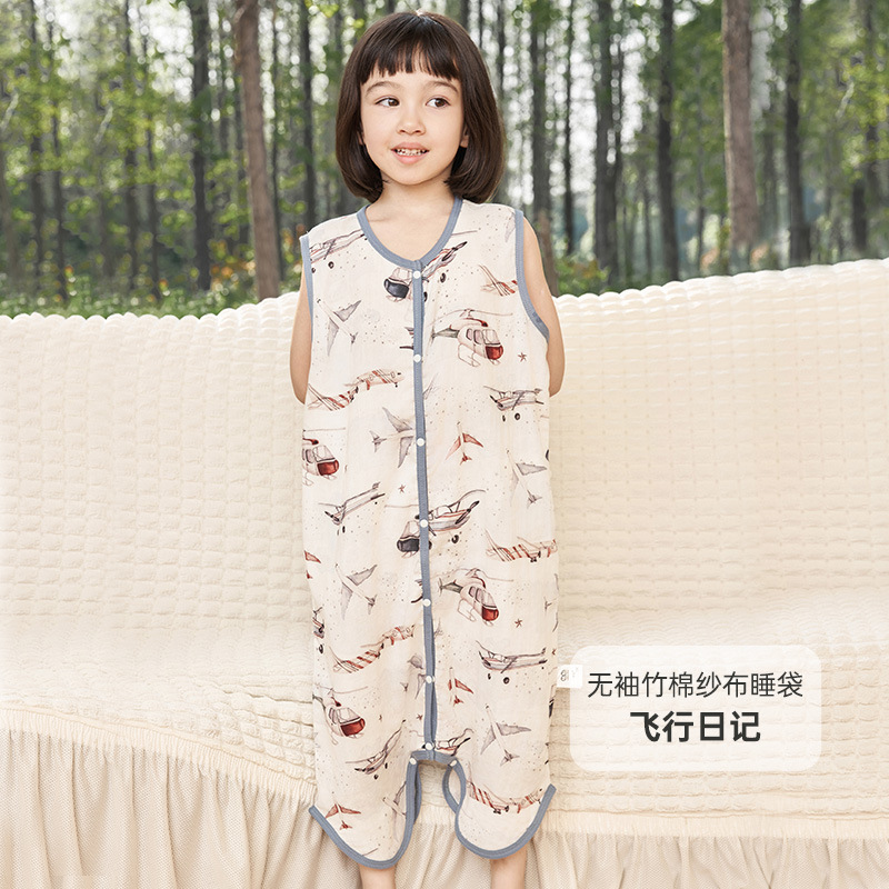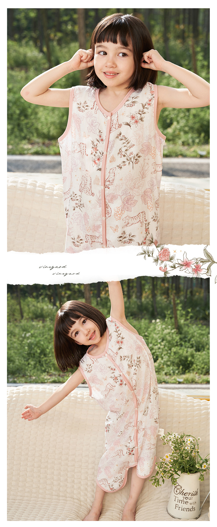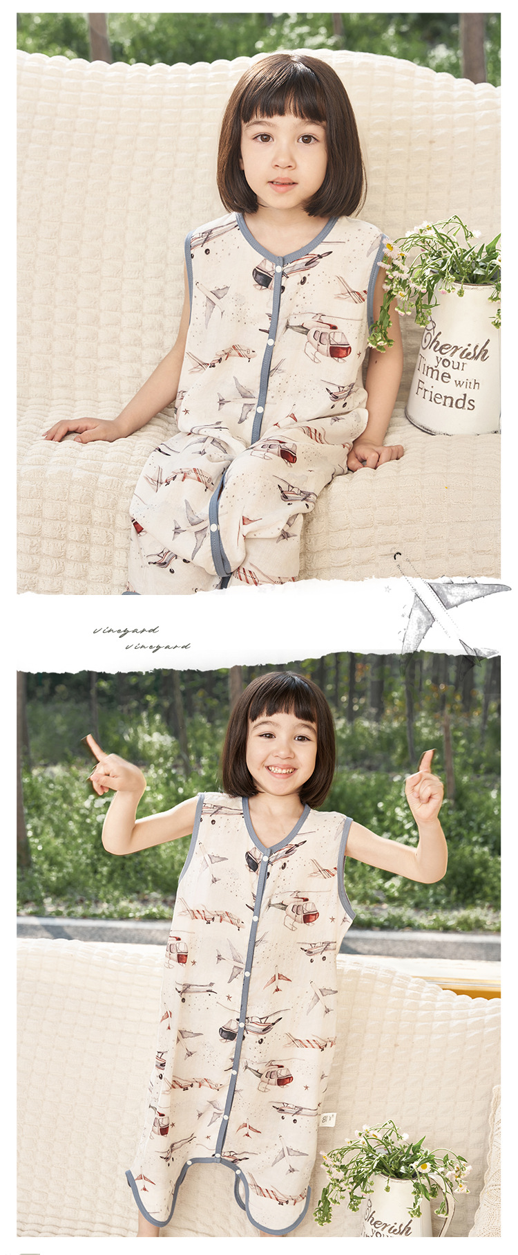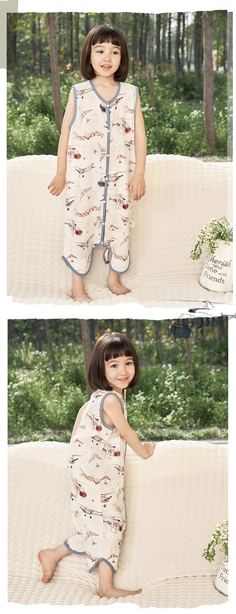 안단 어린이 침낭 여름용 대나무 면 거즈 에어컨 룸 민소매 조끼형 가벼운 유아용 다리 분리형 침낭