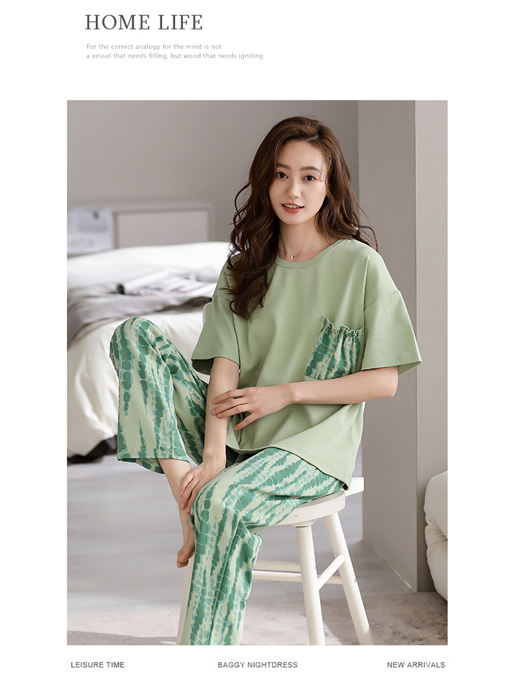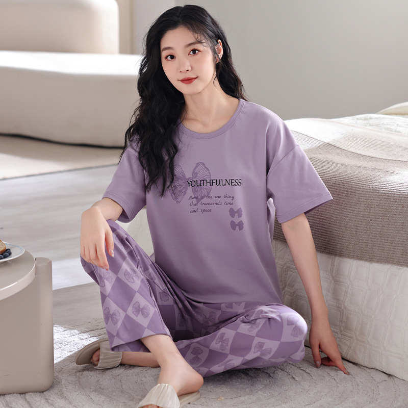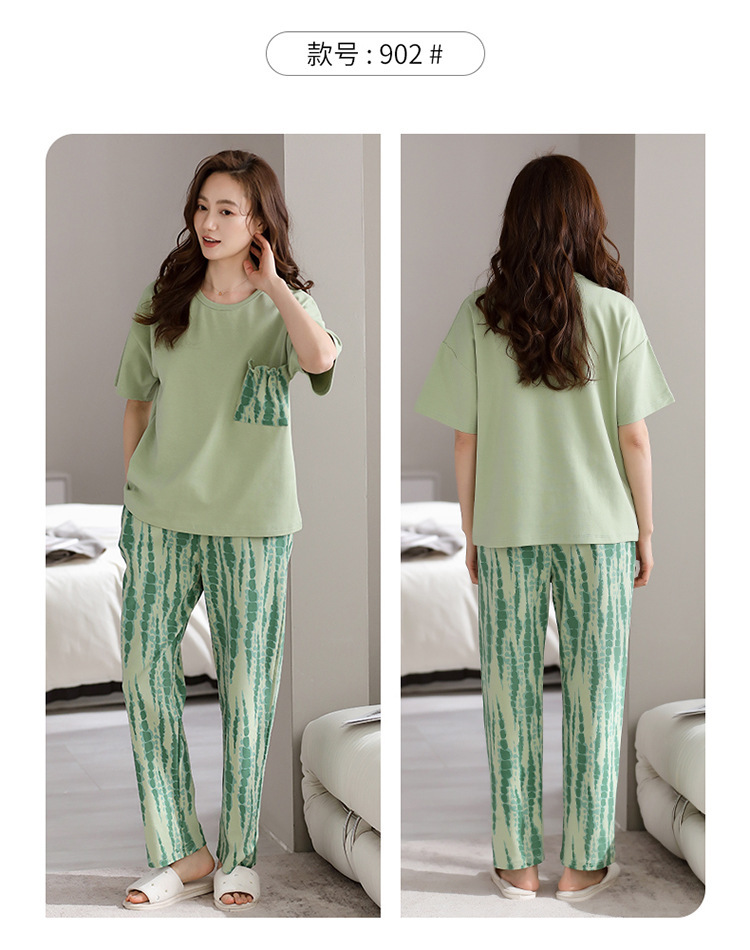 코튼 파자마 여성의 여름 얇은 새로운 반팔 바지 초대형 뚱뚱한 소녀 홈 옷 투피스 세트스토어 가기