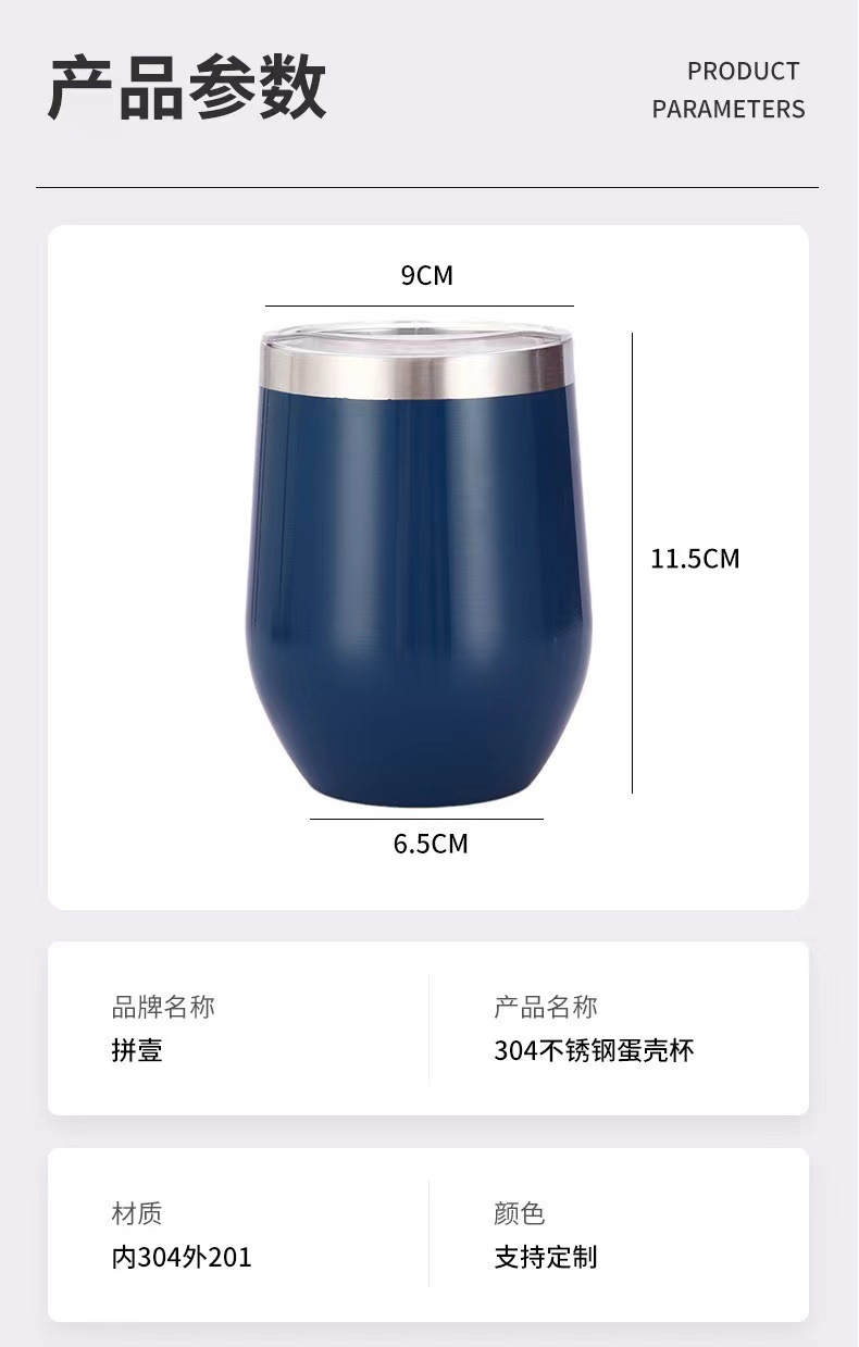 국경 간 달걀 껍질 컵 이중 층 진공 12ozU-형 보온병 컵 304 스테인레스 스틸 스와이그 계란 컵 레드 와인 컵 도매