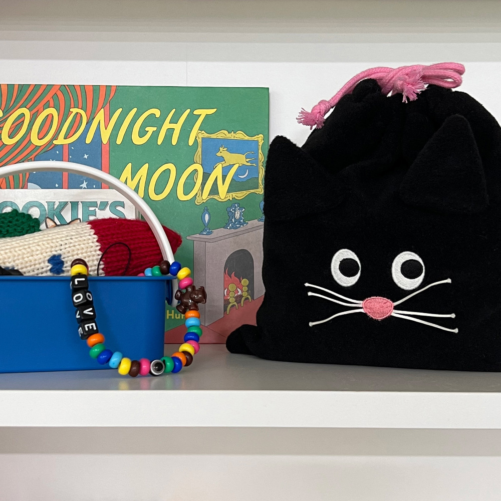 한국 인스 스타일 고양이 자수 조임끈 주머니 여행용 생리대 동전 화장품 수납 가방 인스 동일 스타일