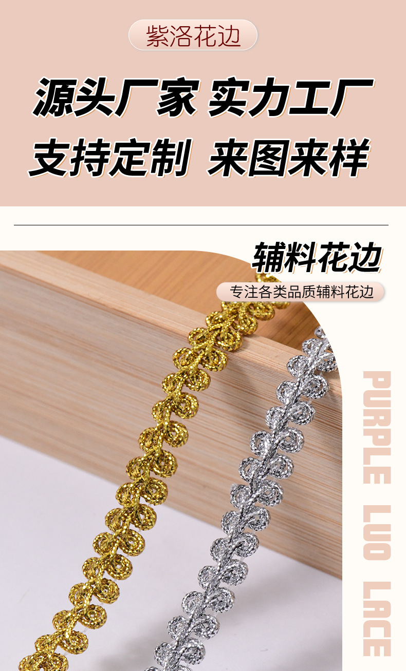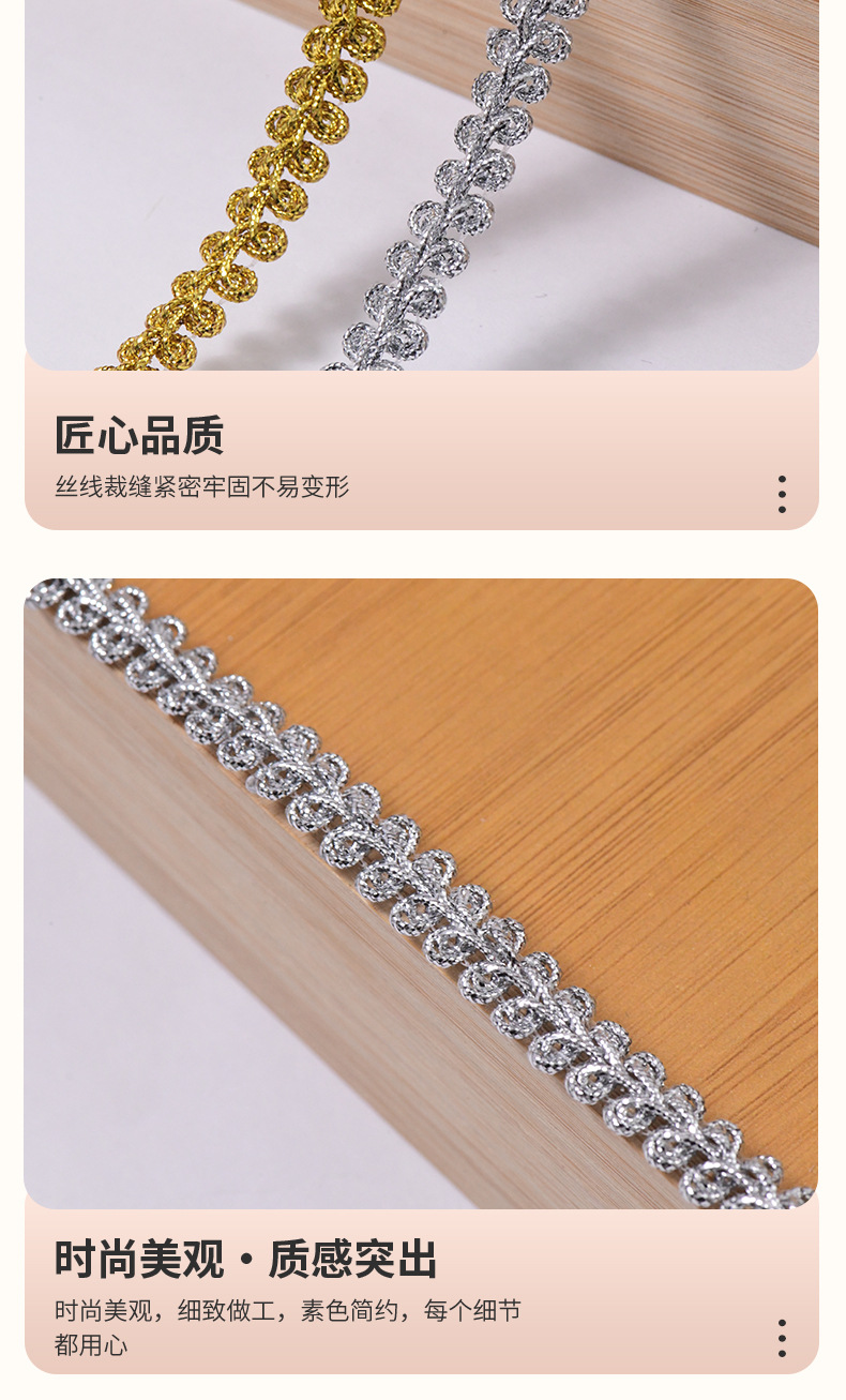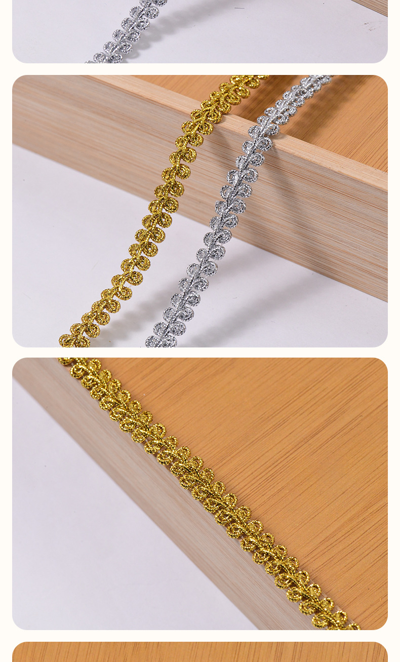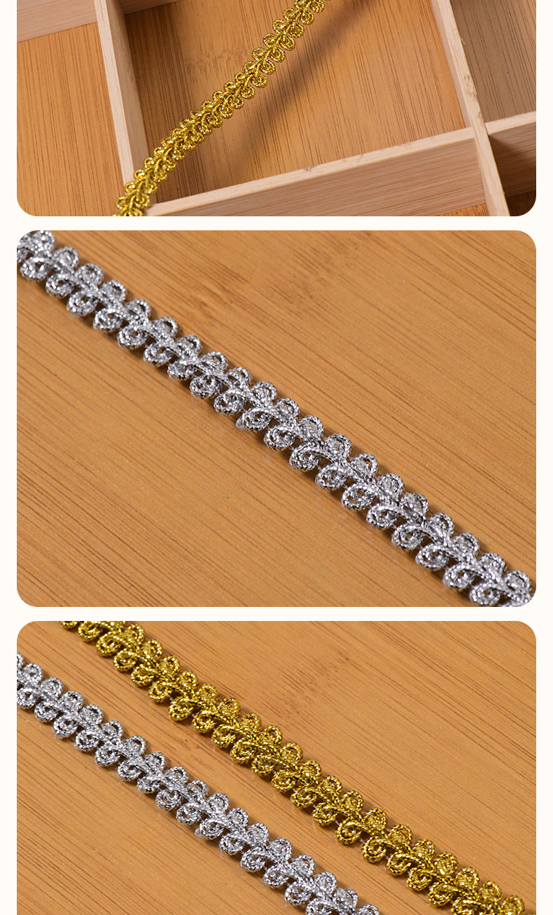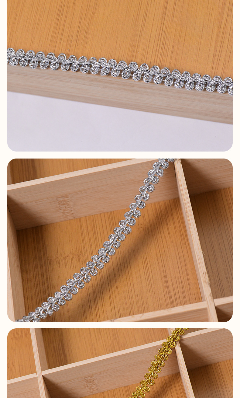 공장 직접 재고 공급 0.8cm 금 및 실버 지네 가장자리 헤링탑 레이스 의류 의류 홈 섬유 액세서리스토어 가기