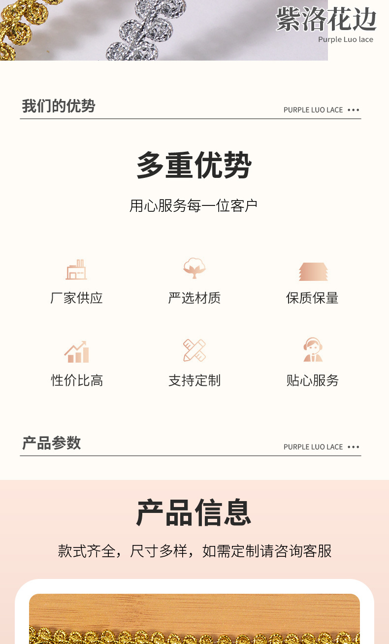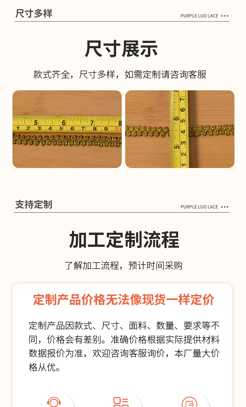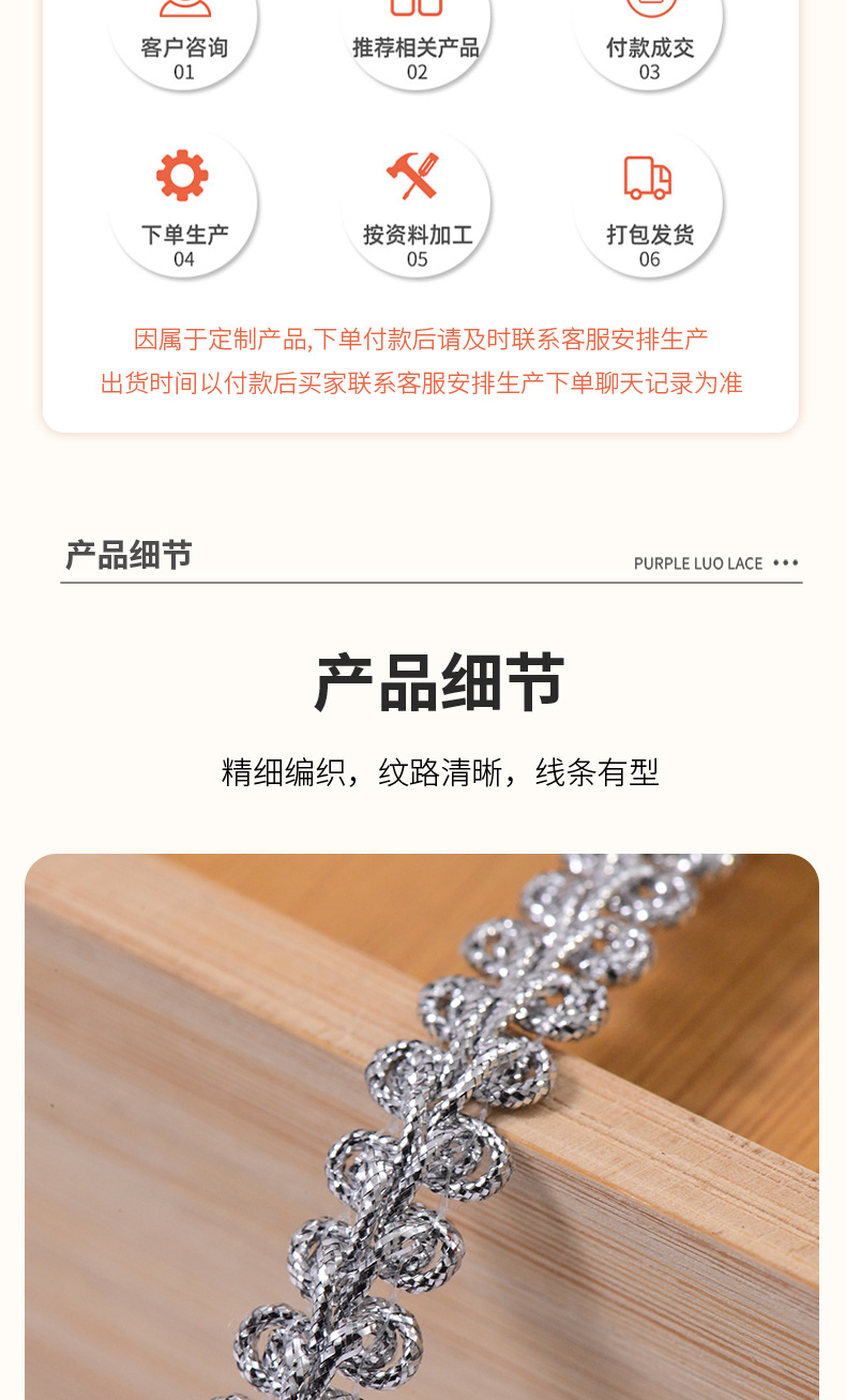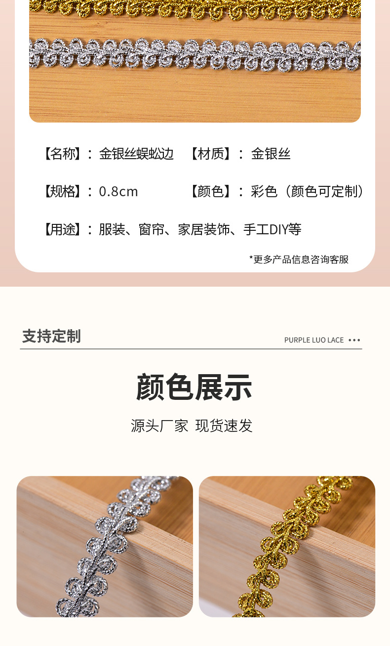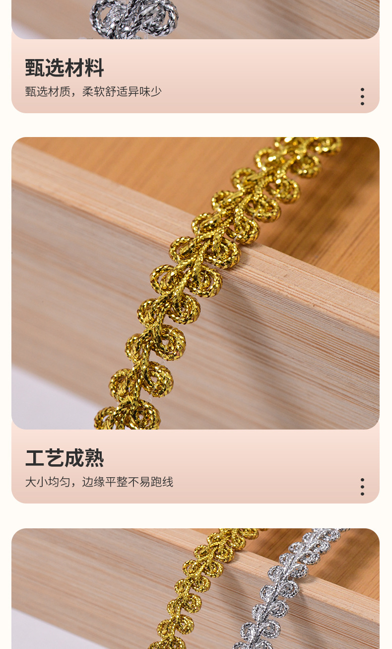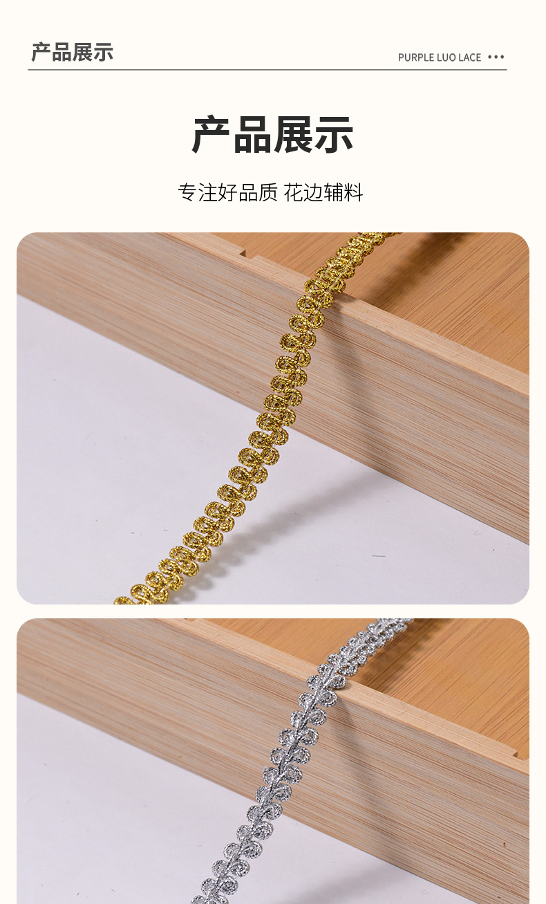 공장 직접 재고 공급 0.8cm 금 및 실버 지네 가장자리 헤링탑 레이스 의류 의류 홈 섬유 액세서리스토어 가기