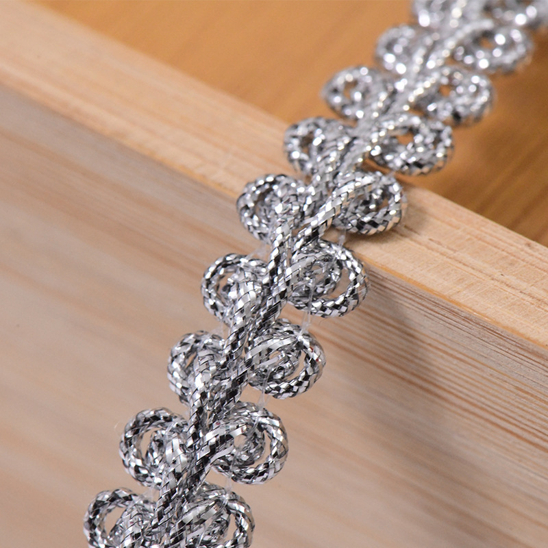 공장 직접 재고 공급 0.8cm 금 및 실버 지네 가장자리 헤링탑 레이스 의류 의류 홈 섬유 액세서리