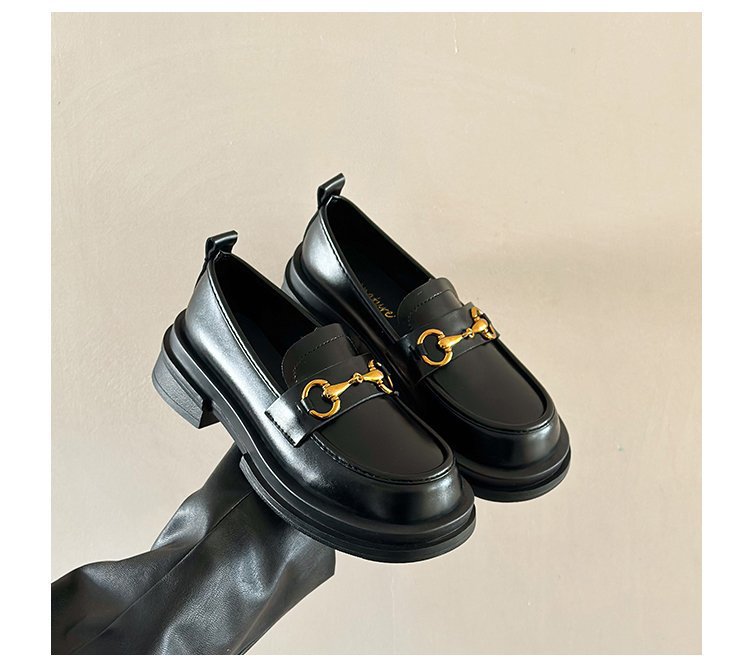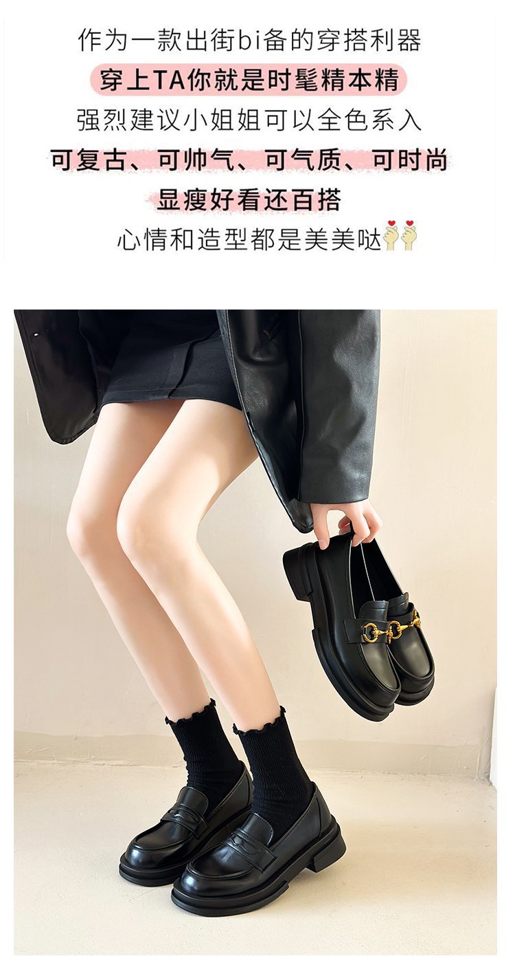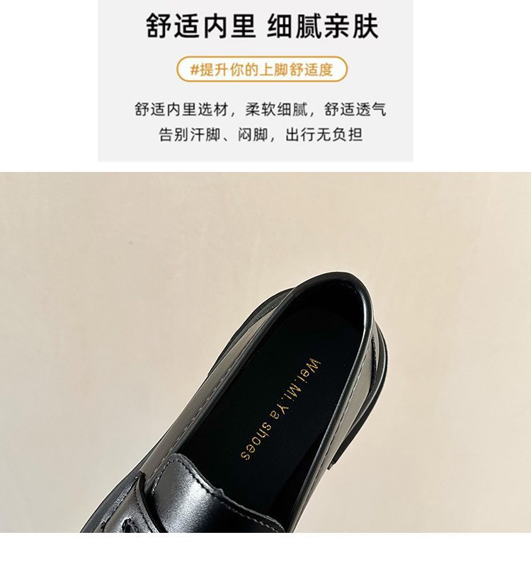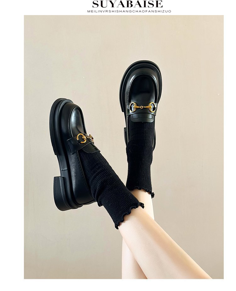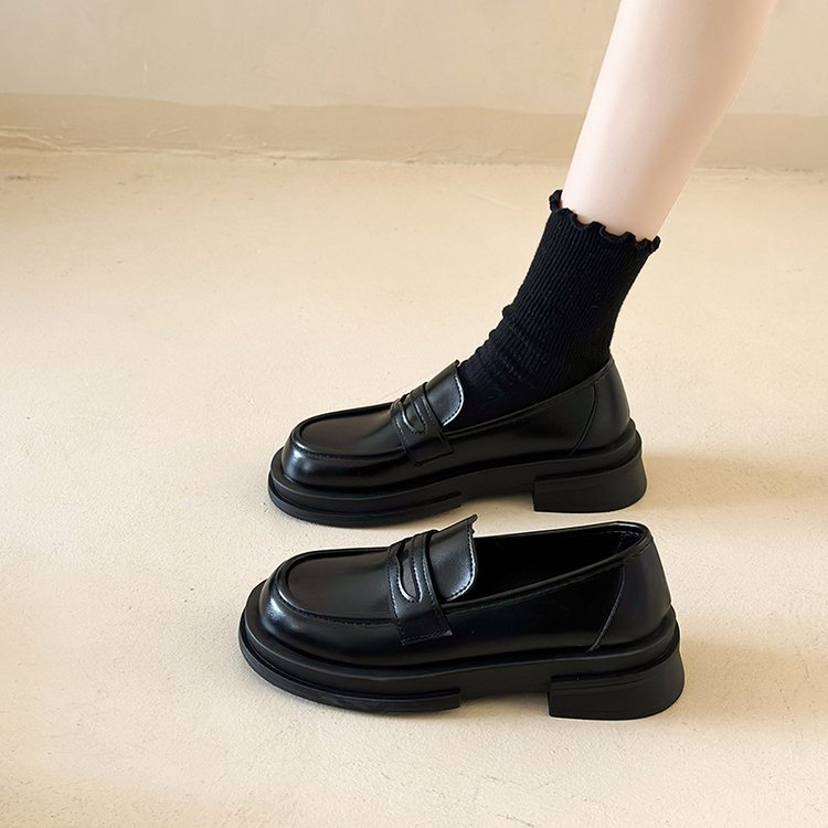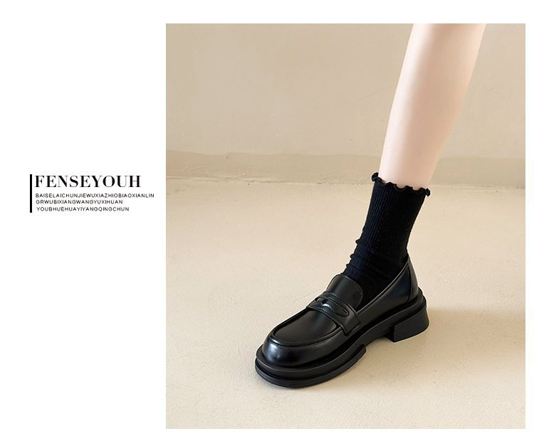영국 스타일의 작은 가죽 신발 여성의 2024 새로운 올매치 두꺼운 바닥 로퍼 여성의 여름 두꺼운 힐 신발 쇼 작은 발
