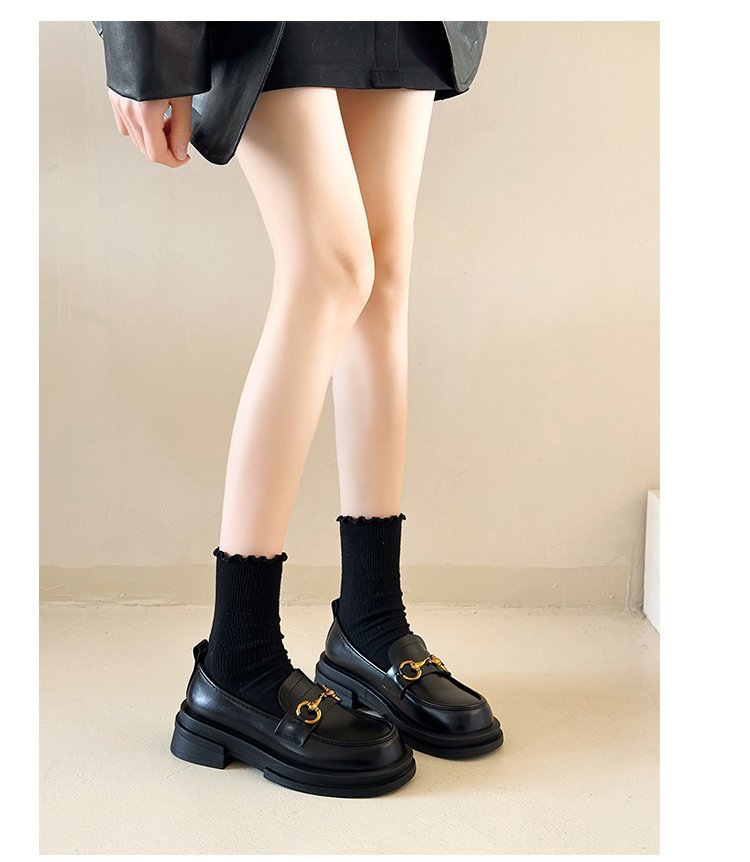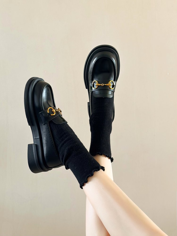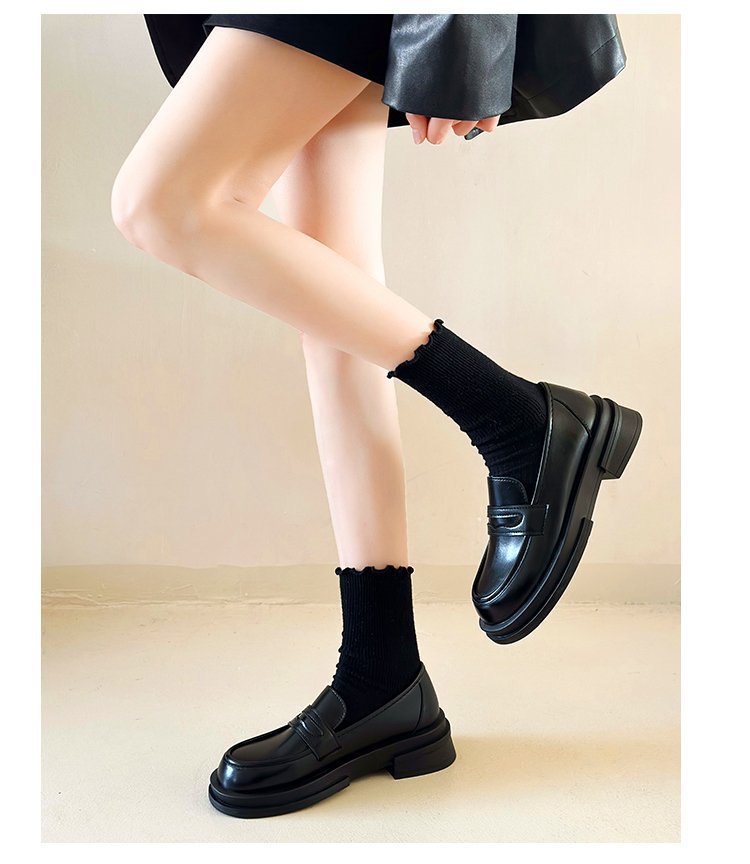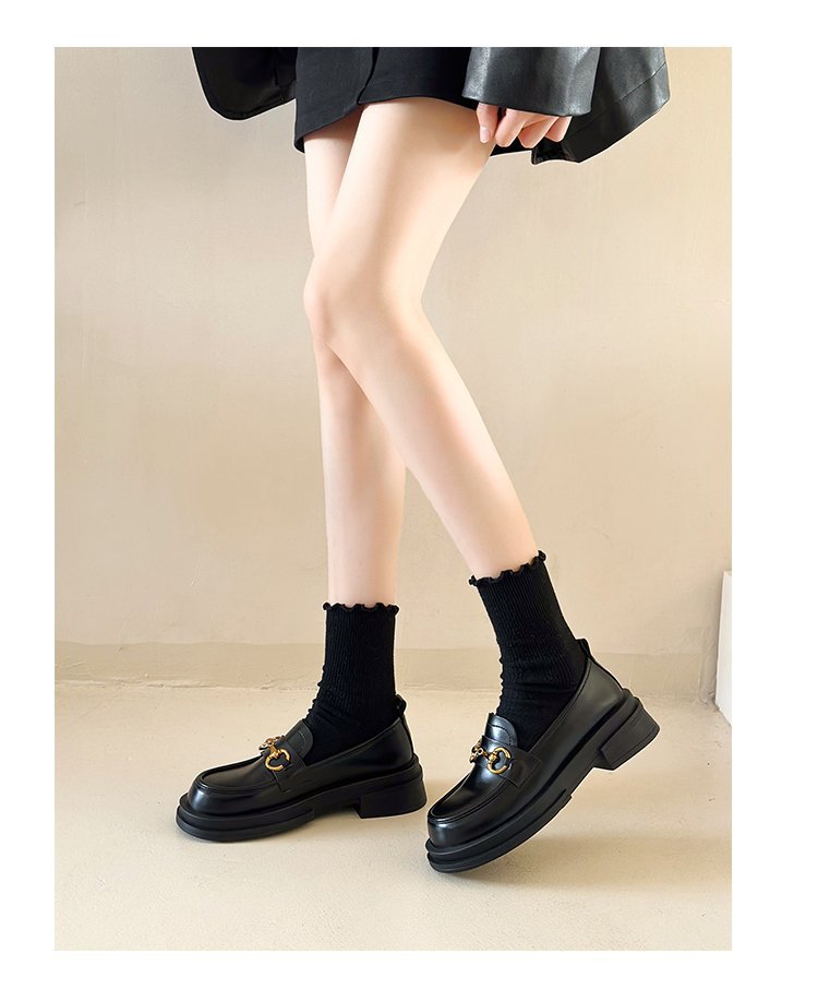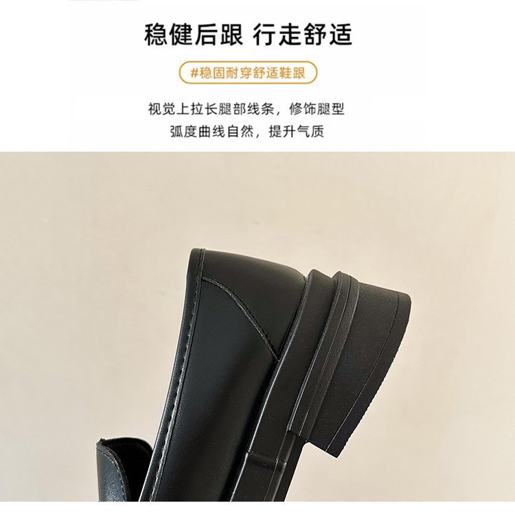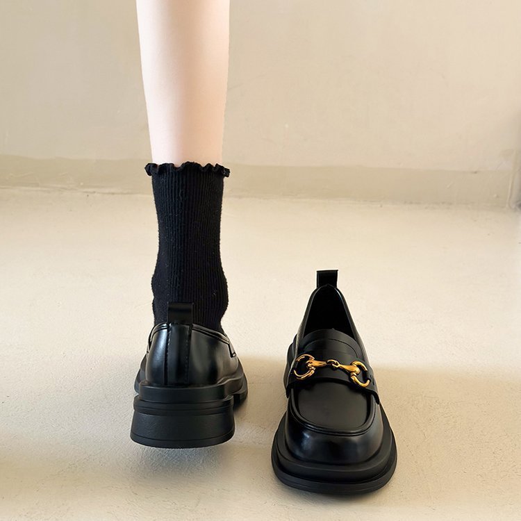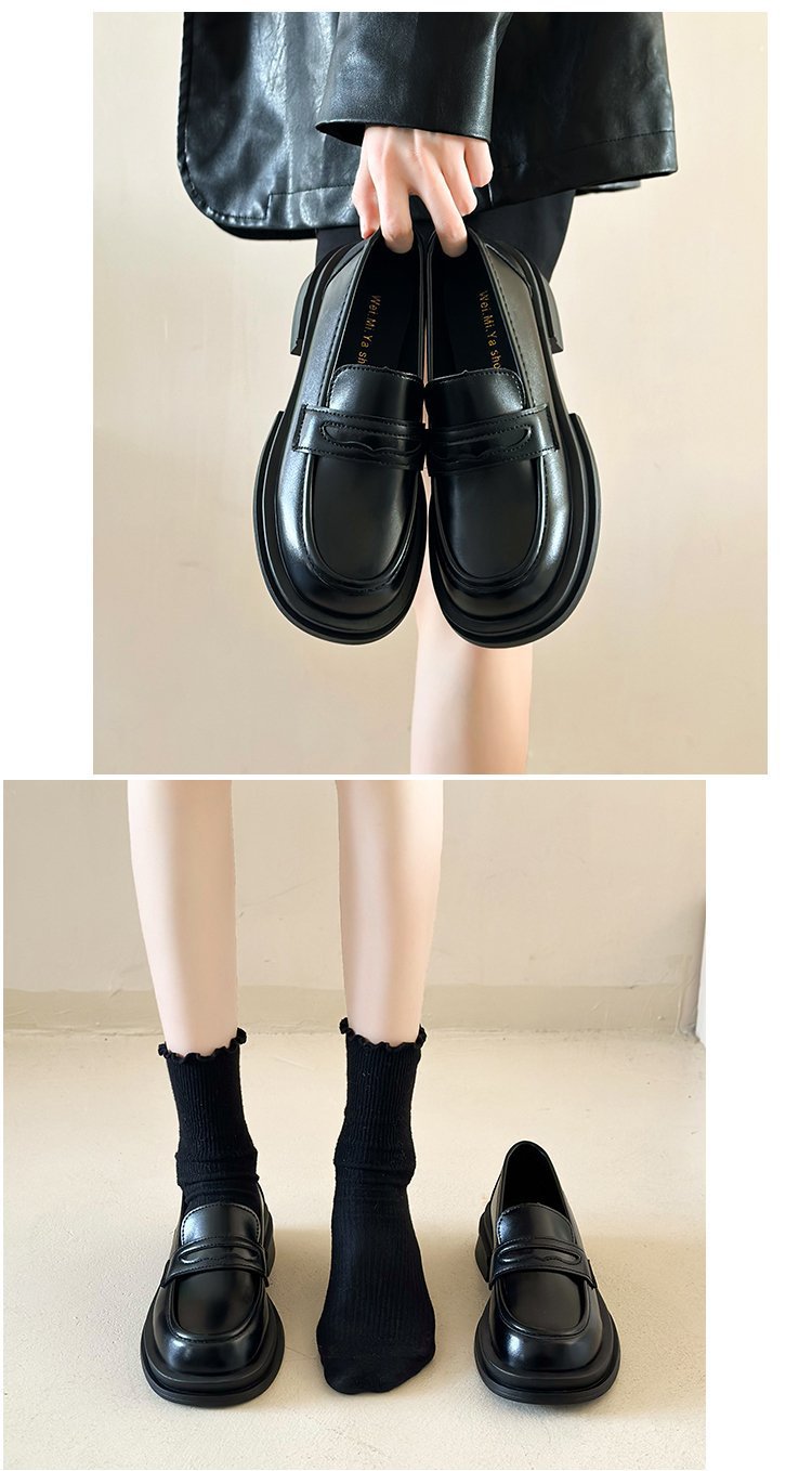 영국 스타일의 작은 가죽 신발 여성의 2024 새로운 올매치 두꺼운 바닥 로퍼 여성의 여름 두꺼운 힐 신발 쇼 작은 발