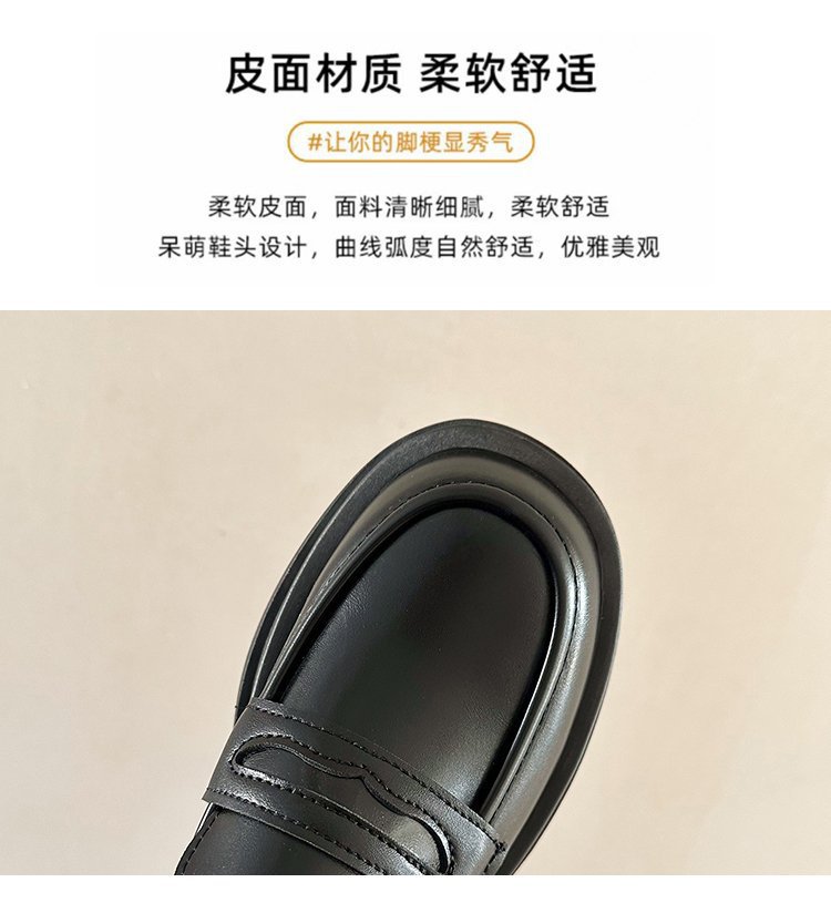 영국 스타일의 작은 가죽 신발 여성의 2024 새로운 올매치 두꺼운 바닥 로퍼 여성의 여름 두꺼운 힐 신발 쇼 작은 발스토어 가기