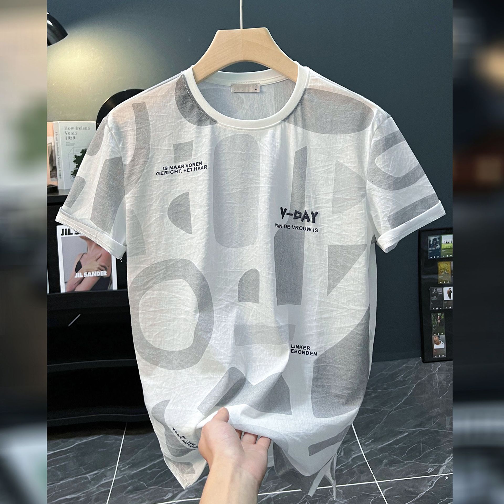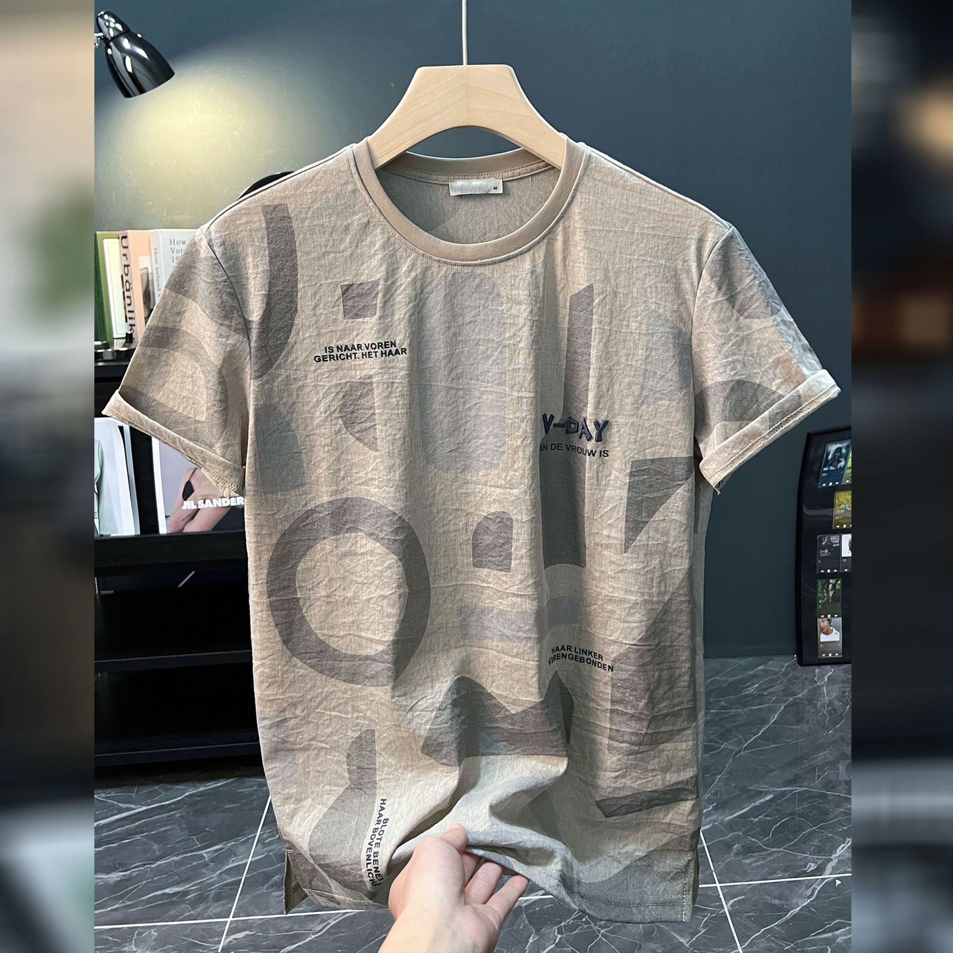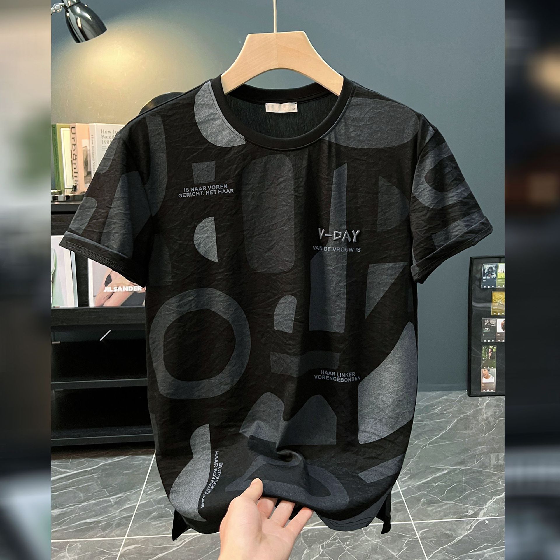 반팔 티셔츠 남자 여름 2024 새로운 초박형 힙합 탑 한국식 편지 인쇄 된 옷 티셔츠 기본 셔츠스토어 가기