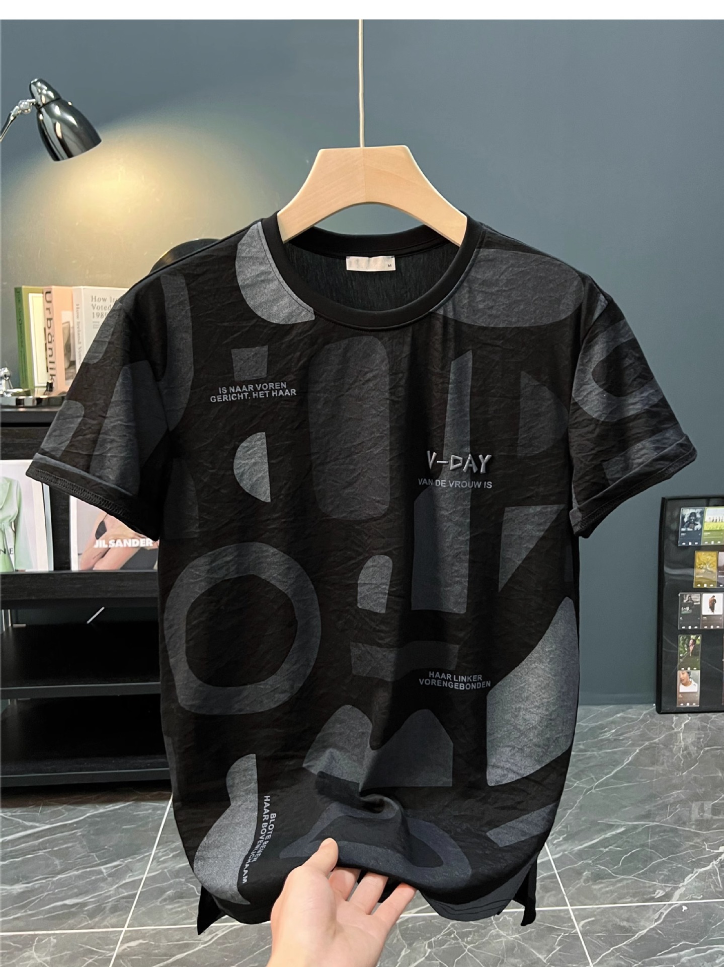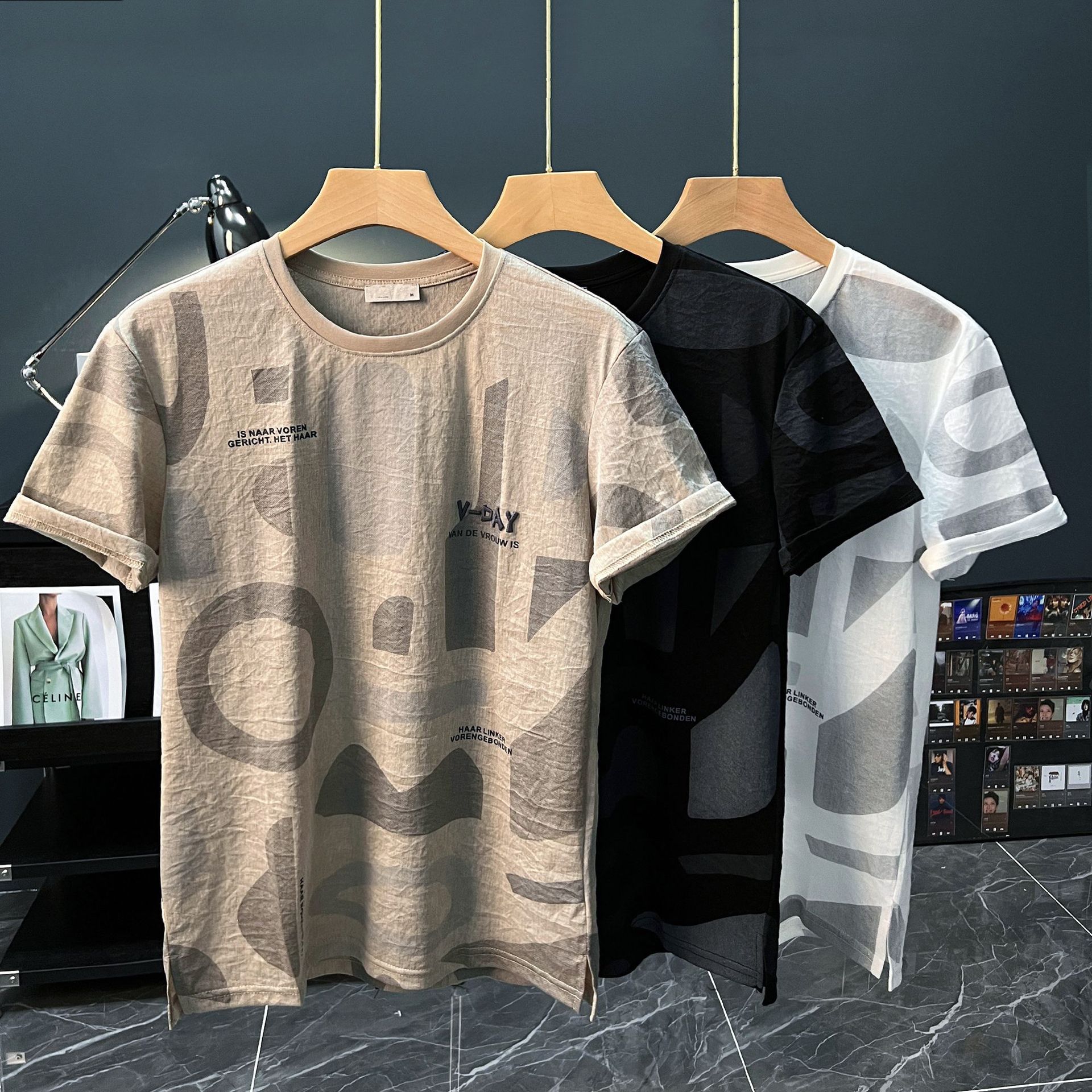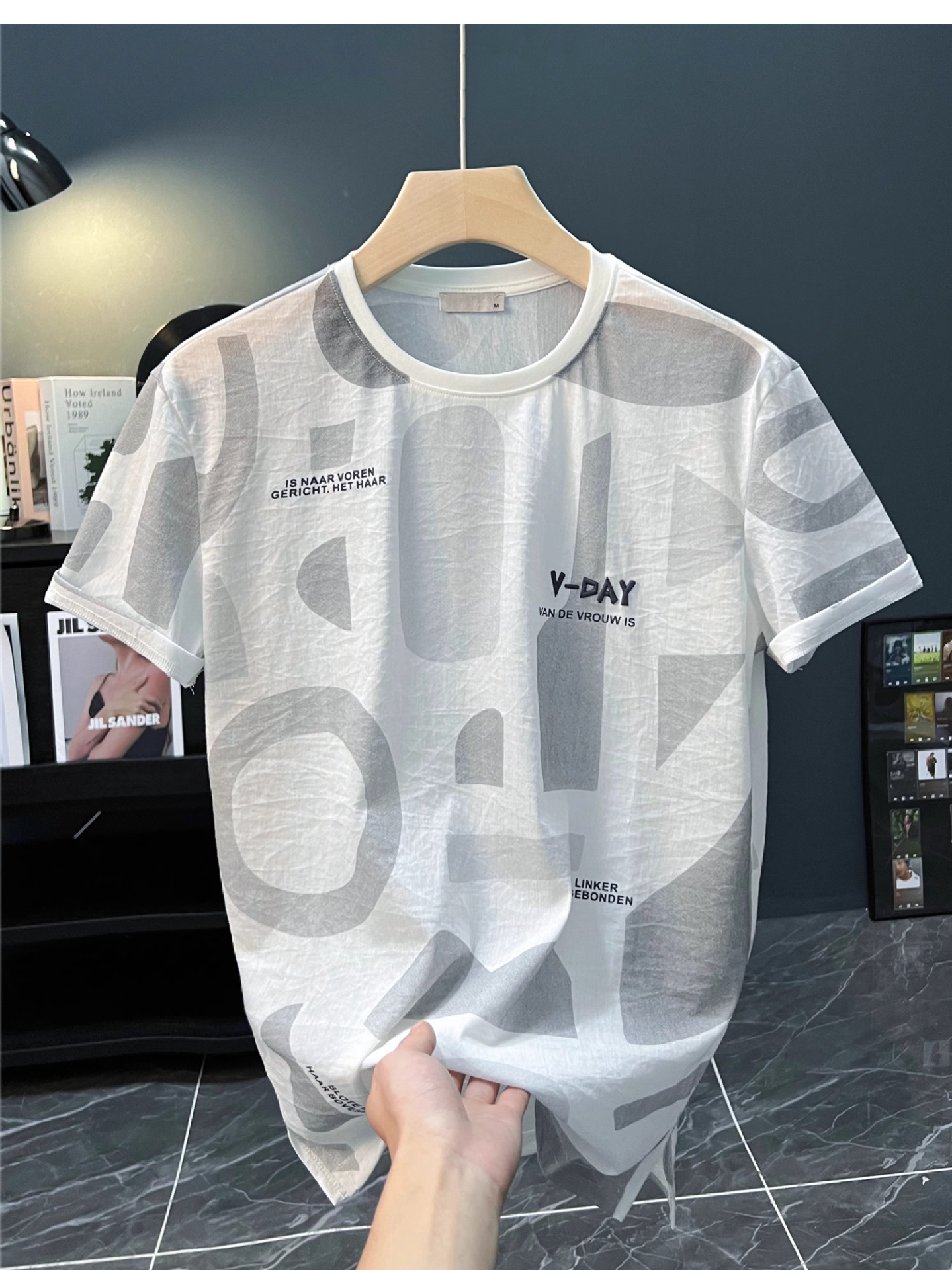 반팔 티셔츠 남자 여름 2024 새로운 초박형 힙합 탑 한국식 편지 인쇄 된 옷 티셔츠 기본 셔츠스토어 가기