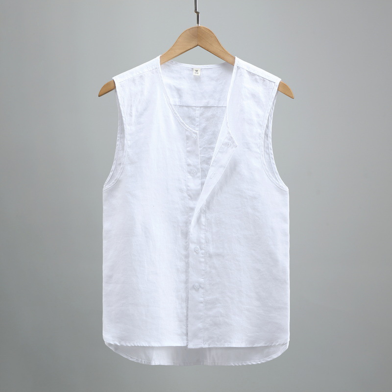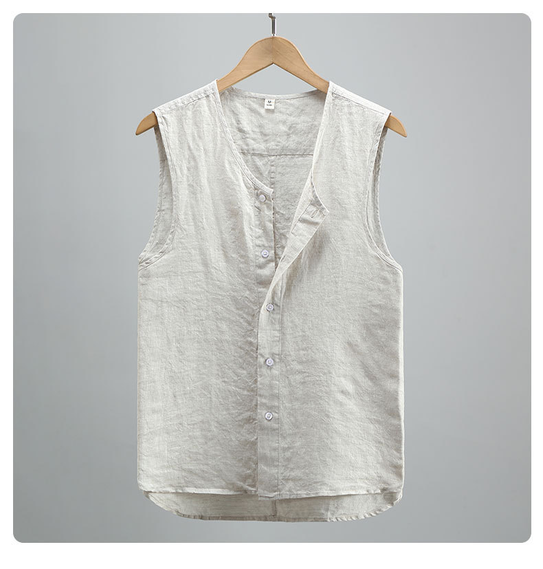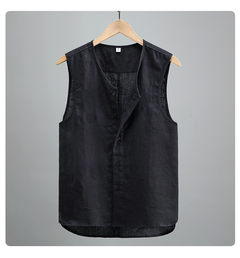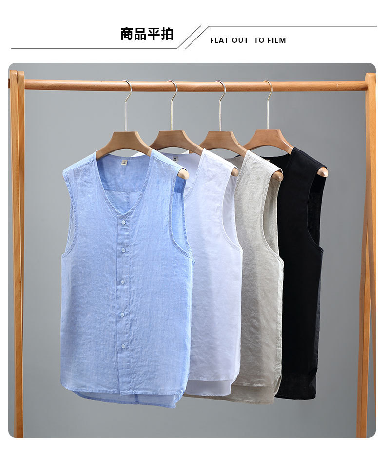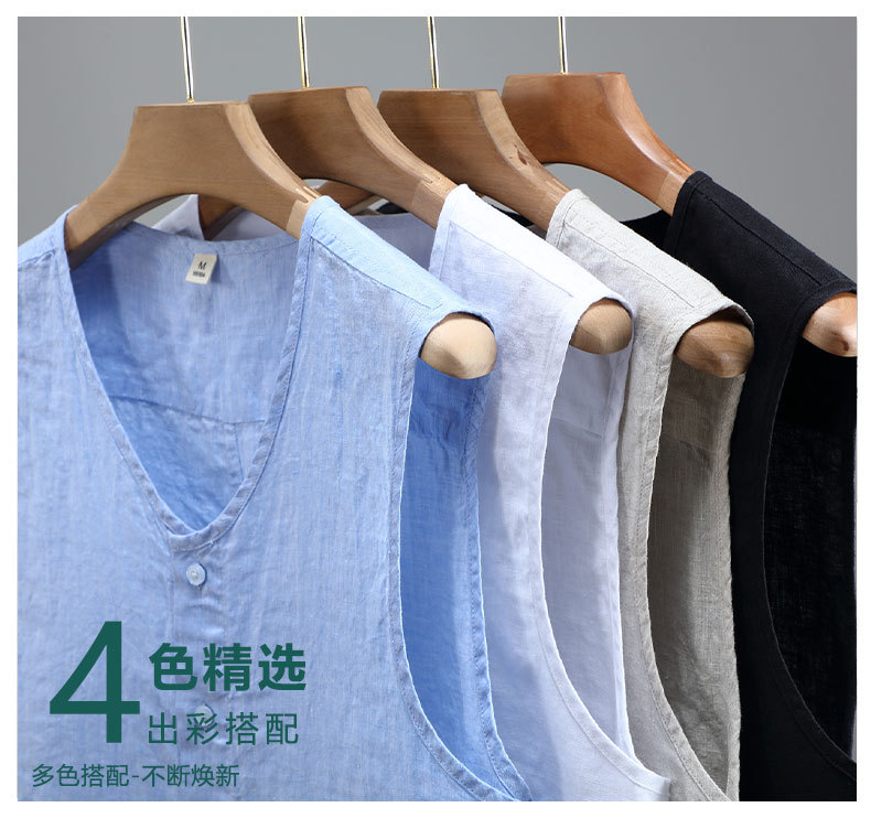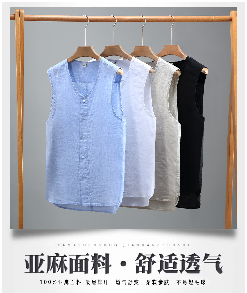 921 여름 솔리드 컬러 리넨 조끼 남성 청소년 민소매 빈티지 린넨 소재 통기성 얇은 버튼스토어 가기