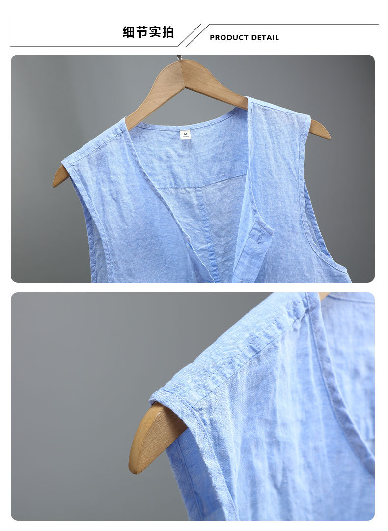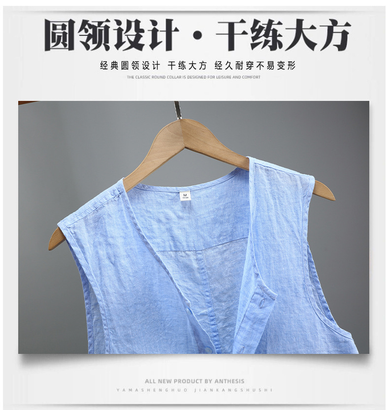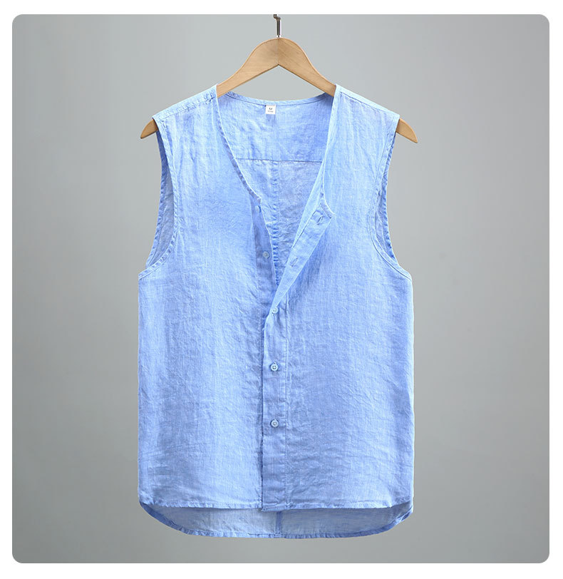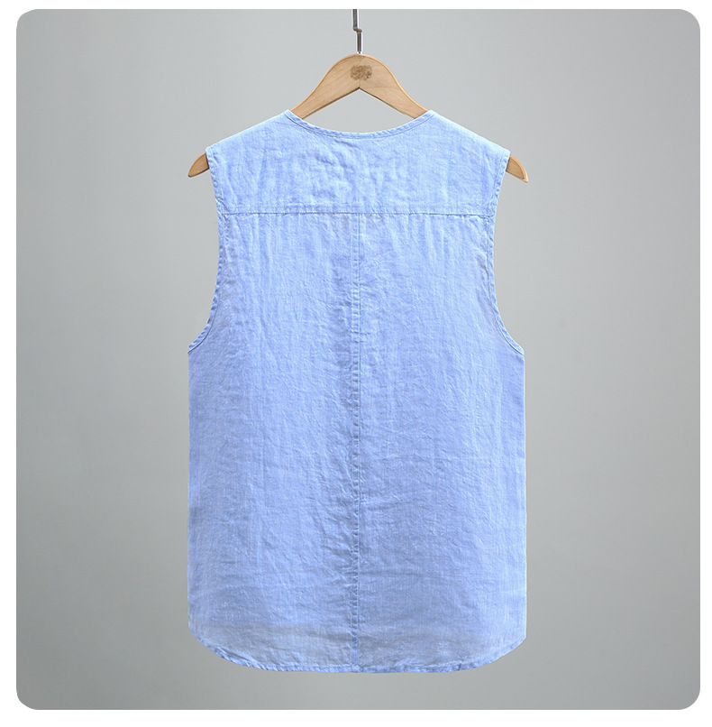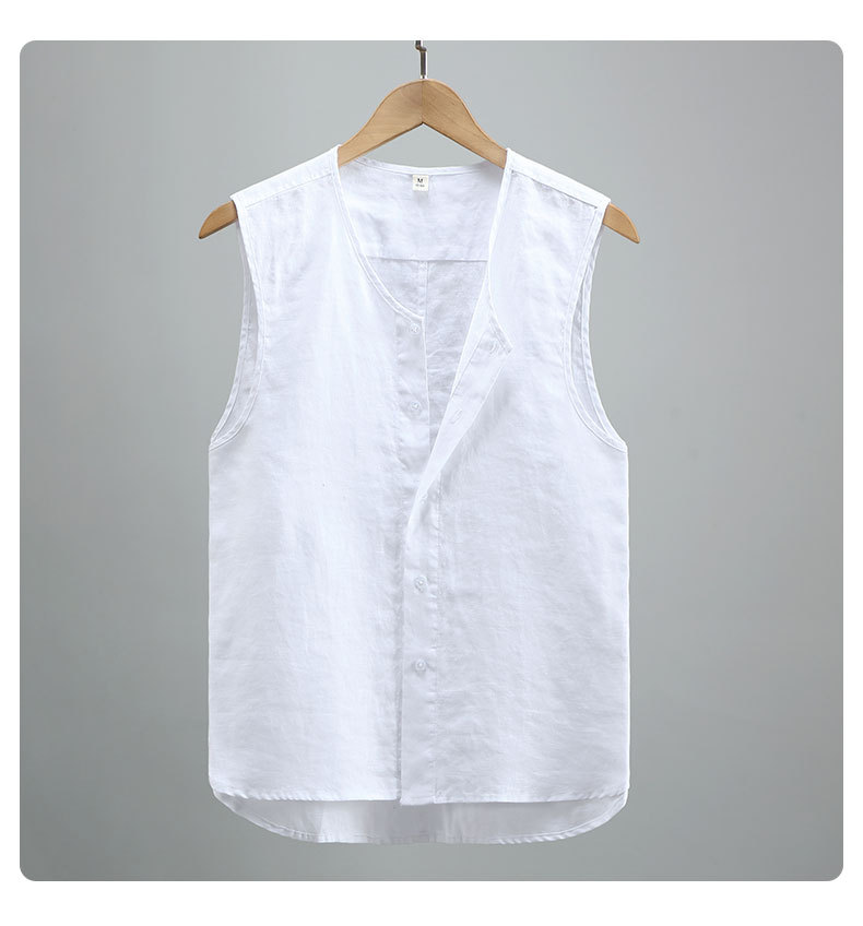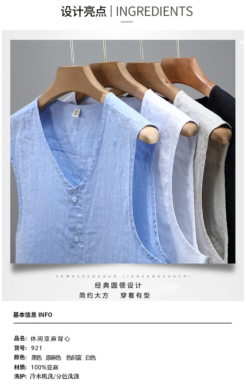921 여름 솔리드 컬러 리넨 조끼 남성 청소년 민소매 빈티지 린넨 소재 통기성 얇은 버튼스토어 가기