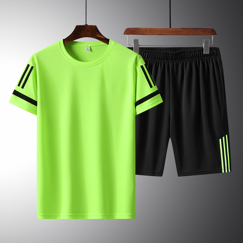 달리기 볼륨 빠른 건조 통기성 스포츠 레저 세트 남성복 여름 새로운 짧은 소매 반바지 남성 매칭 잘 생긴