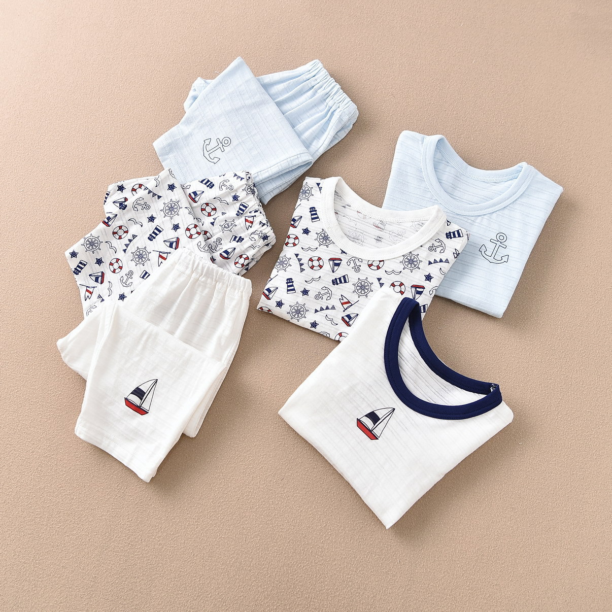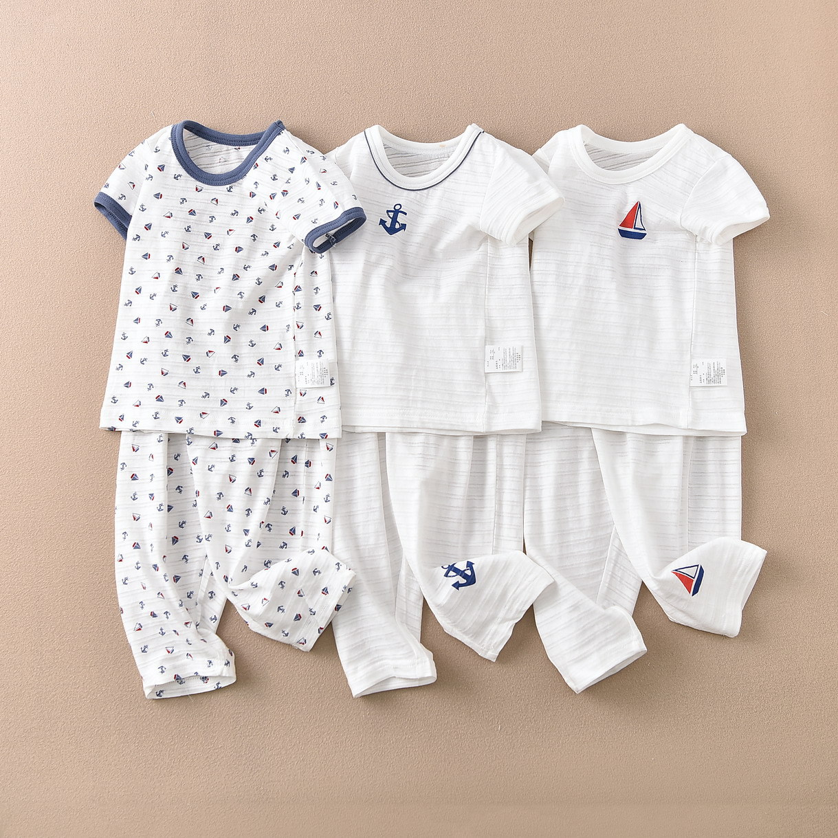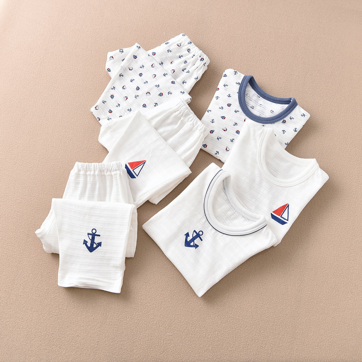 일본 어린이 소년 반팔 세트 9 포인트 모기 방지 바지 홈 의류 수출 바다 바람 슬러브면 파자마 흡입