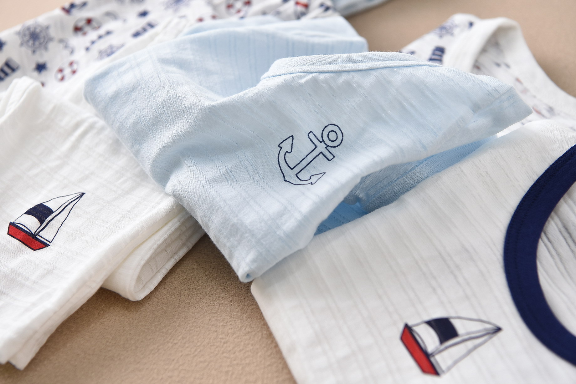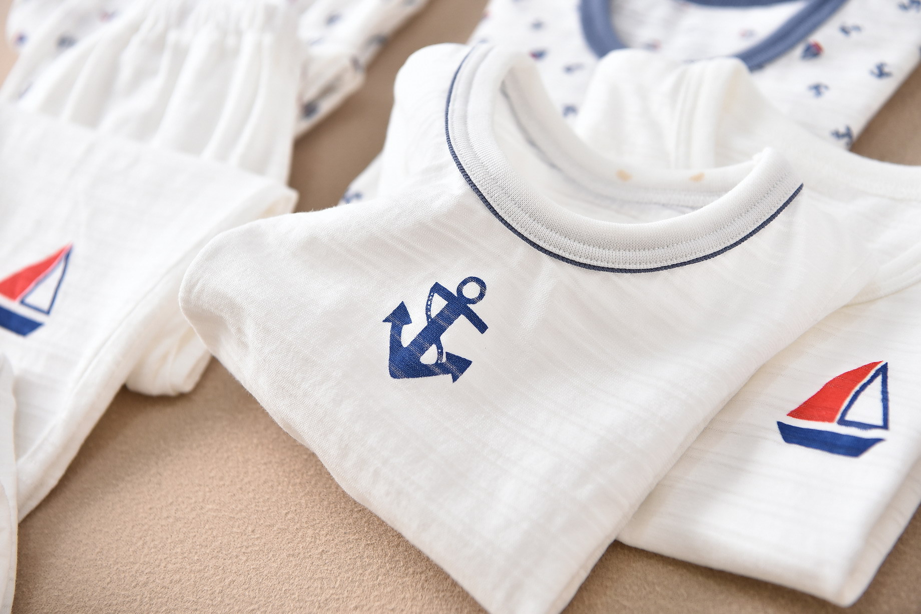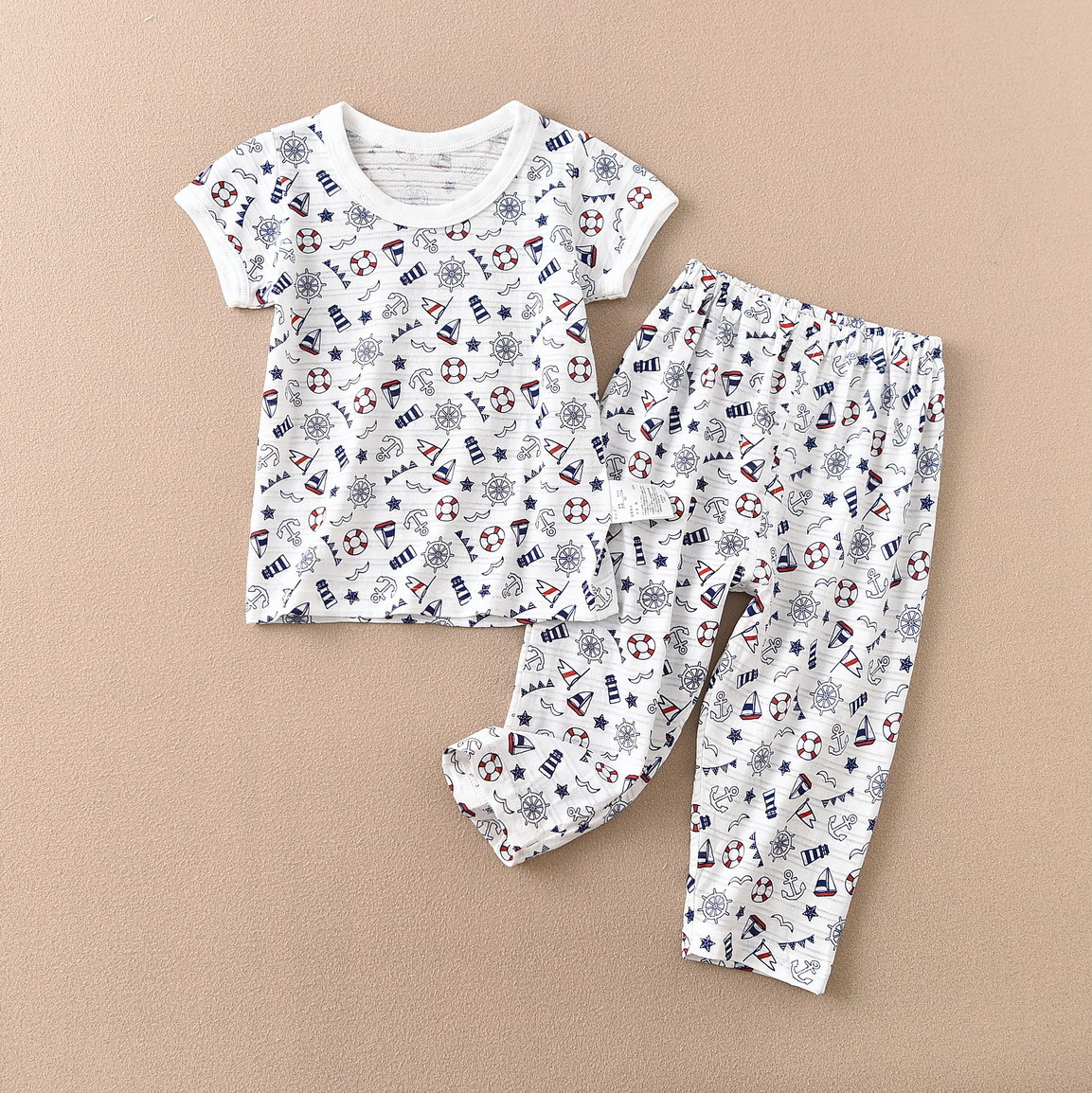 일본 어린이 소년 반팔 세트 9 포인트 모기 방지 바지 홈 의류 수출 바다 바람 슬러브면 파자마 흡입
