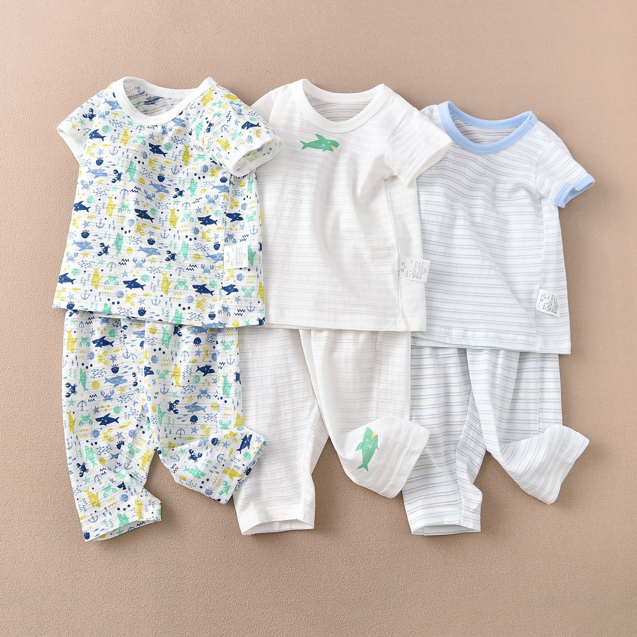 일본 어린이 소년 반팔 세트 9 포인트 모기 방지 바지 홈 의류 수출 바다 바람 슬러브면 파자마 흡입스토어 가기