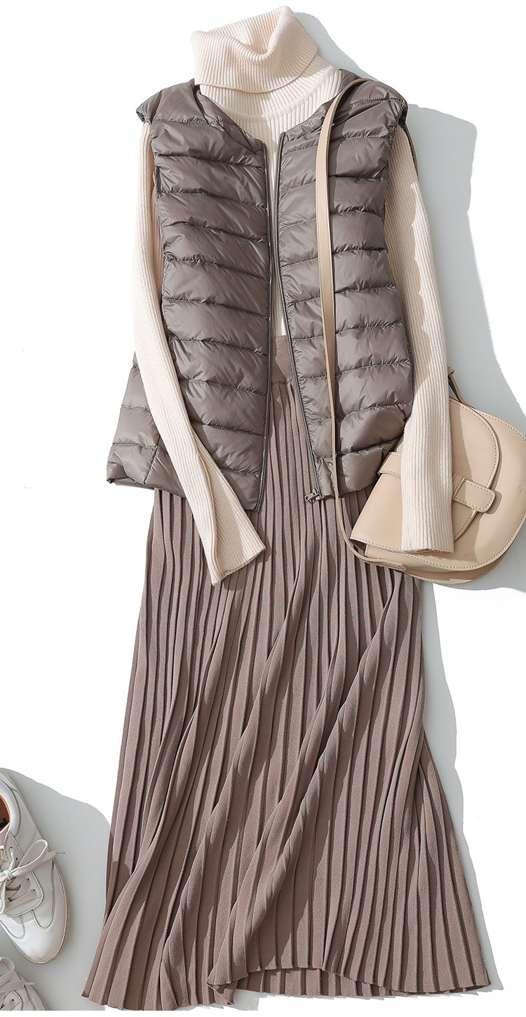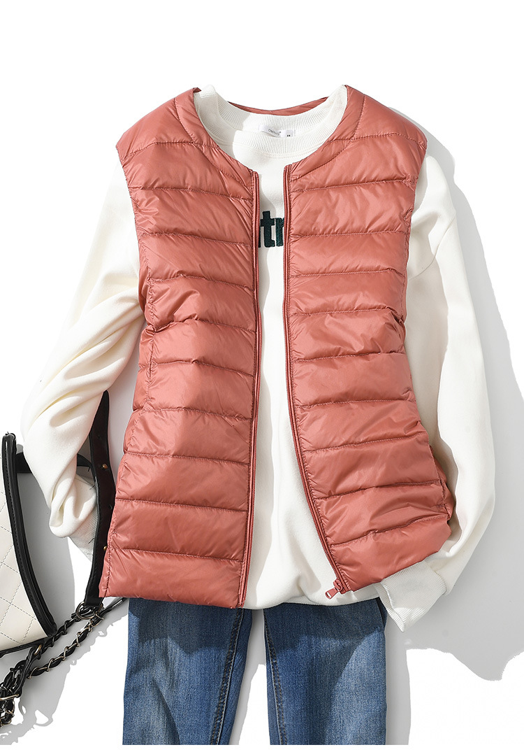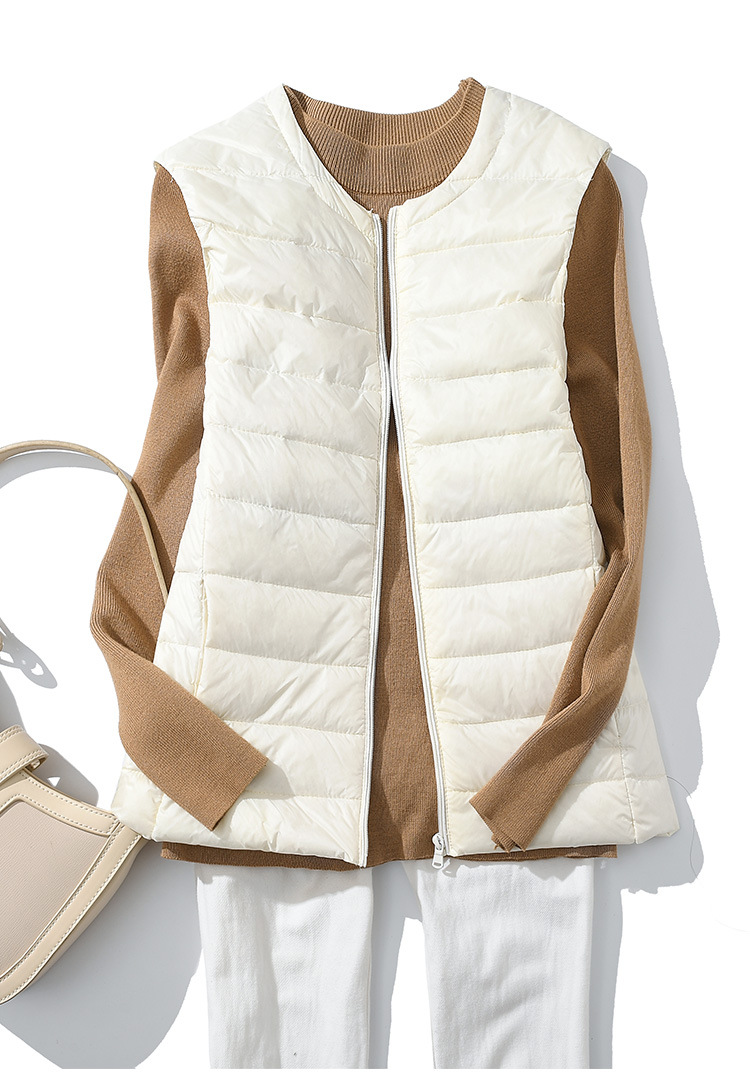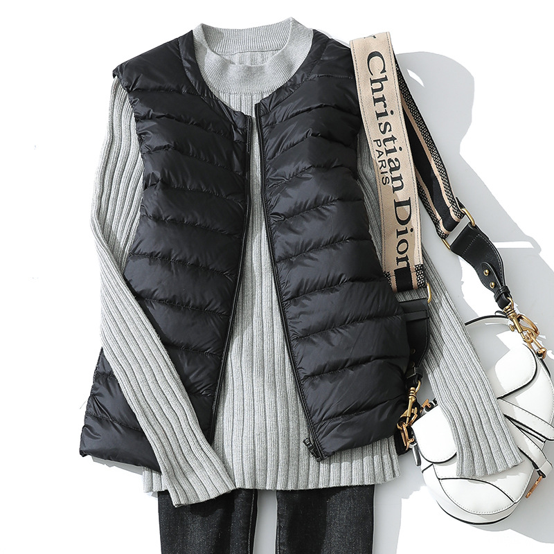 국경 간 라이트 다운 조끼 여자 짧은 라운드 넥 화이트 덕 다운 조끼 올 매치 플러스 사이즈 다운 조끼