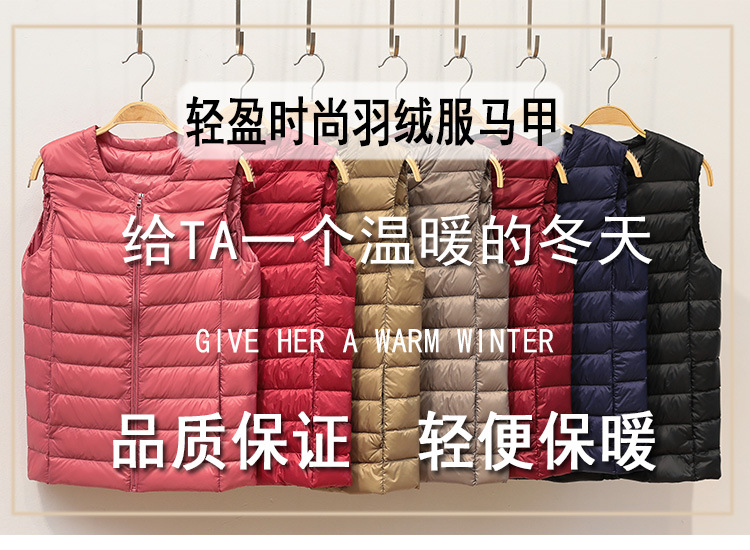 국경 간 라이트 다운 조끼 여자 짧은 라운드 넥 화이트 덕 다운 조끼 올 매치 플러스 사이즈 다운 조끼스토어 가기