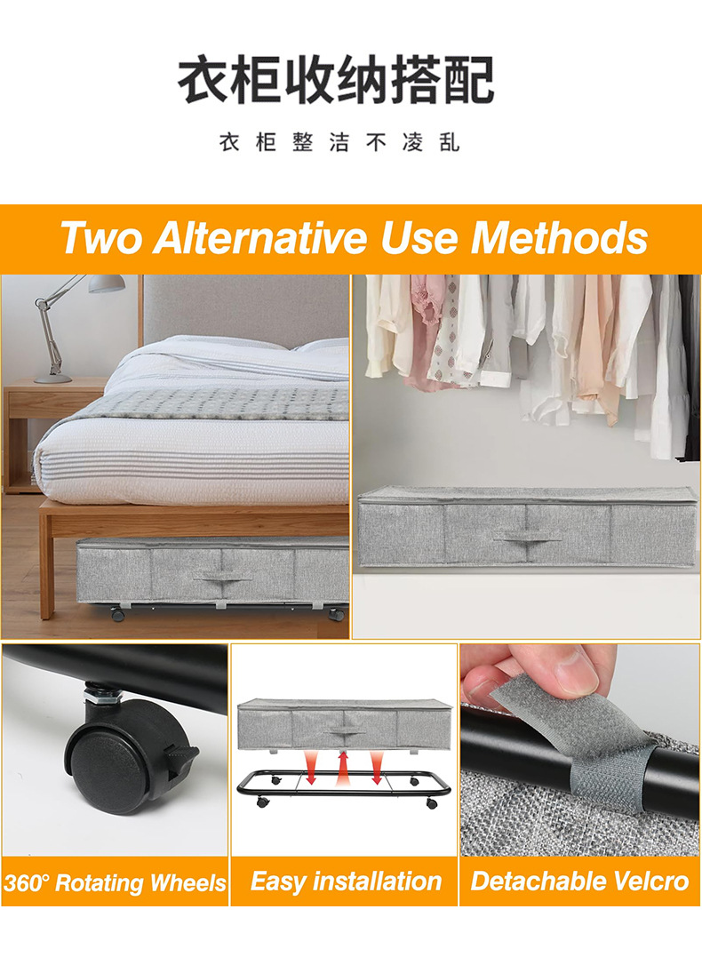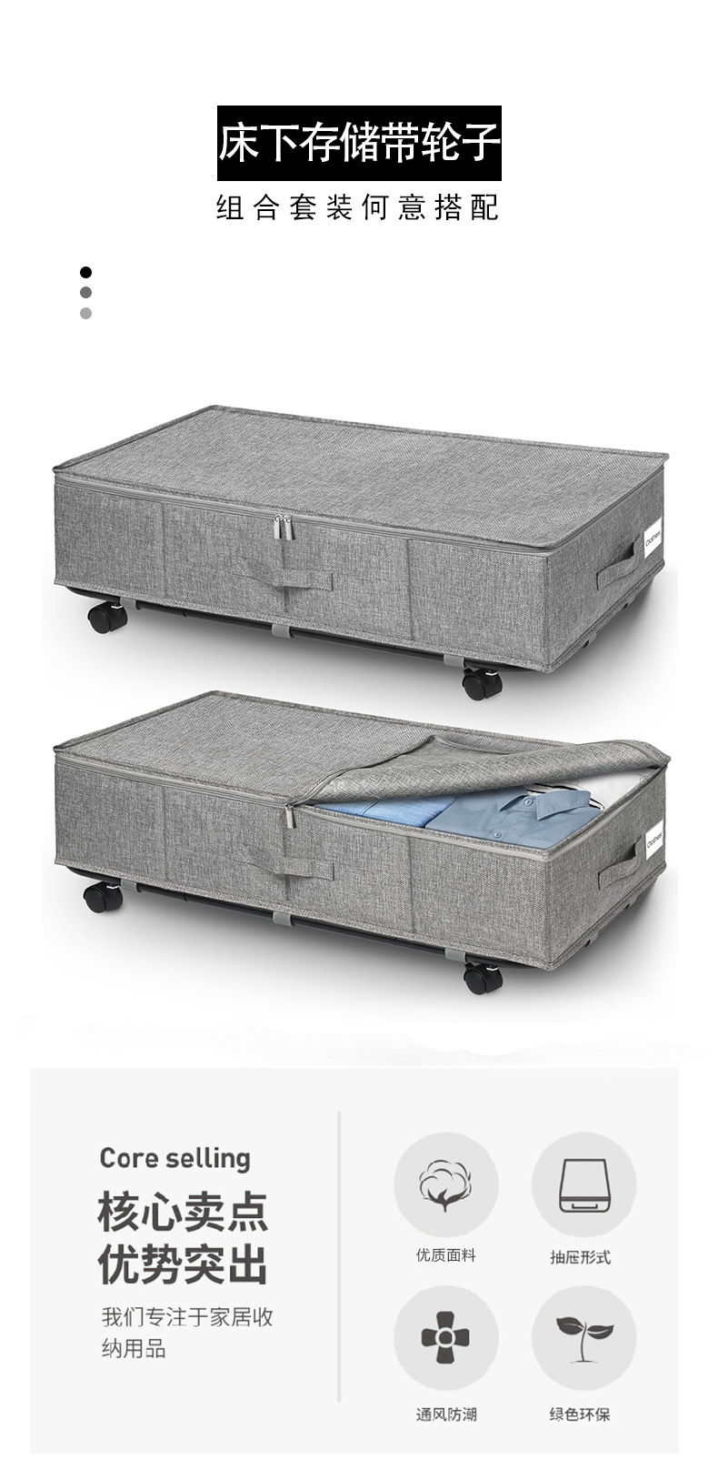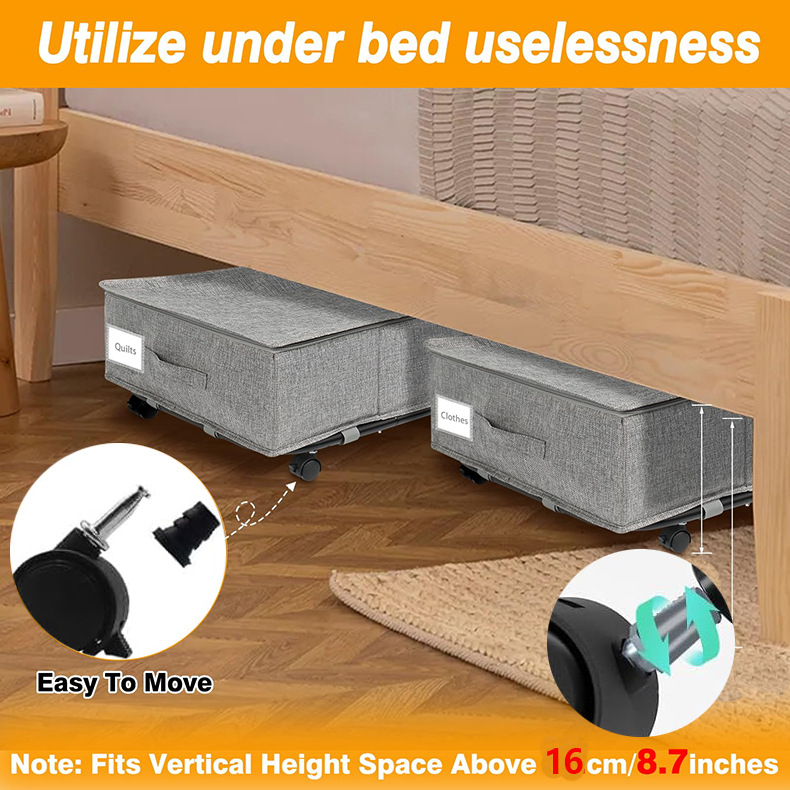옷과 담요를위한 투명한 뚜껑이 달린 바퀴가 달린 침대 밑에 2 개 보관 용기스토어 가기