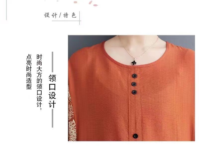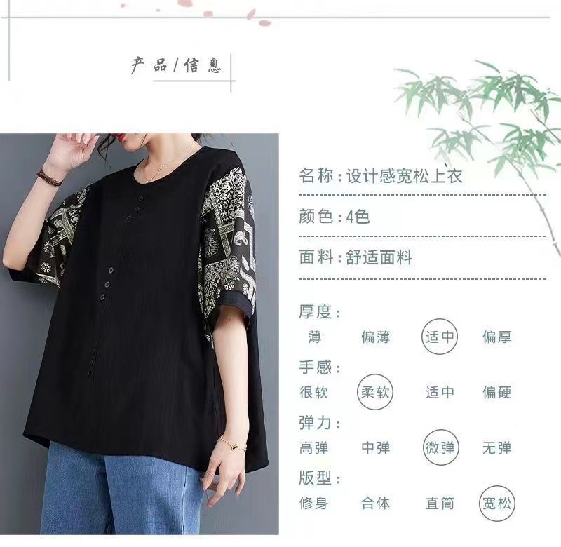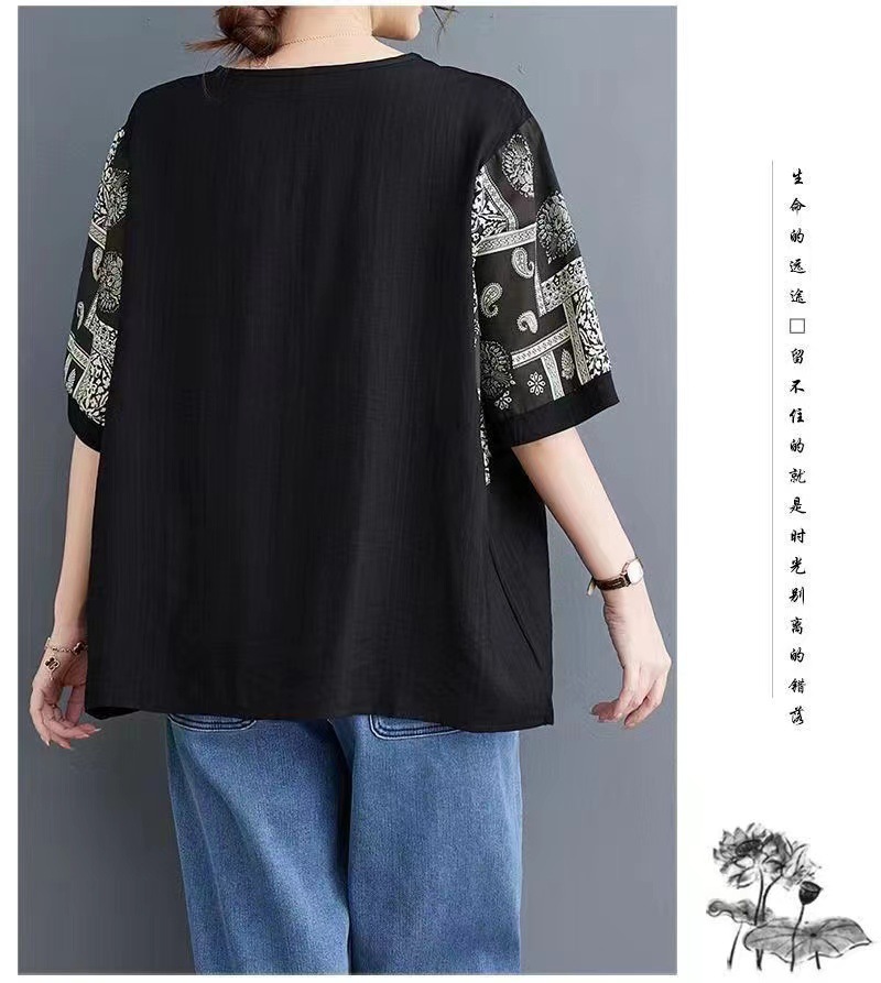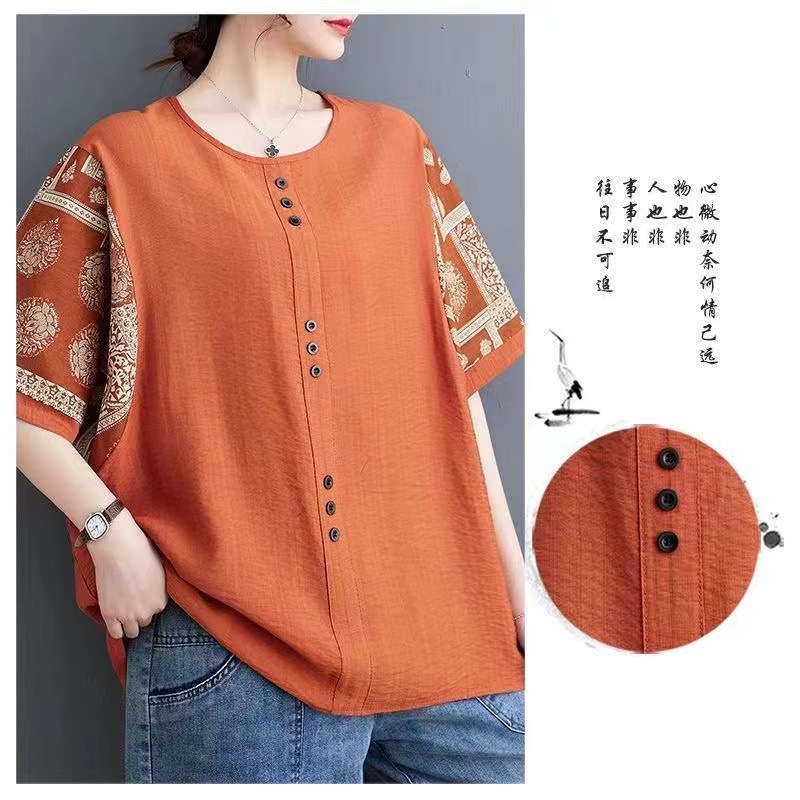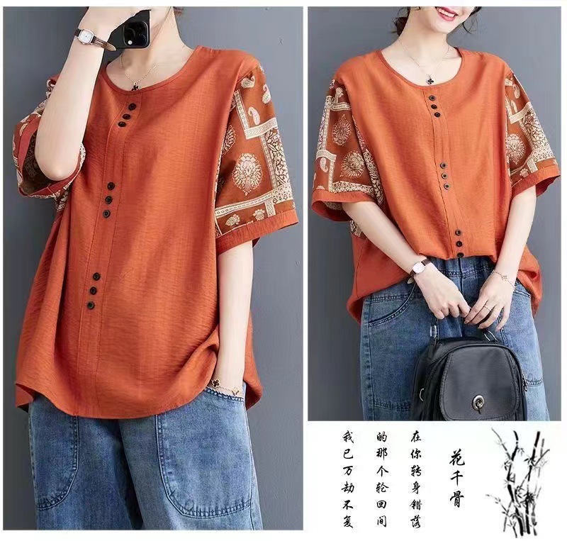코튼 리넨 반팔 티셔츠 여름 느슨한 대형 통통 여성 인쇄 반소매 탑