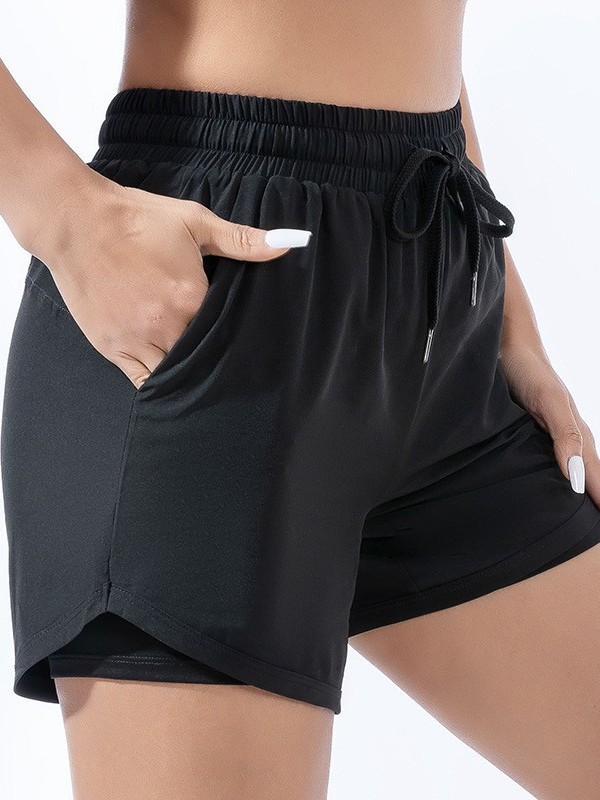 여름 높은 허리 빠른 건조 스포츠 반바지 여성 느슨한 외부 착용 더블 레이어 안티 워킹 가짜 투피스 러닝 요가 피트니스 바지스토어 가기