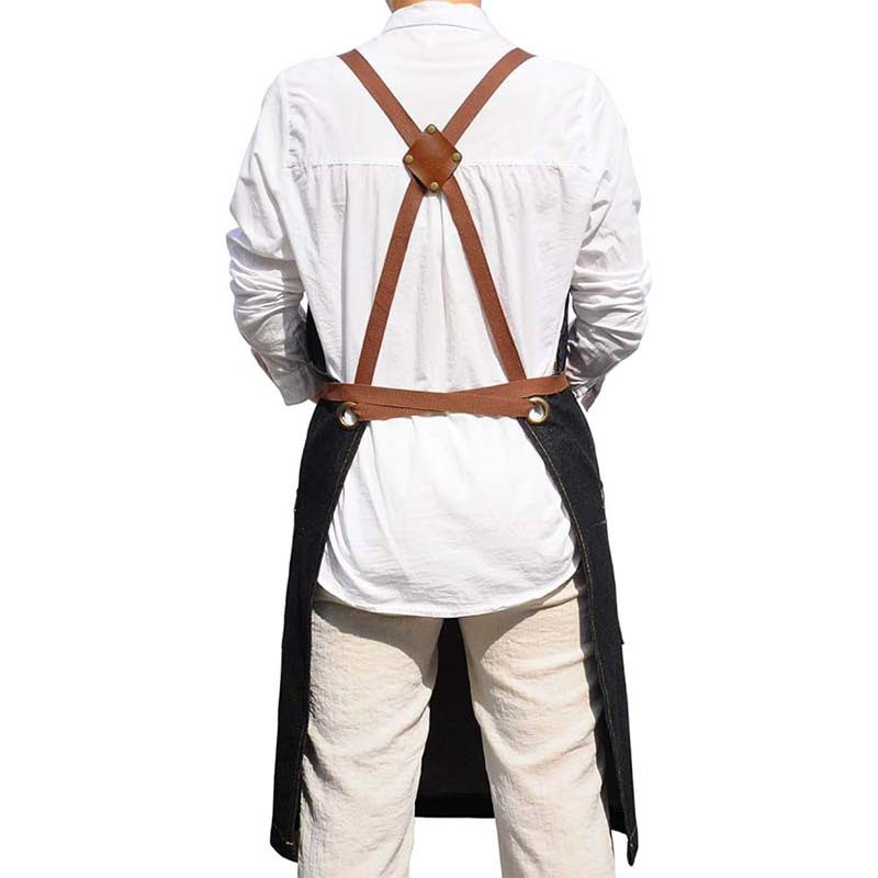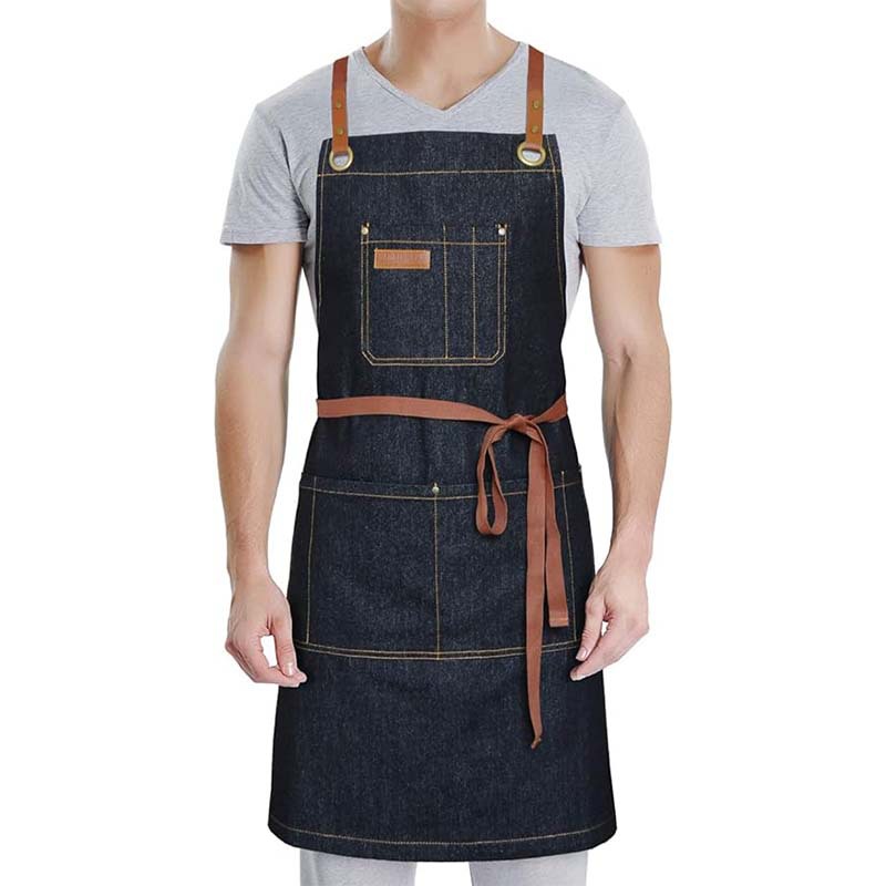 국경을 넘는 아마존 데님 앞치마, 내마모성 및 오염 방지, 케이터링, 밀크티, 커피숍, 이발사 작업복 앞치마 맞춤 제작