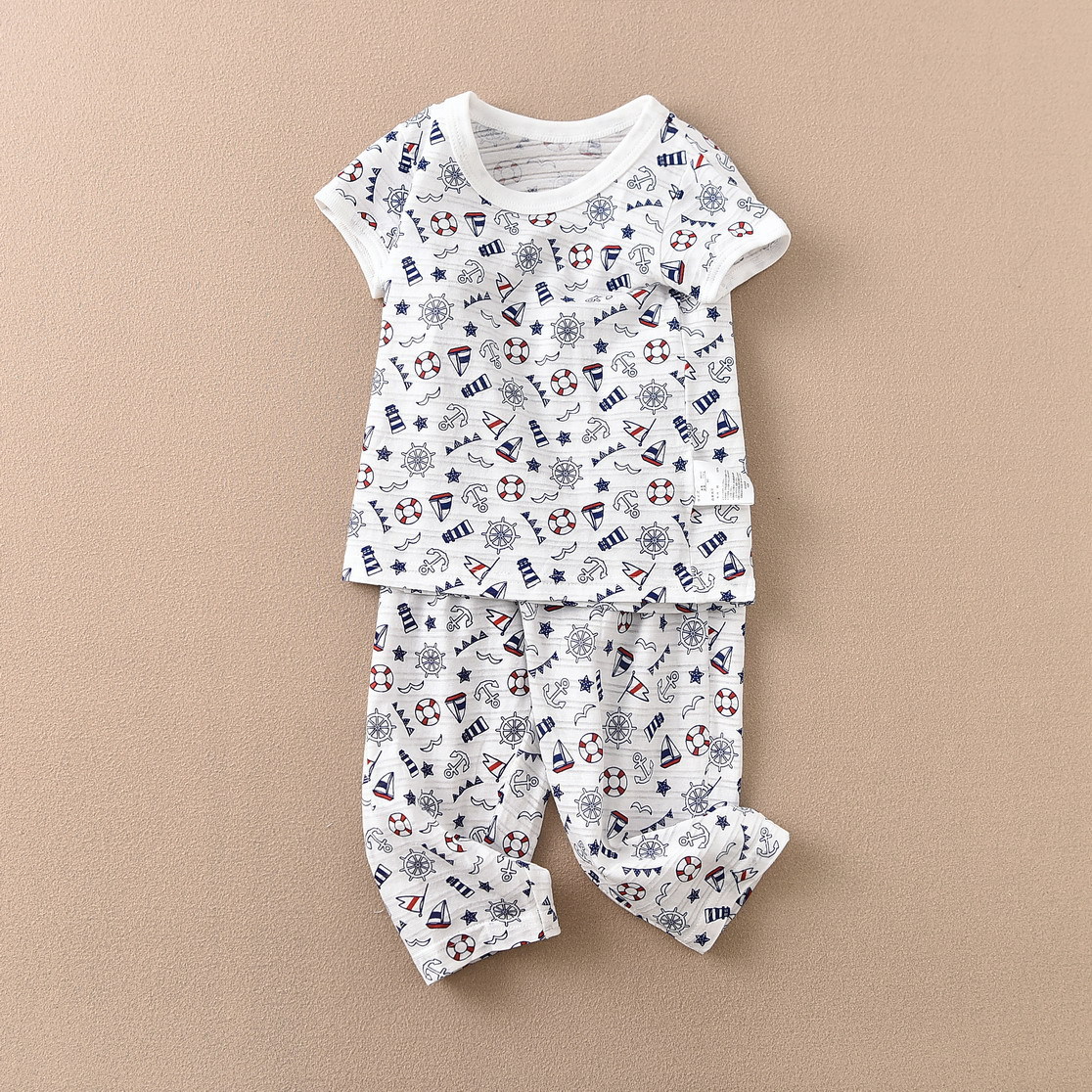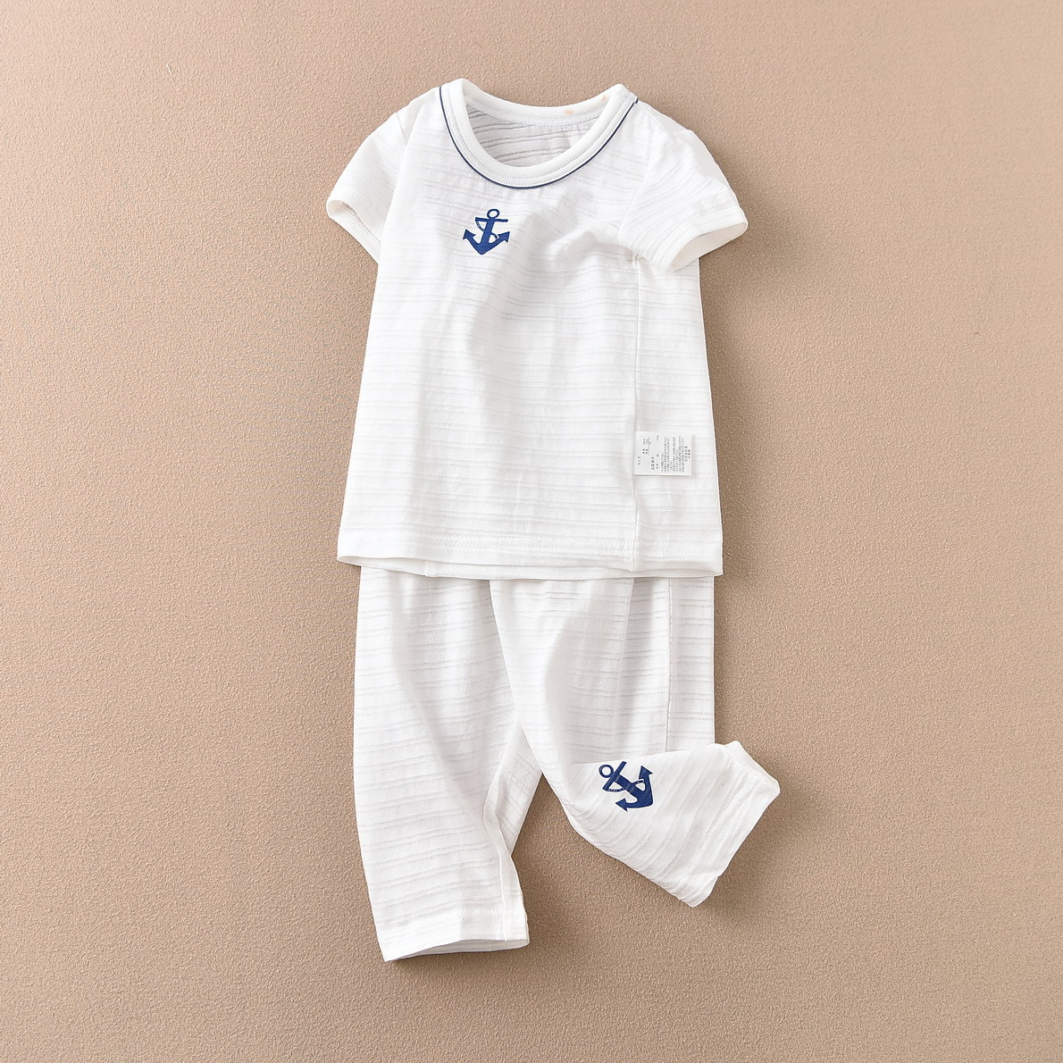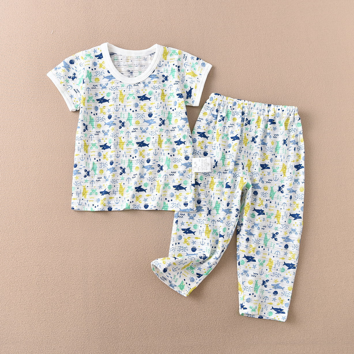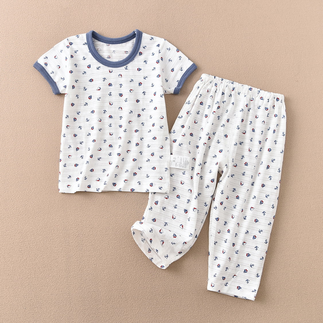 일본 어린이 소년 반팔 세트 9 점 모기 방지 바지 홈 의류 수출 해군 바람 슬러브면 파자마 흡입