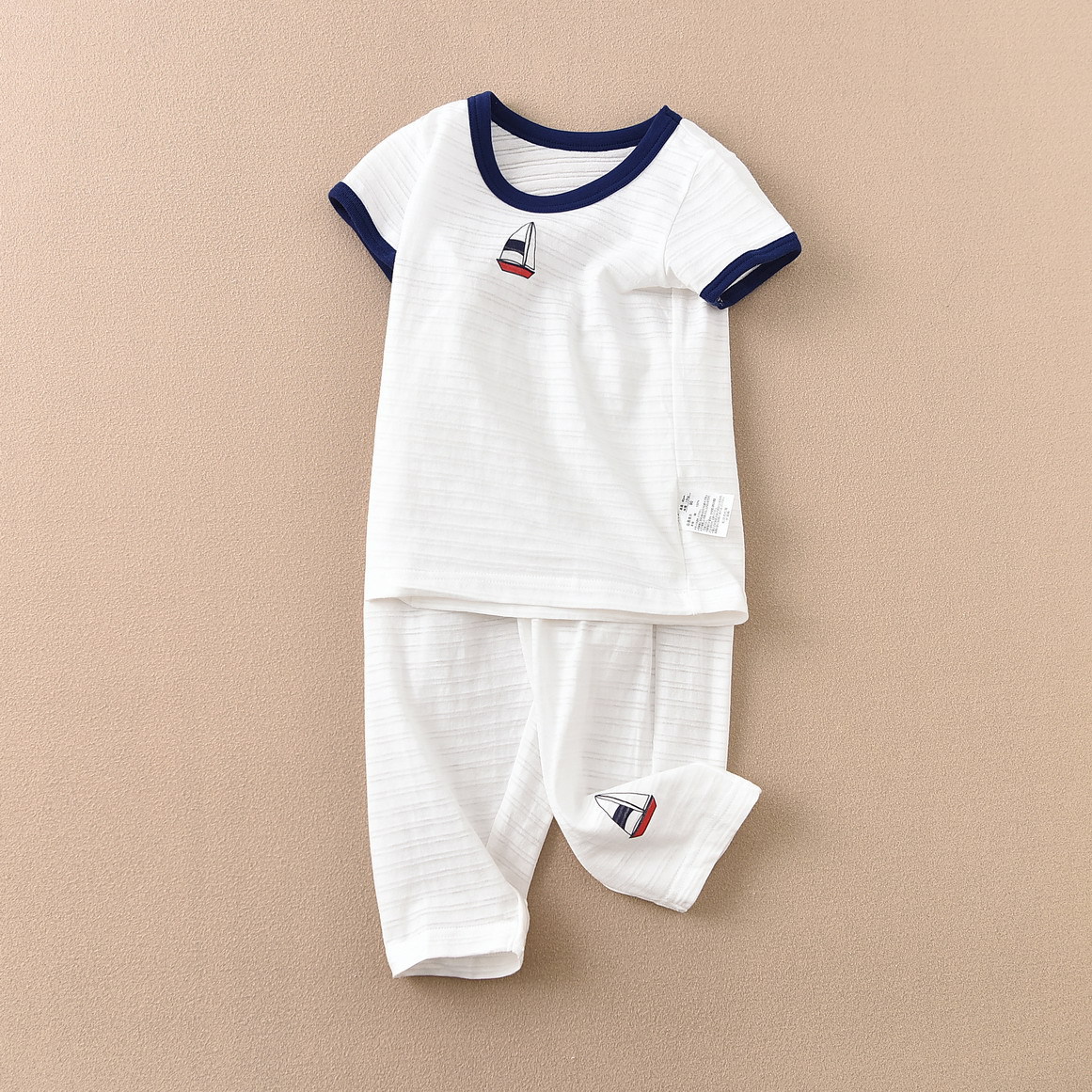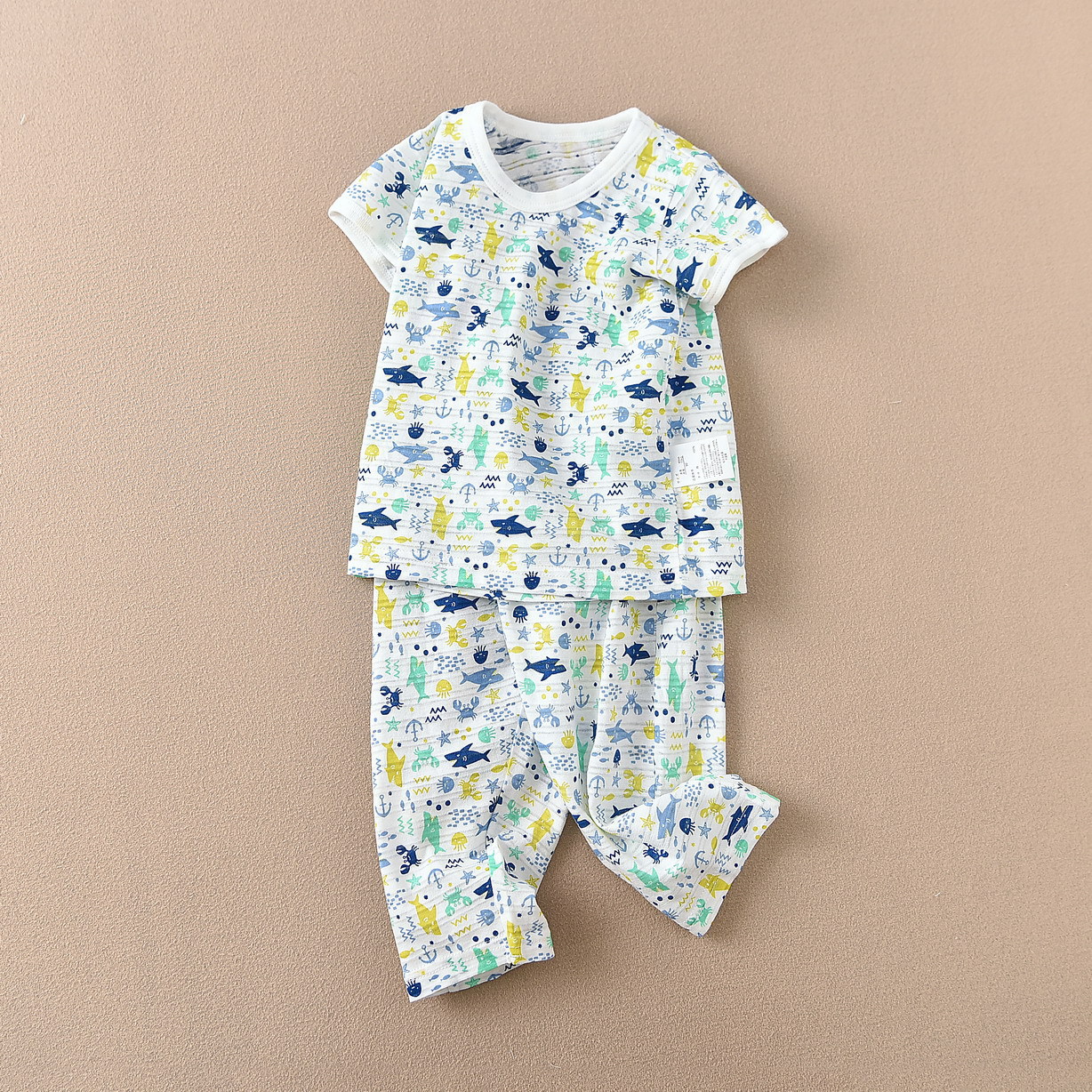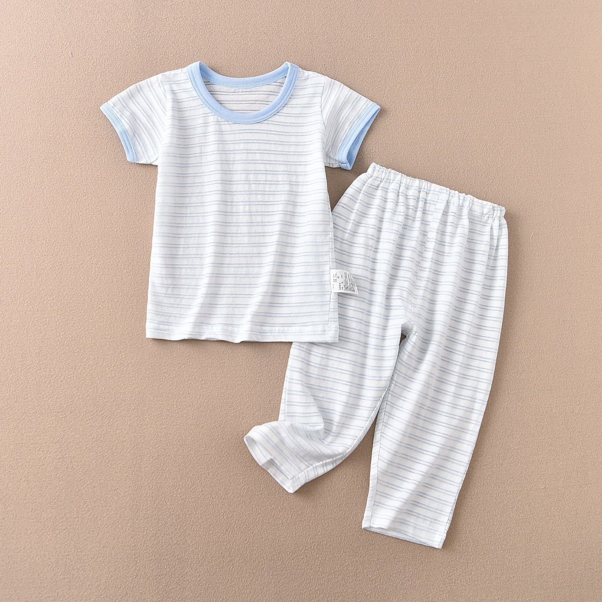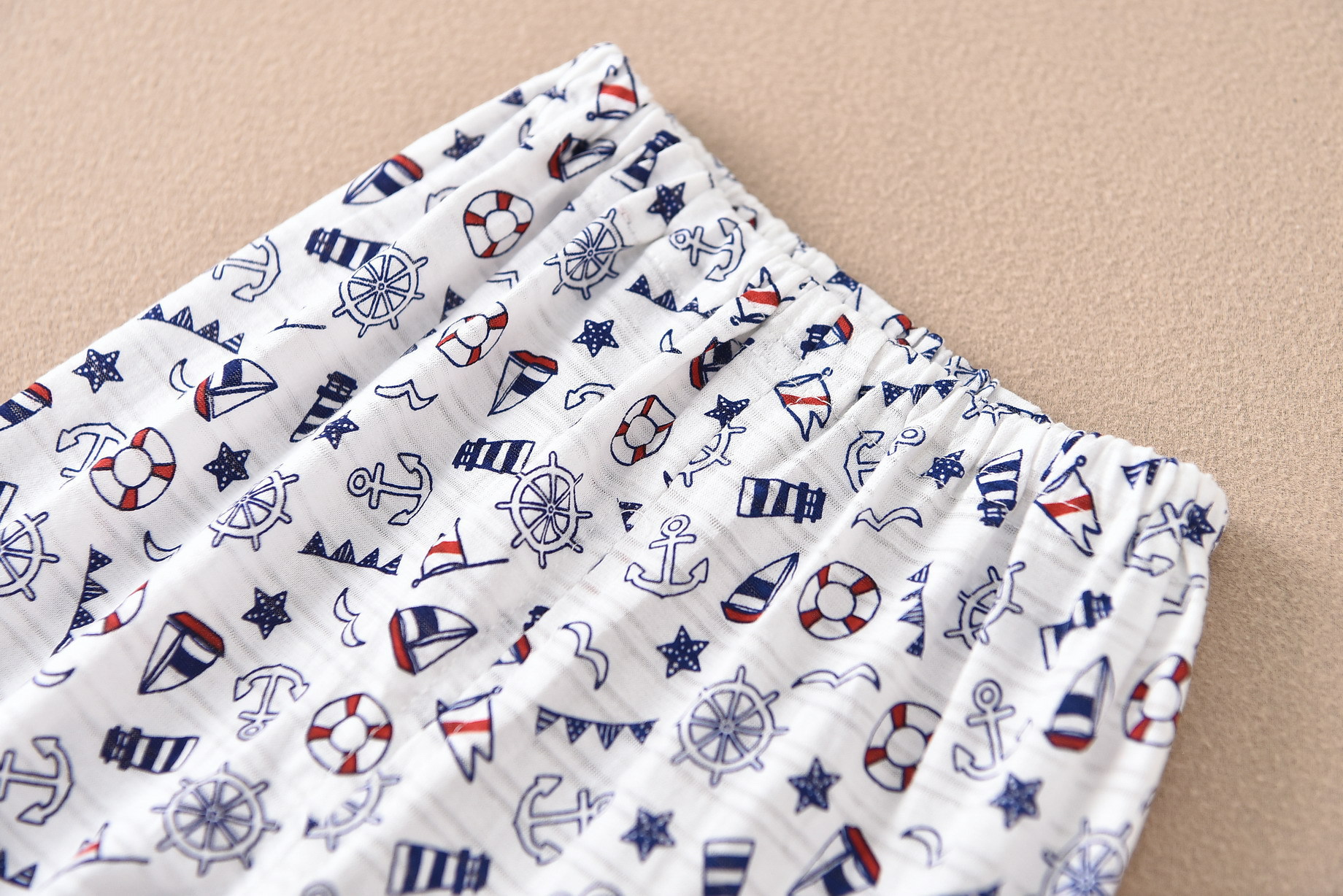 일본 어린이 소년 반팔 세트 9 점 모기 방지 바지 홈 의류 수출 해군 바람 슬러브면 파자마 흡입