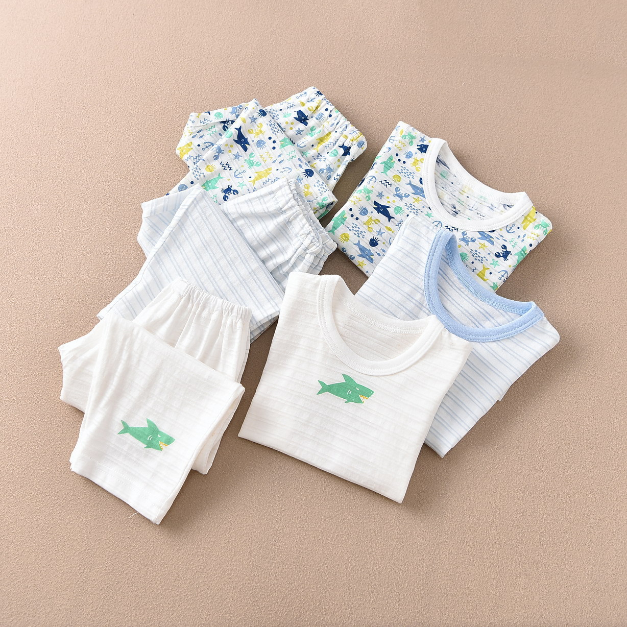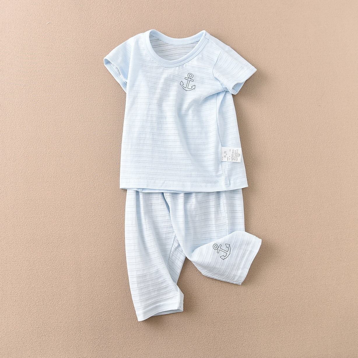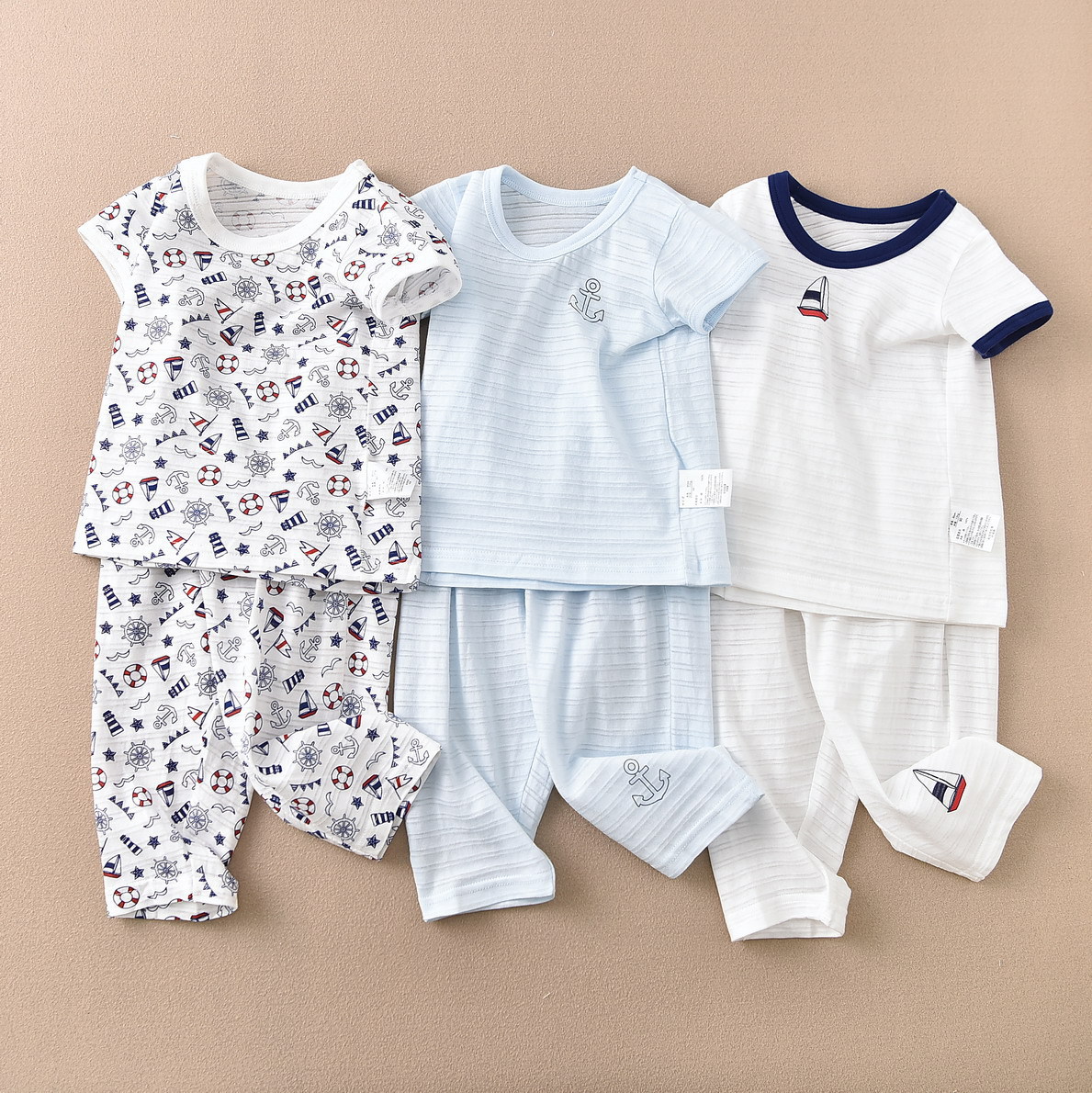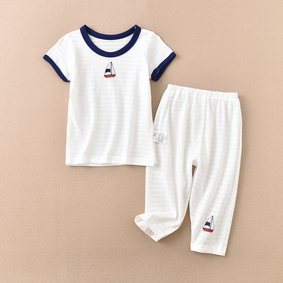 일본 어린이 소년 반팔 세트 9 점 모기 방지 바지 홈 의류 수출 해군 바람 슬러브면 파자마 흡입