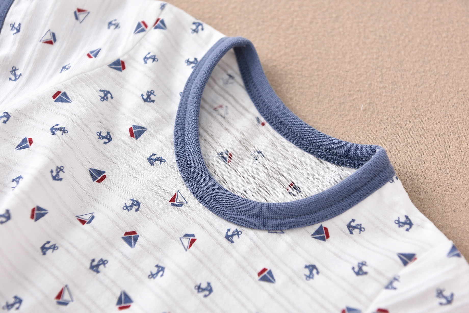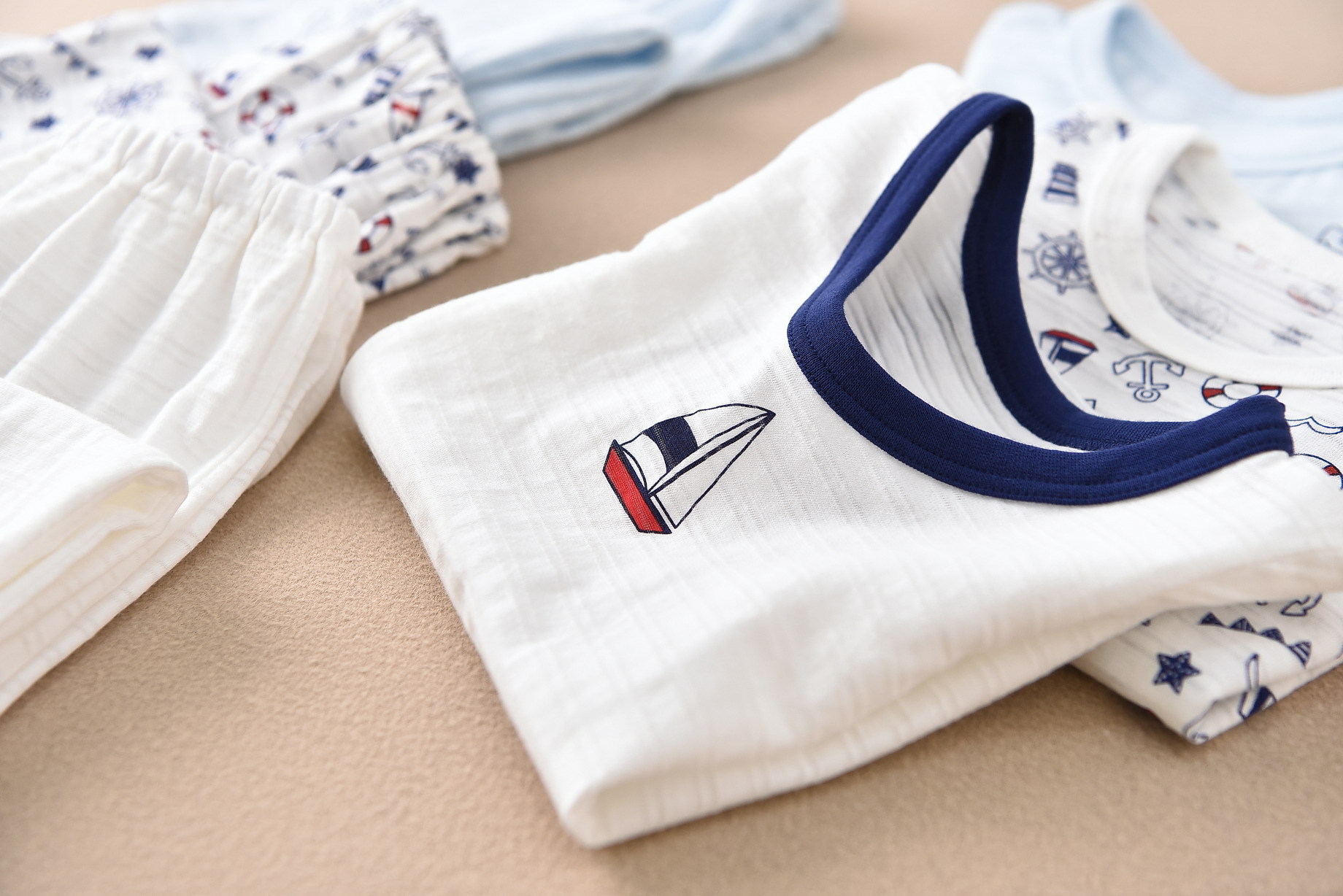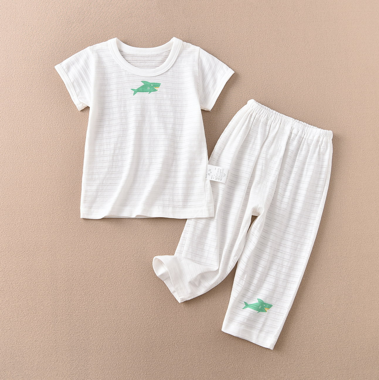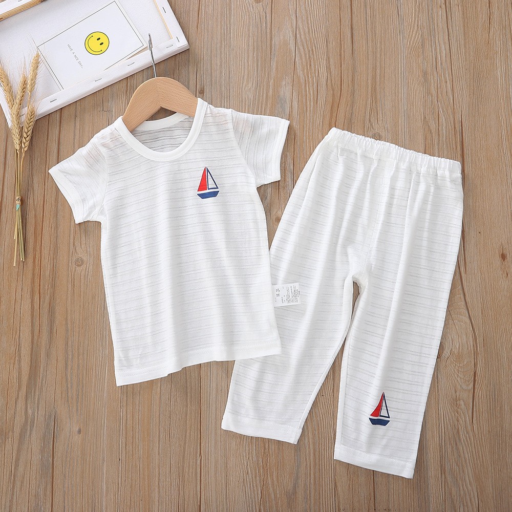 일본 어린이 소년 반팔 세트 9 점 모기 방지 바지 홈 의류 수출 해군 바람 슬러브면 파자마 흡입