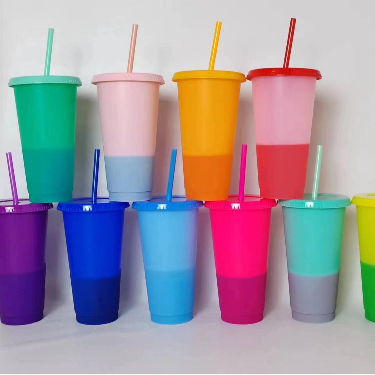 국경을 넘는 새로운 pp 물컵, 온도에 민감하고 차가워지는 컬러 컵, 대용량 밀짚 컵, pp 플라스틱 컵, 도매, 맞춤형 로고