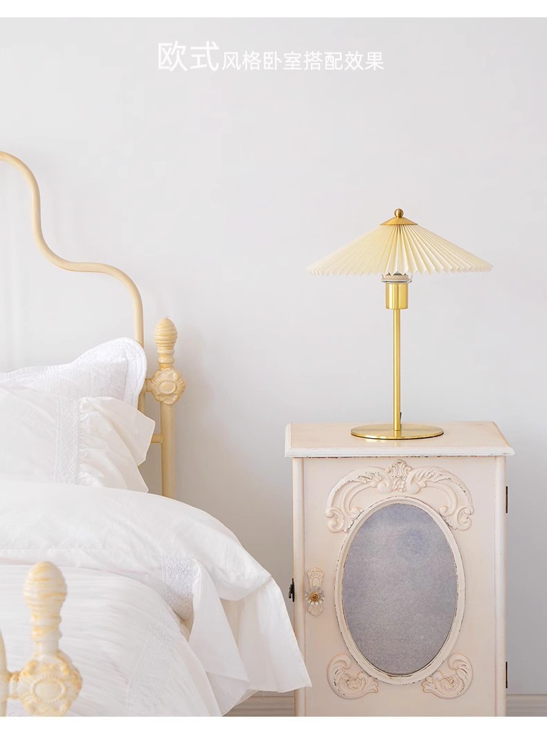 유럽 레트로 빛 럭셔리 연구 침실 구리 하이 엔드 우산 테이블 램프 침대 옆 풀 스펙트럼 데스크탑 따뜻한 분위기 램프