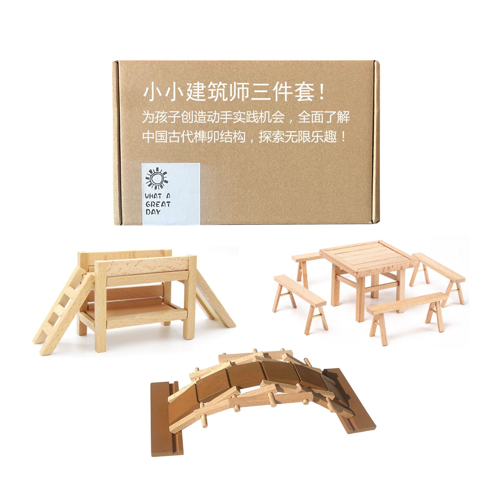 어린이 나무 교육 장난감 DIY 건축가 건물 블록 조립 분해 세트 테이블과 의자 높고 낮은 침대 루반 다리