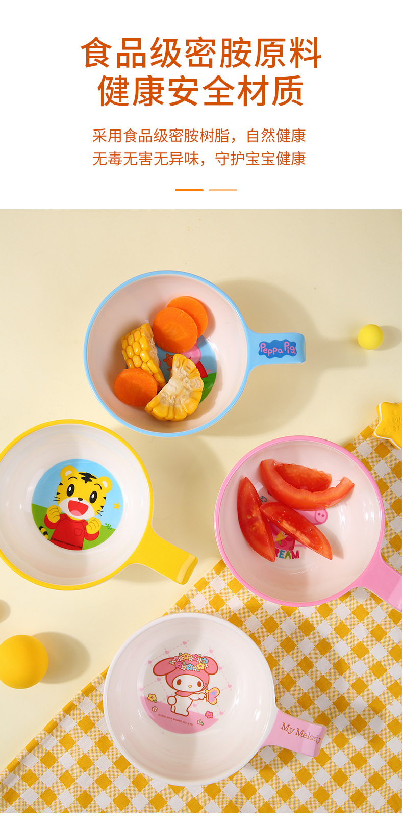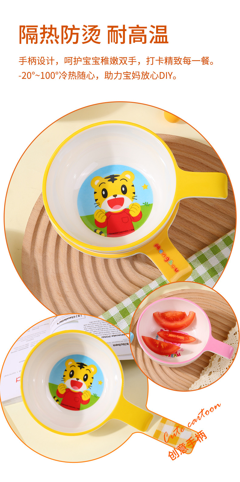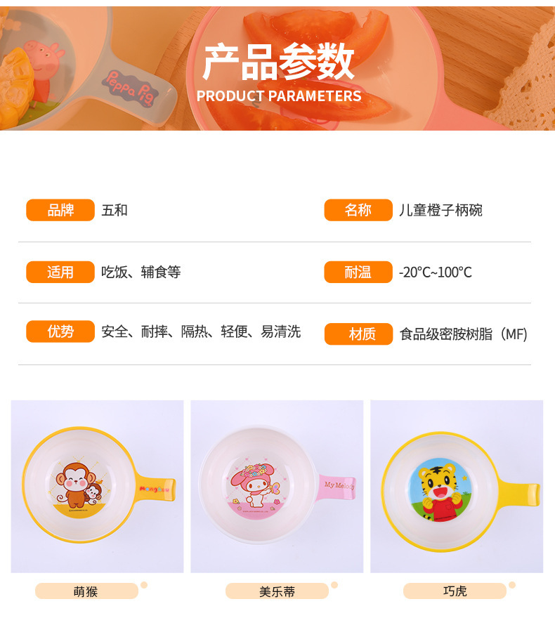 어린이 식기 식품 등급 멜라민 식기 어린이 그릇 가정용 이유식 그릇 안티 스케일 드롭 핸들 그릇 도매