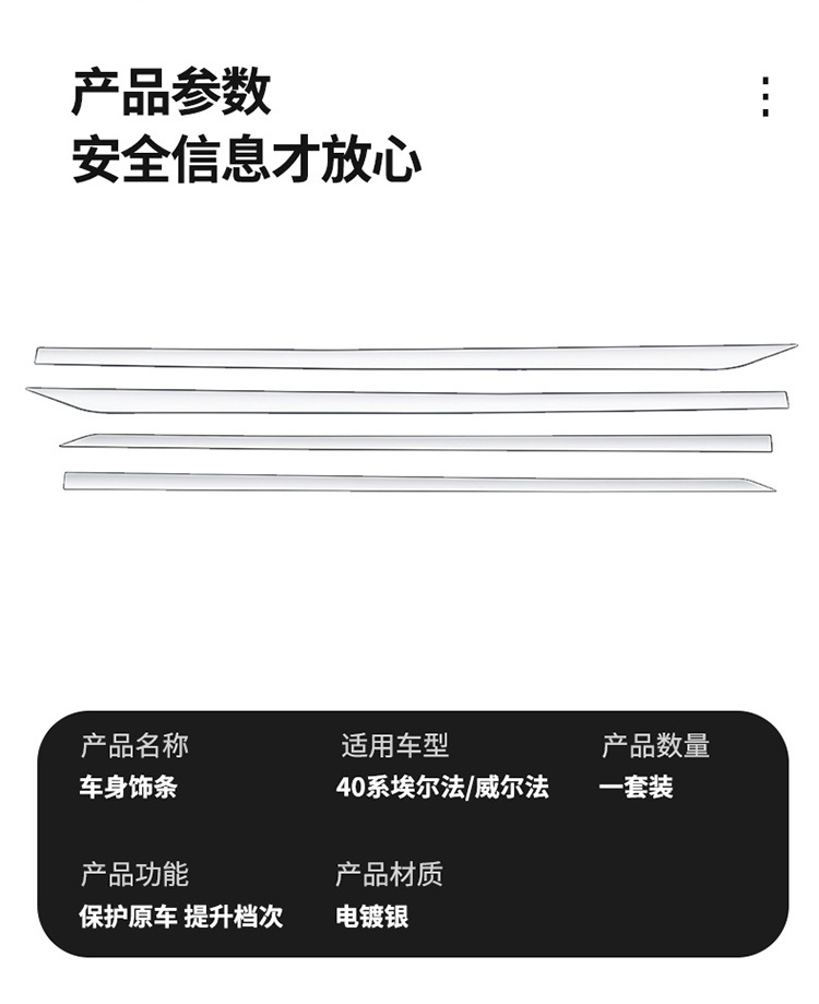 40 시리즈 Elfa 바디 트림 24 ALPHARD/VELLFIRE 충돌 방지 스트립 Elfa 수정에 적용 가능스토어 가기