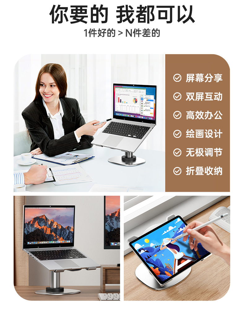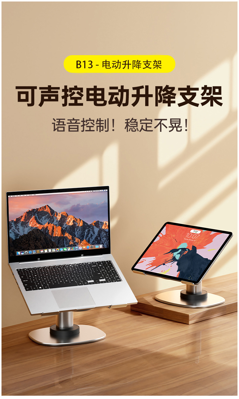 신제품 전동 리프팅 노트북 스탠드, 스마트 음성 제어 알루미늄 합금 회전 휴대용 게이밍 노트북스토어 가기