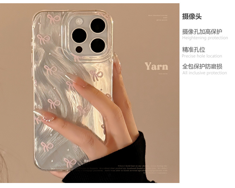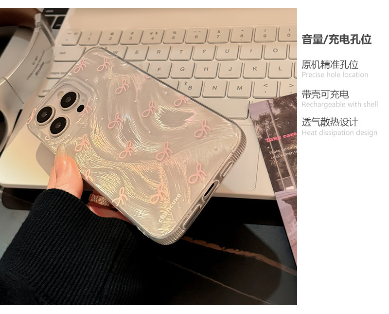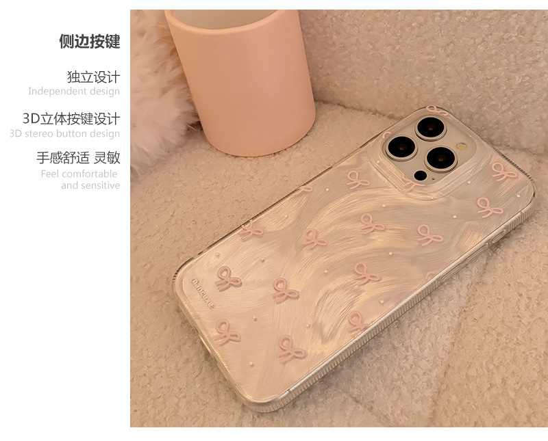 핑크색 리본이 달린 아이폰 17 케이스, 아이폰 16 프로 맥스, 낙하 방지, 15 하드 케이스, 14 소녀용, 13 깃털망사 케이스