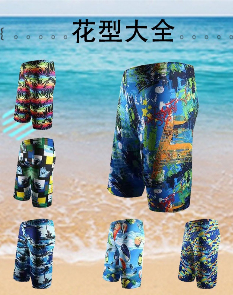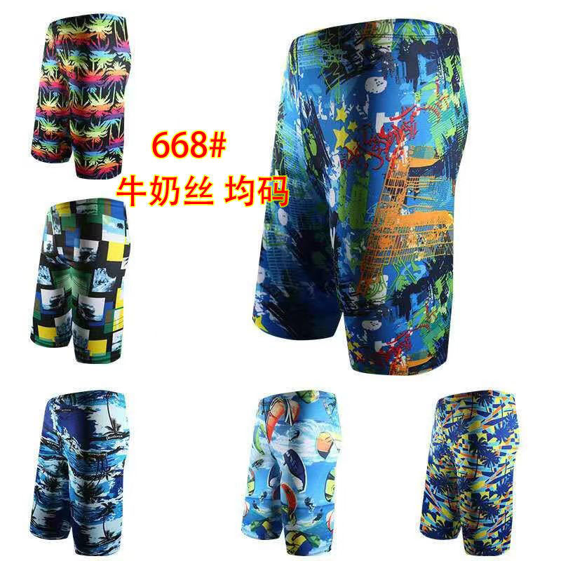 남자 우유 실크 긴 인쇄 수영 트렁크 온천 해변 느슨한 수영 장비 도매 여름 공장 새로운스토어 가기
