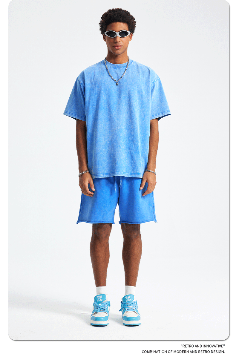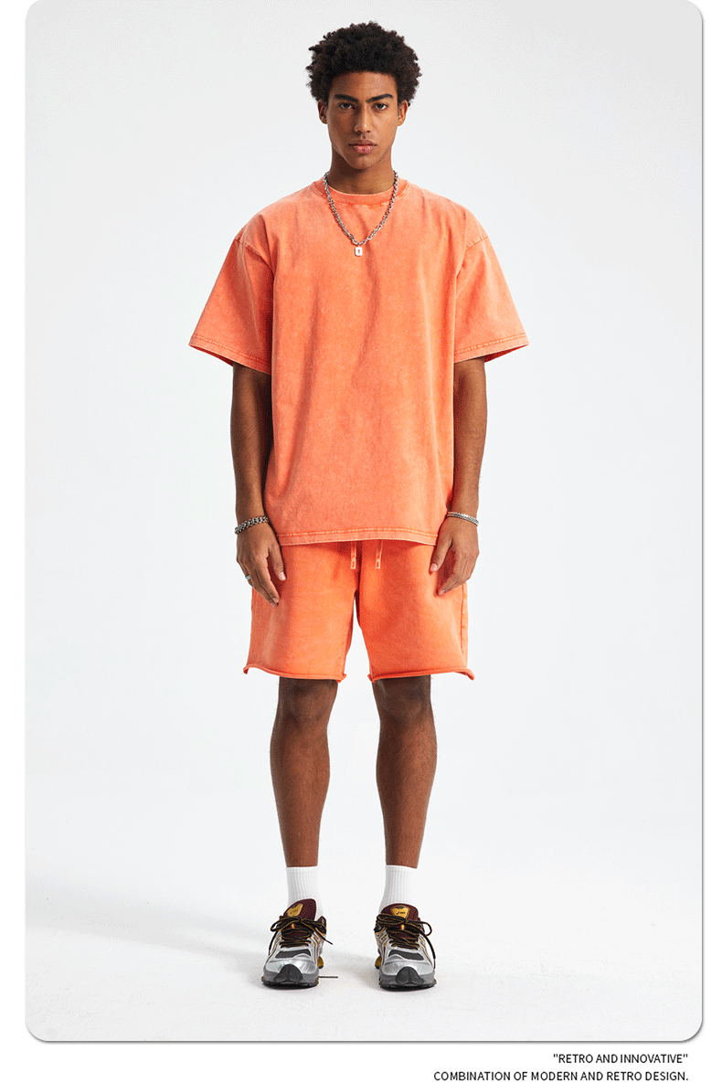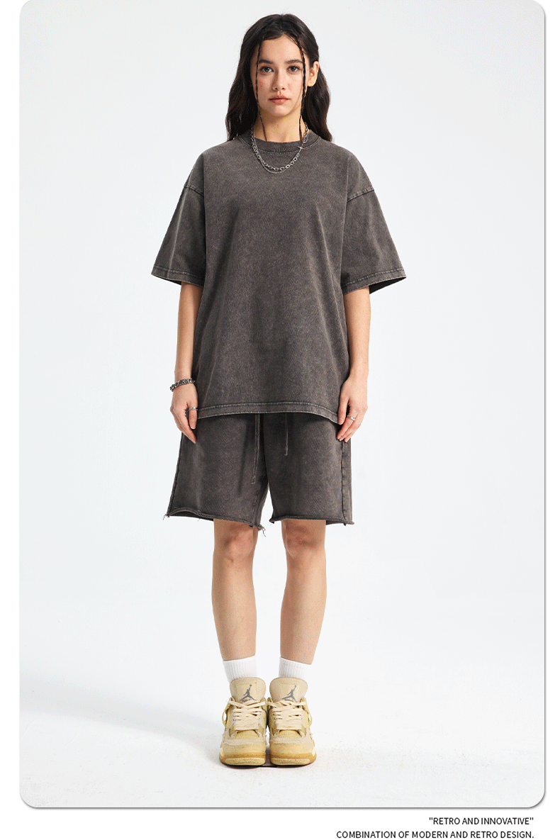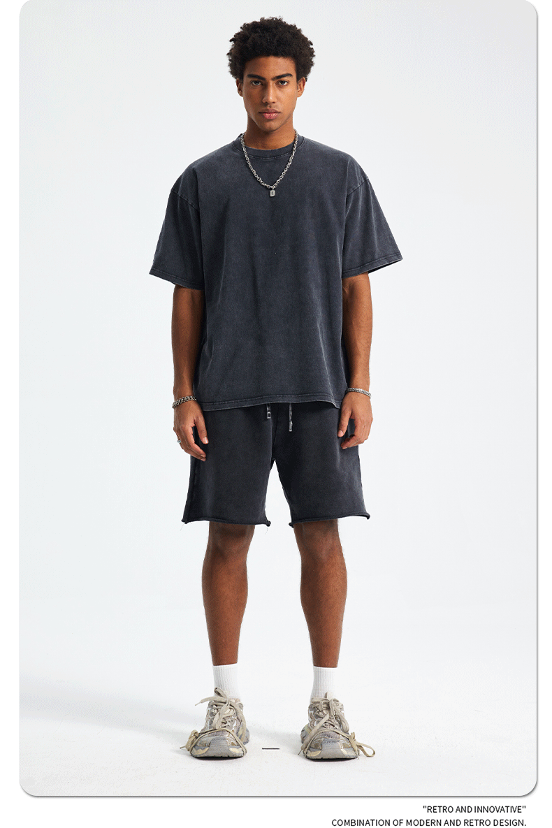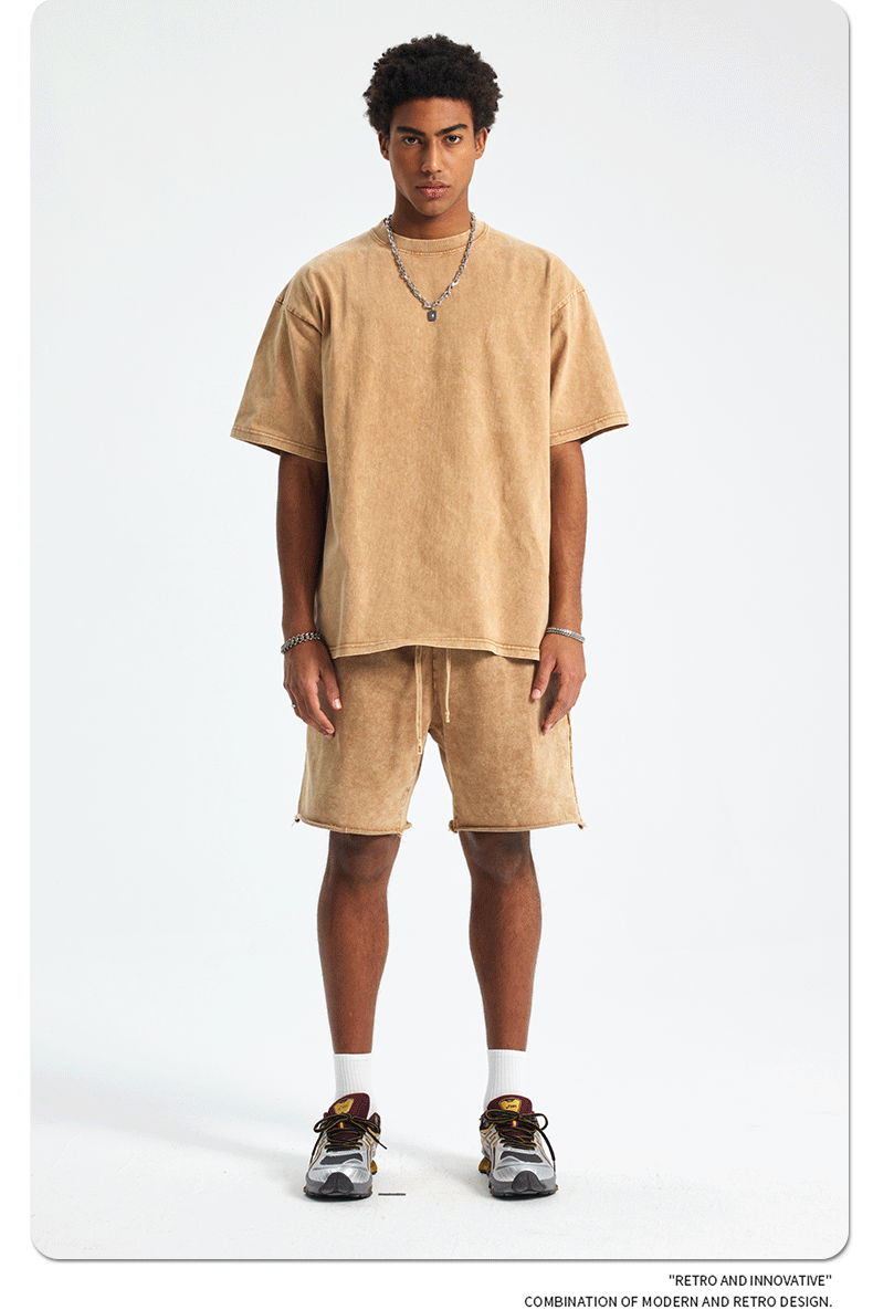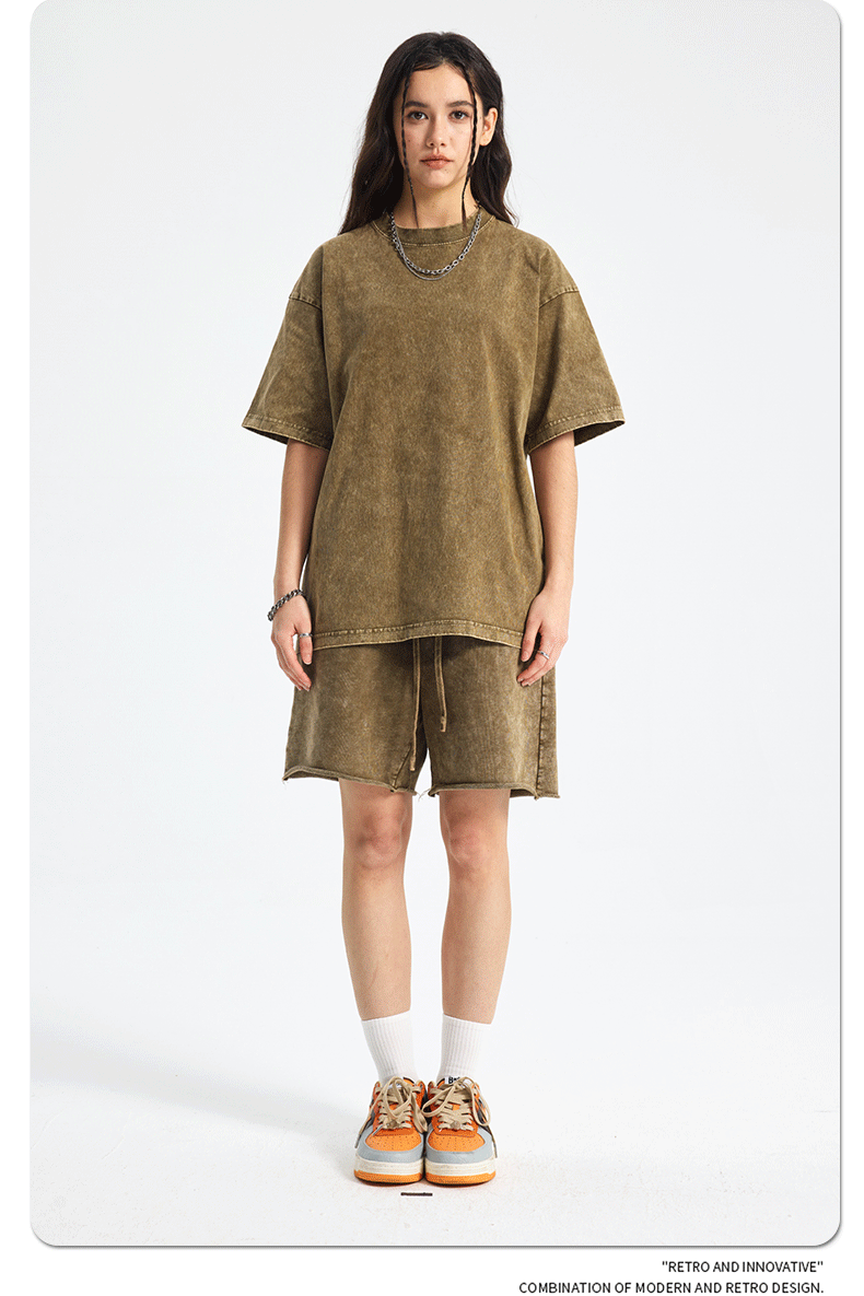 아티 남성복 | 2026 봄/여름 신상품 눈꽃 왁스 염색 워싱 반팔 반바지 커플 트렌디 브랜드 세트