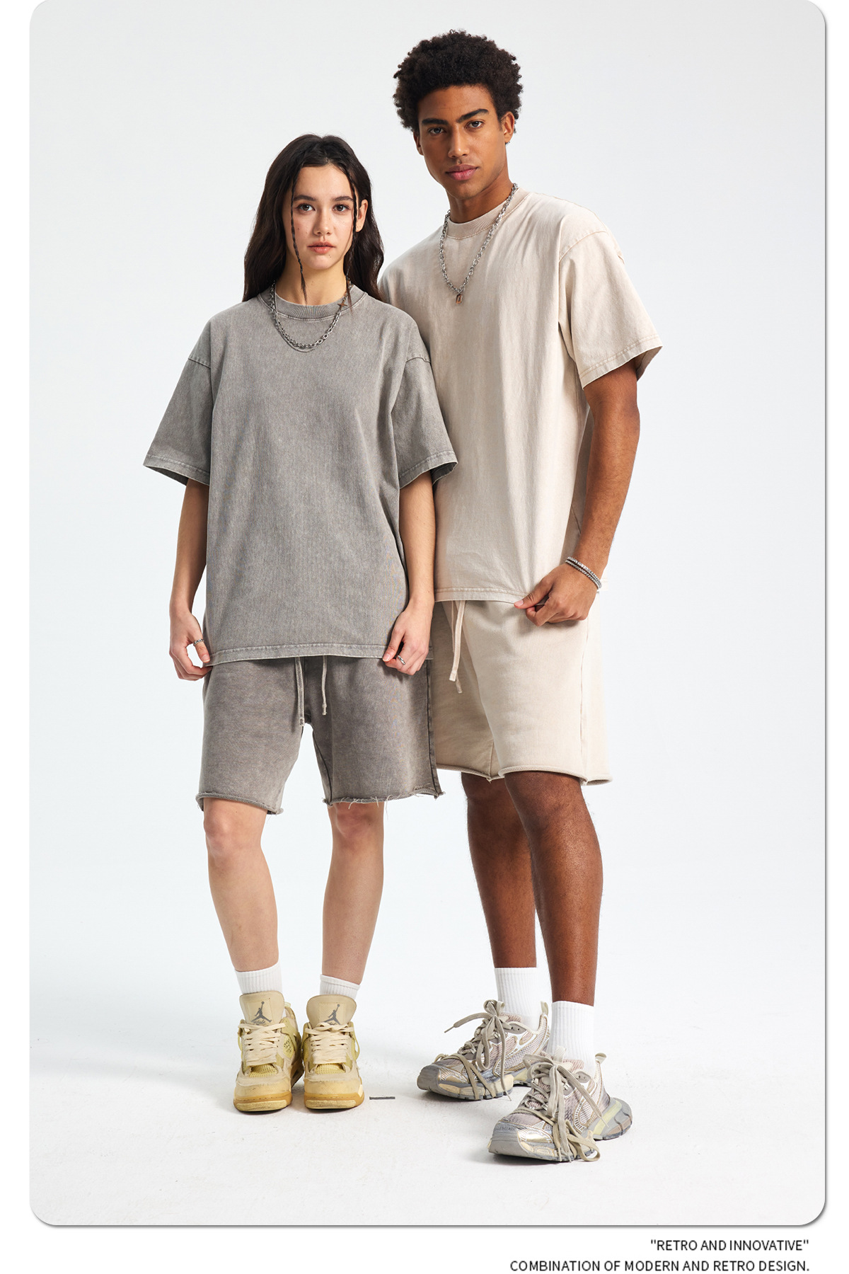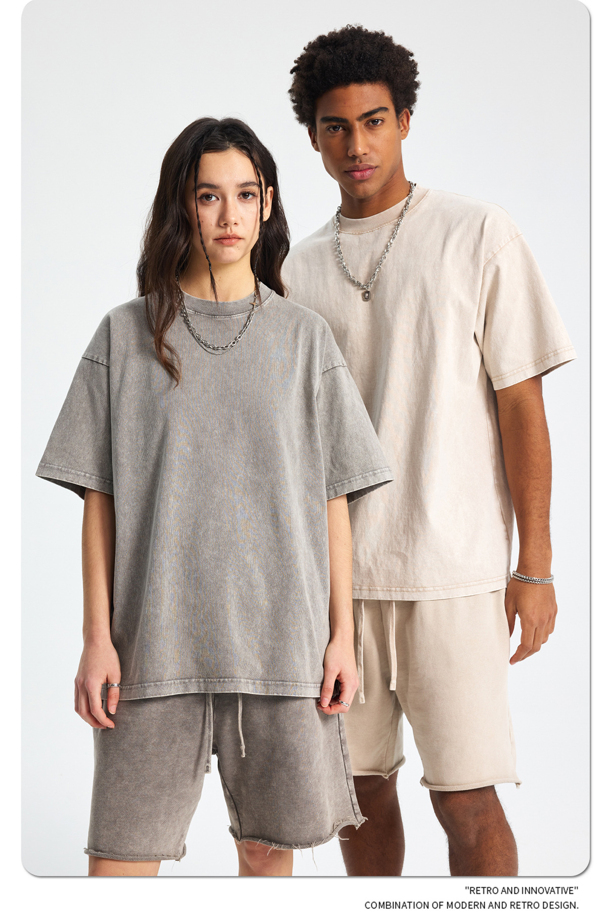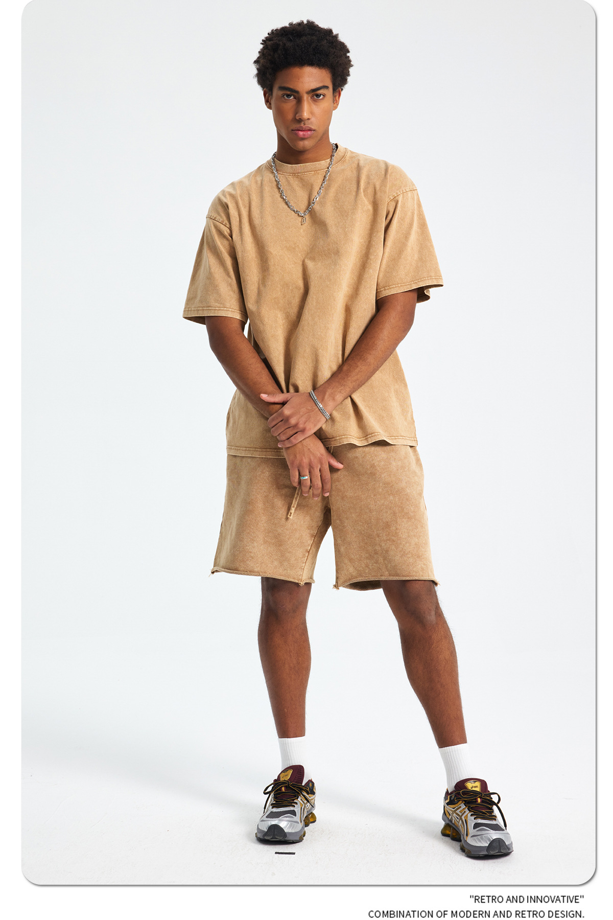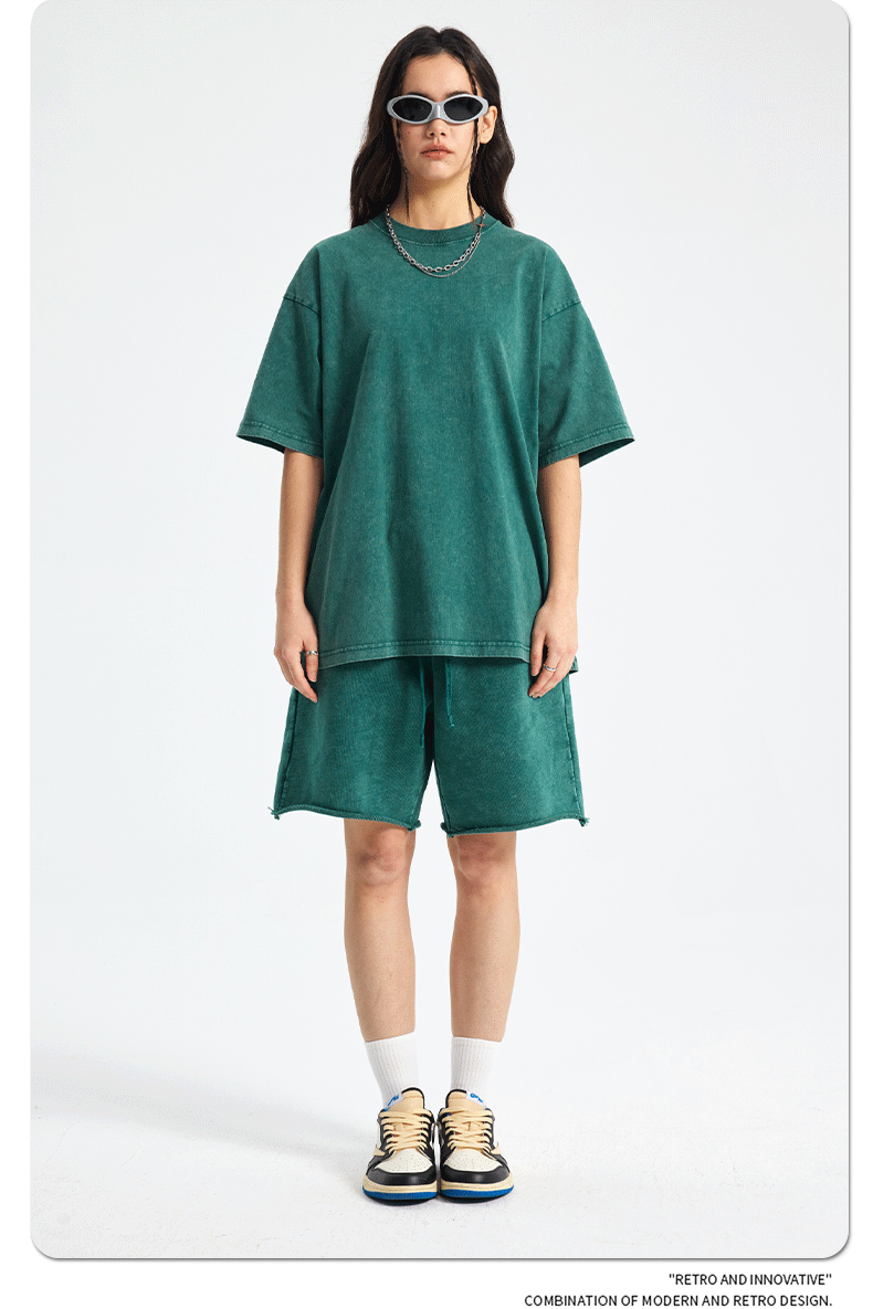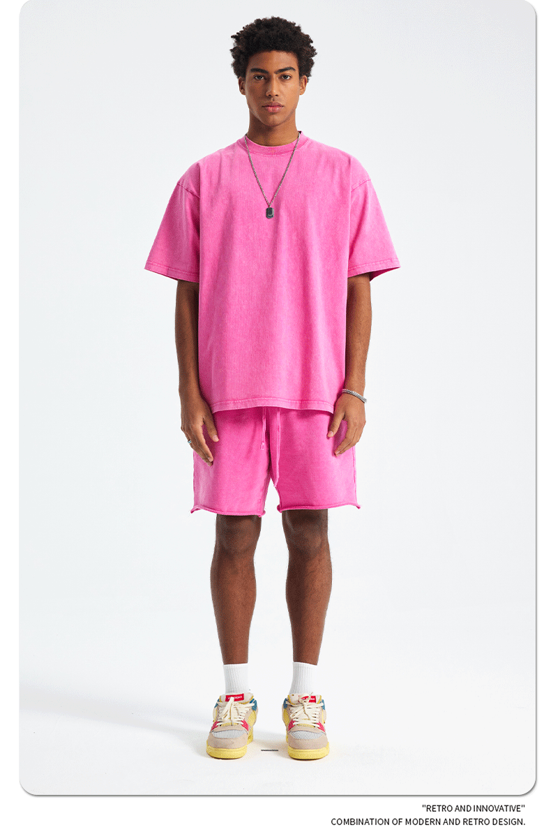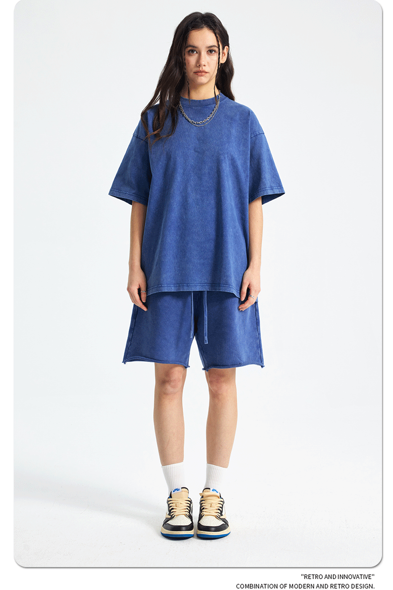 아티 남성복 | 2026 봄/여름 신상품 눈꽃 왁스 염색 워싱 반팔 반바지 커플 트렌디 브랜드 세트