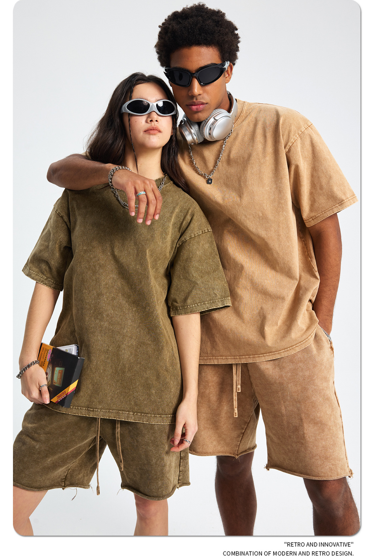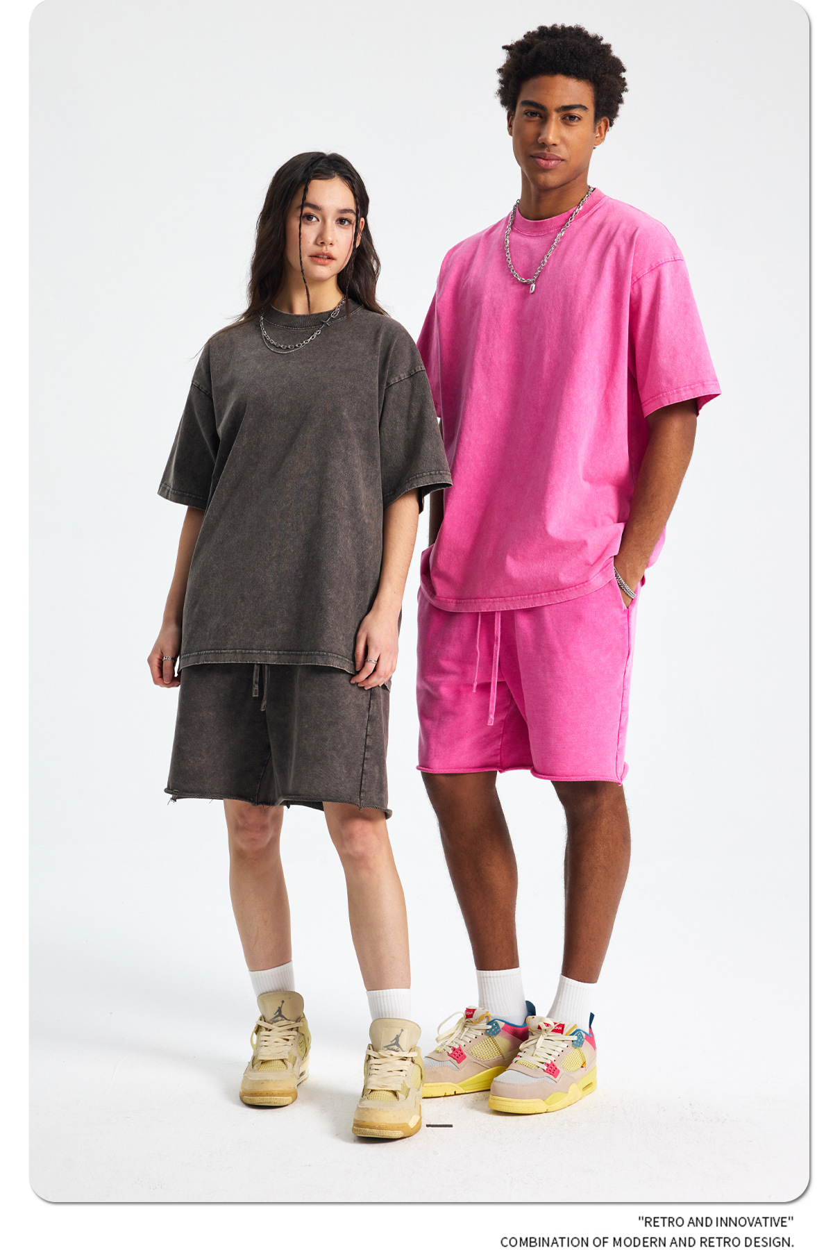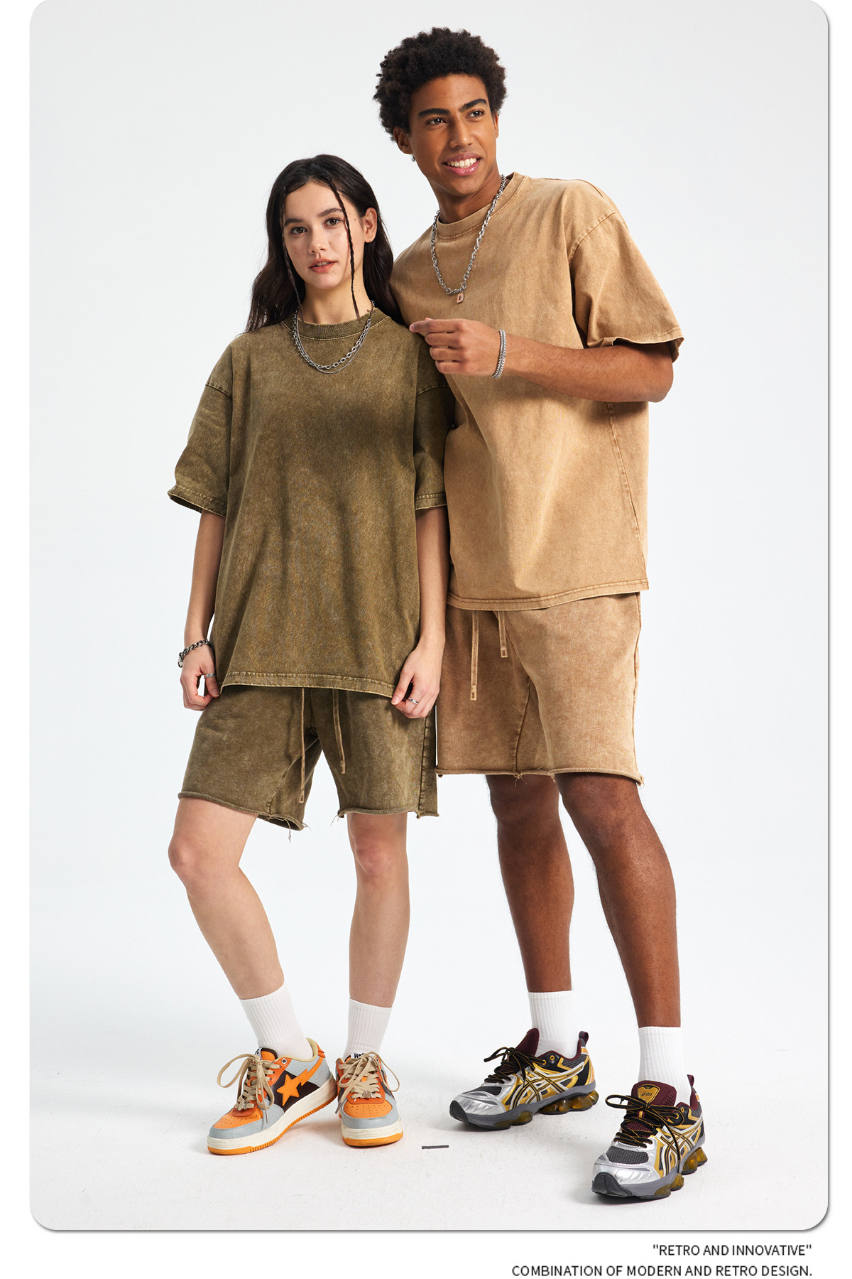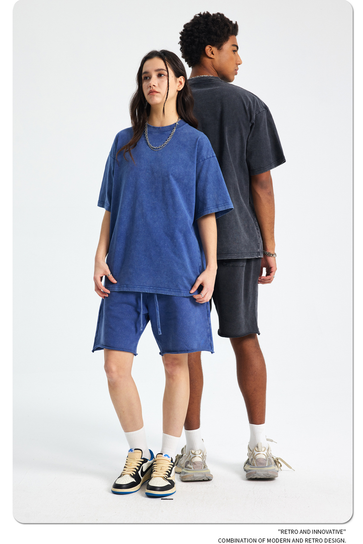 아티 남성복 | 2026 봄/여름 신상품 눈꽃 왁스 염색 워싱 반팔 반바지 커플 트렌디 브랜드 세트