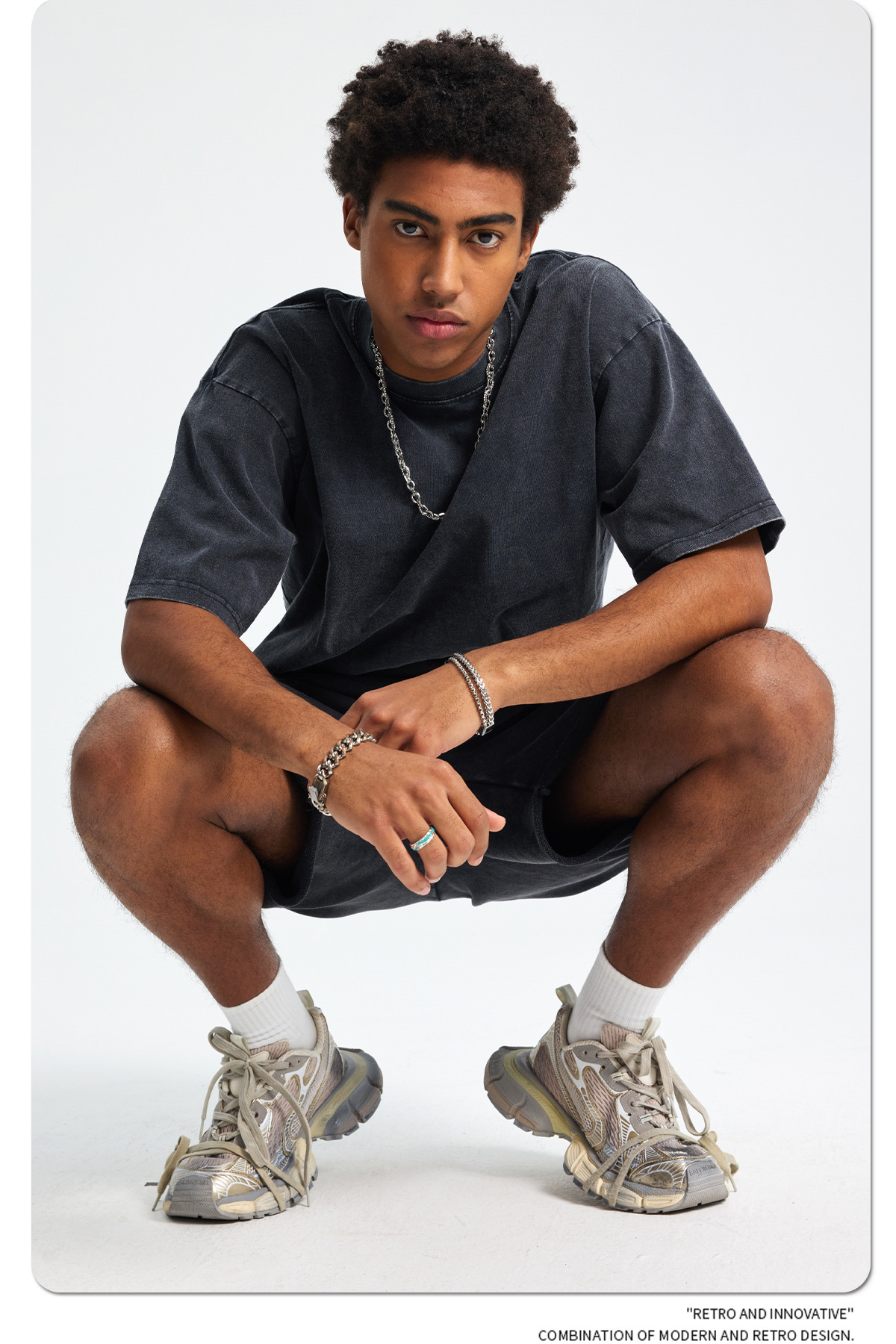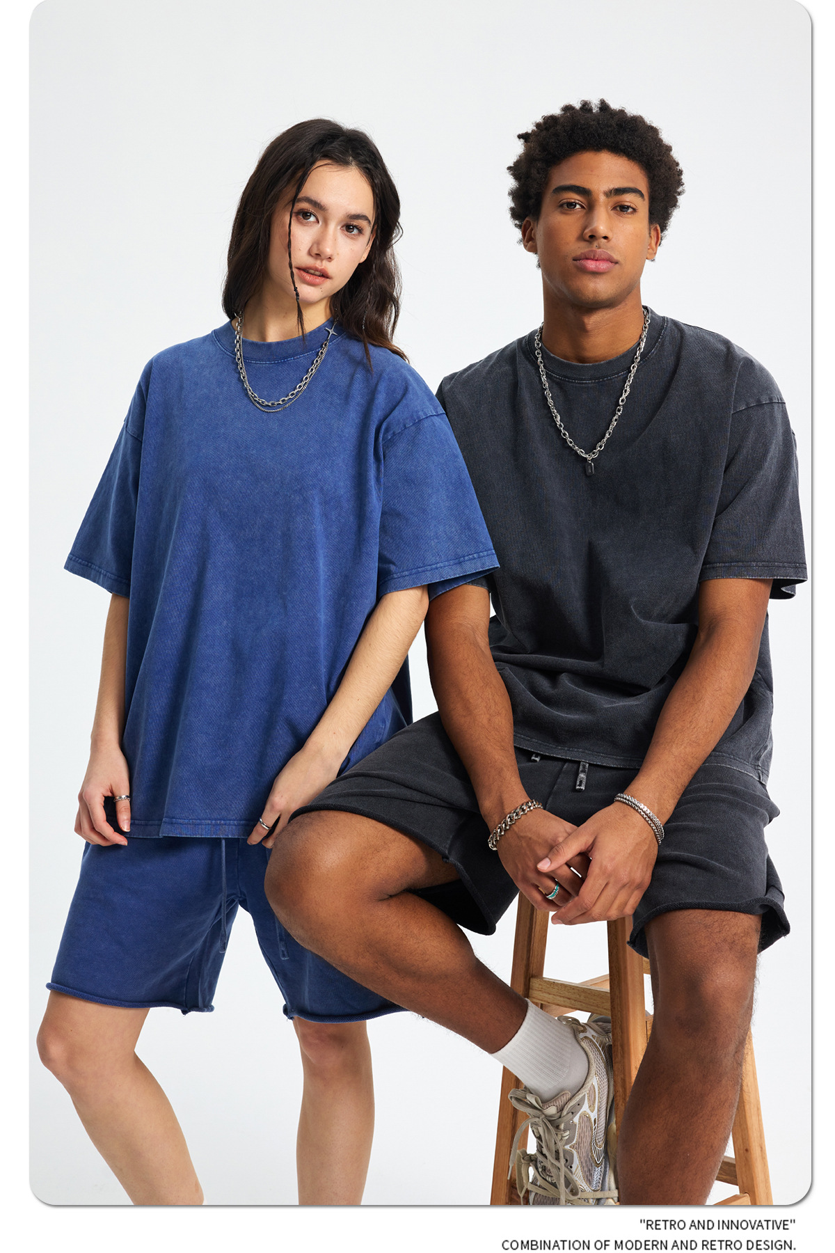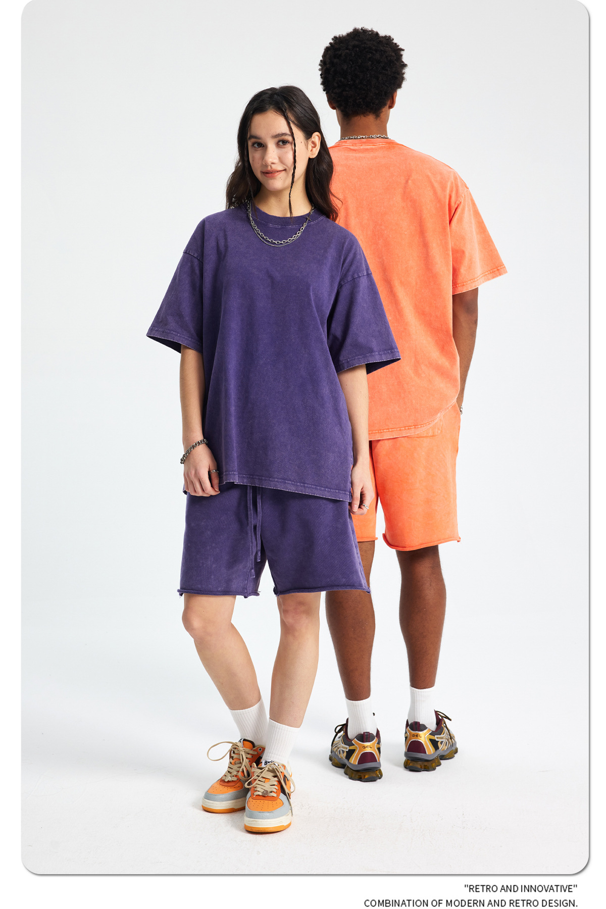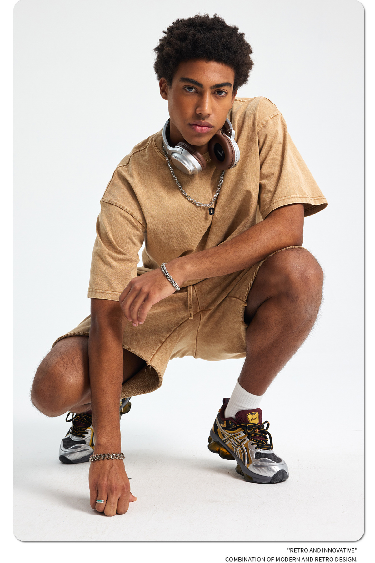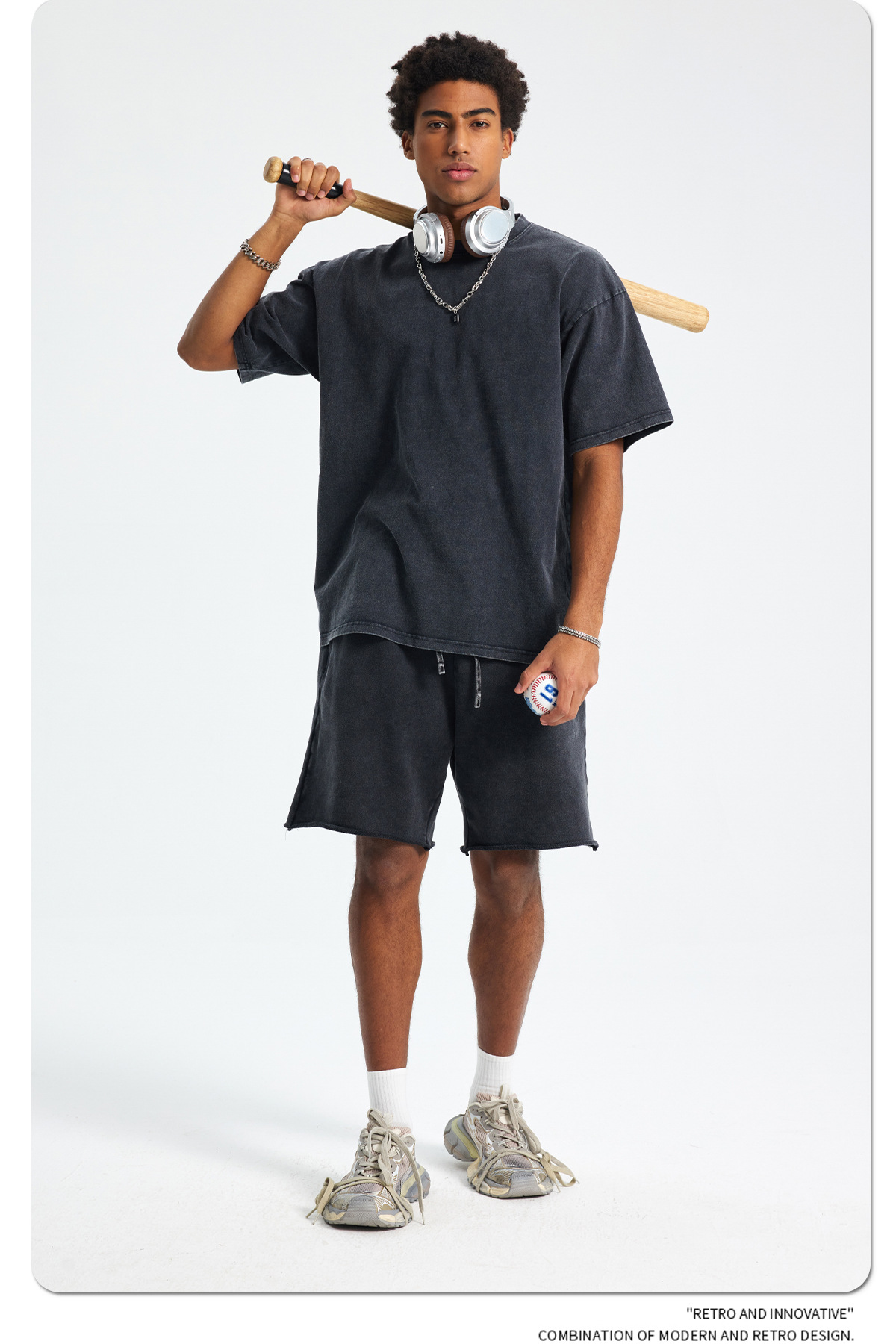 아티 남성복 | 2026 봄/여름 신상품 눈꽃 왁스 염색 워싱 반팔 반바지 커플 트렌디 브랜드 세트