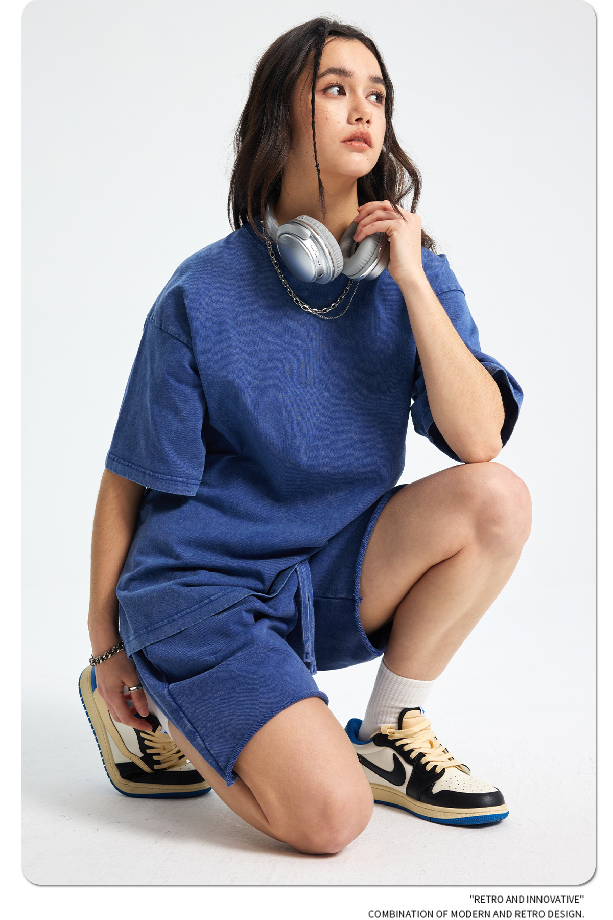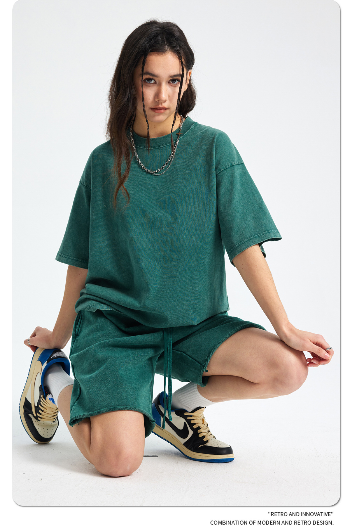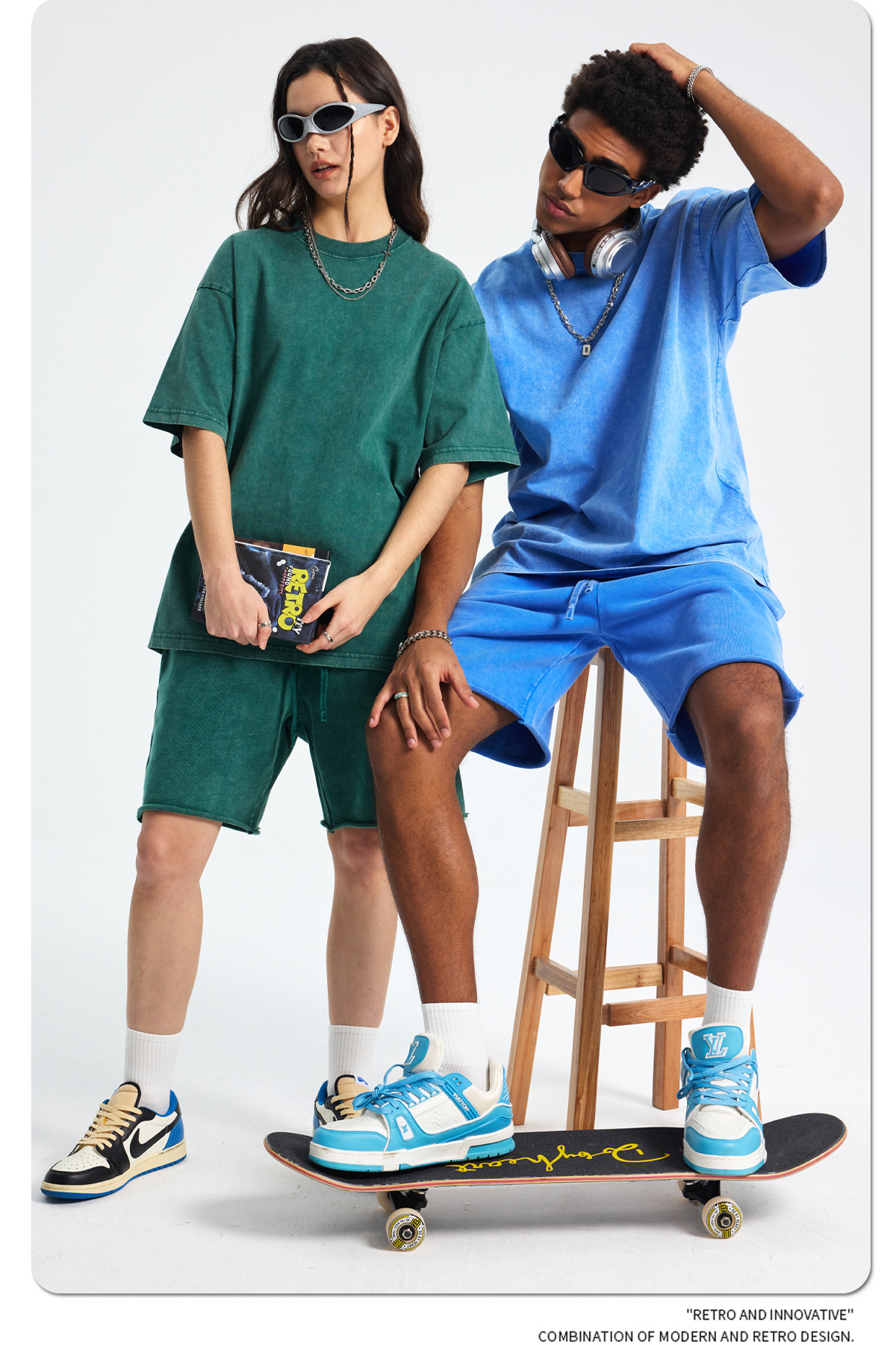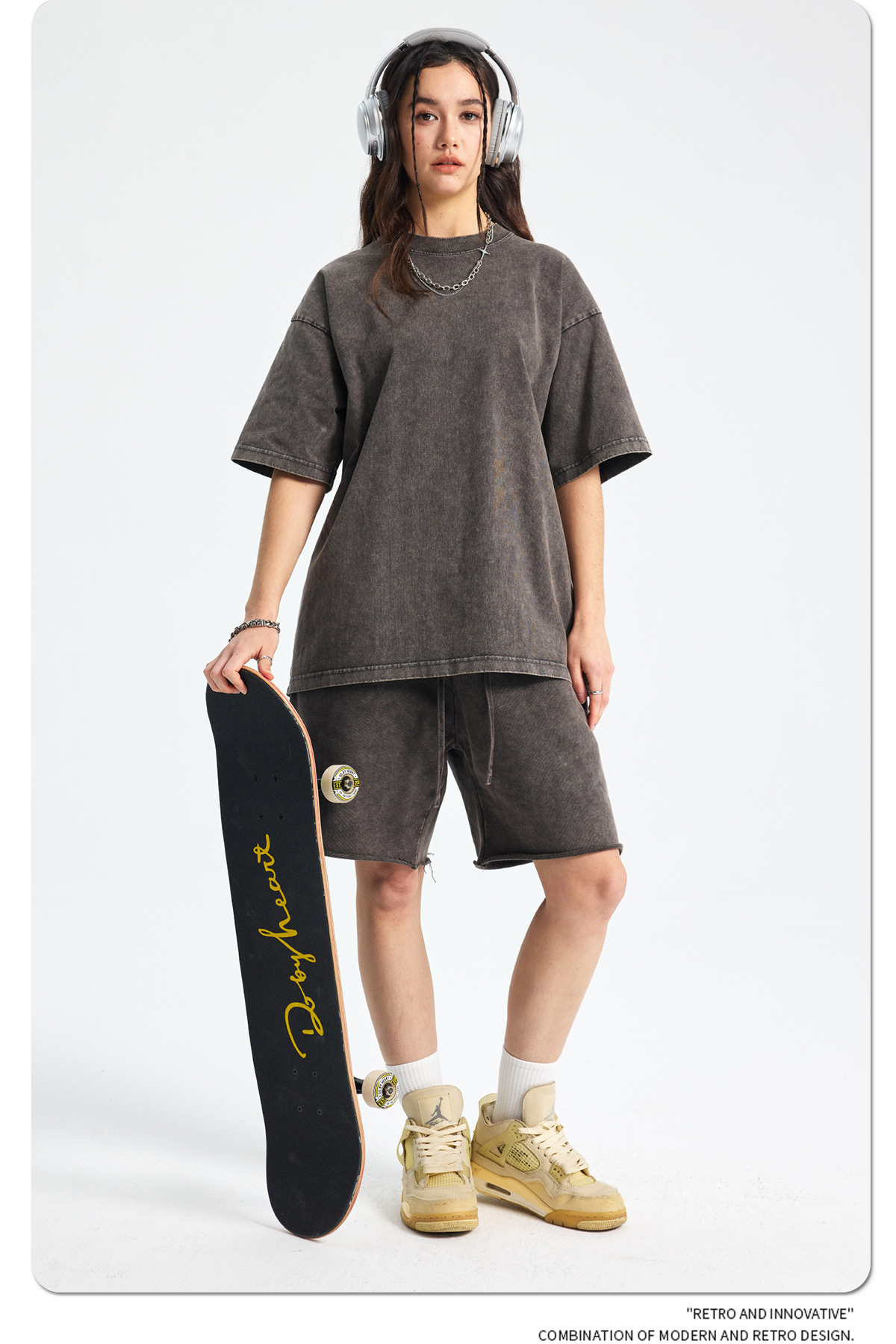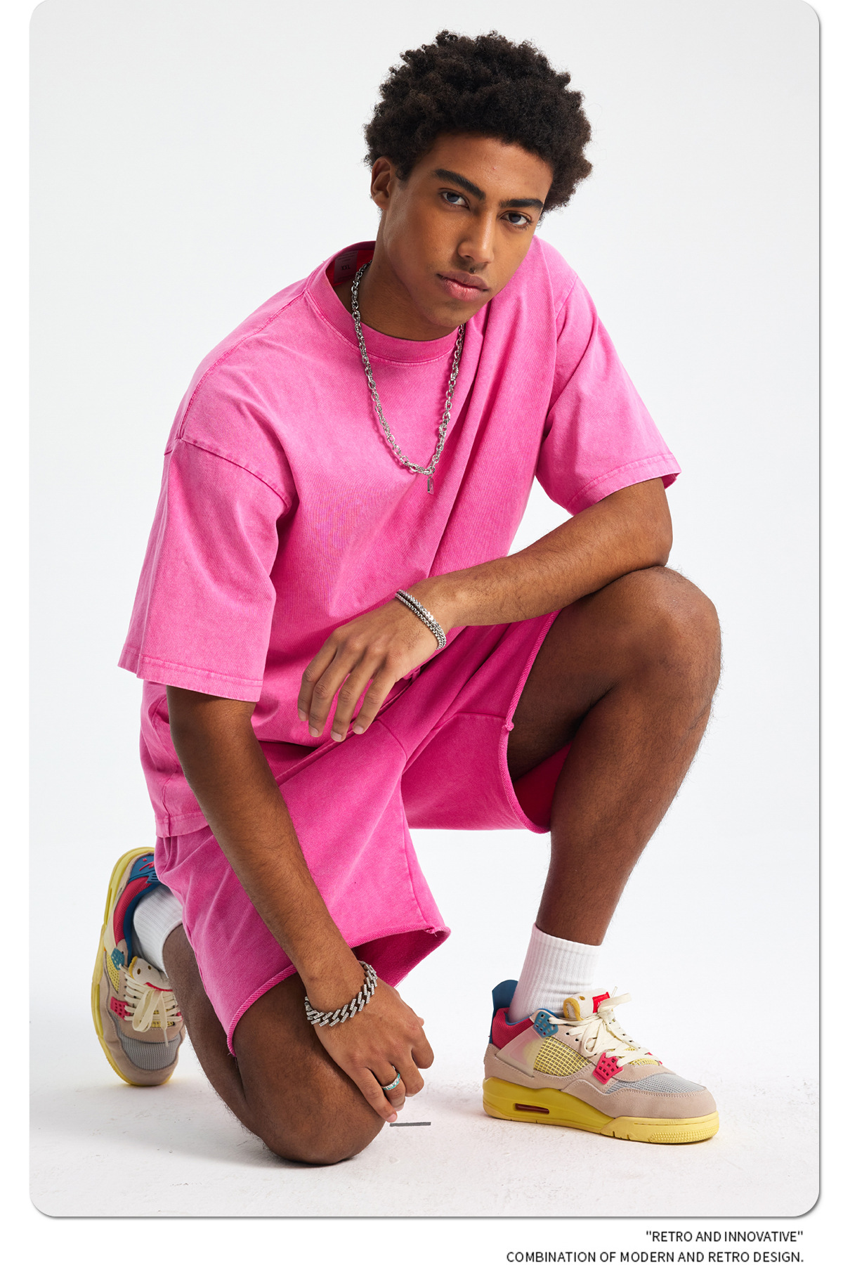 아티 남성복 | 2026 봄/여름 신상품 눈꽃 왁스 염색 워싱 반팔 반바지 커플 트렌디 브랜드 세트