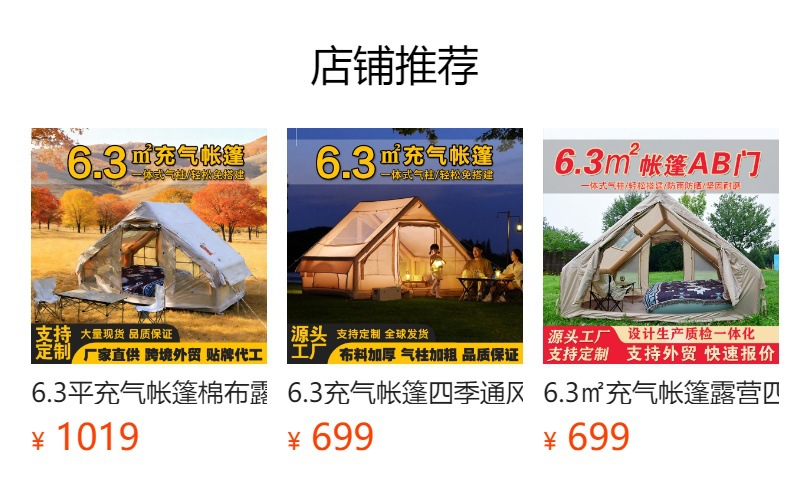 6.3 인치 공기주입식 텐트 캠핑용 보온 면 방수 옥스포드 천 사계절 자동 공기주입식 텐트스토어 가기