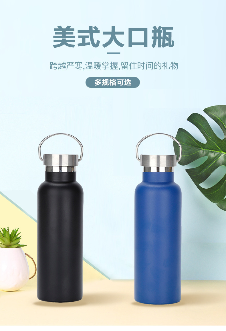 아메리칸 스타일 큰 입 병 야외 휴대용 물 컵 304 스테인레스 스틸 더블 레이어 보온병 컵 등산 냄비 광고 사용자 정의스토어 가기