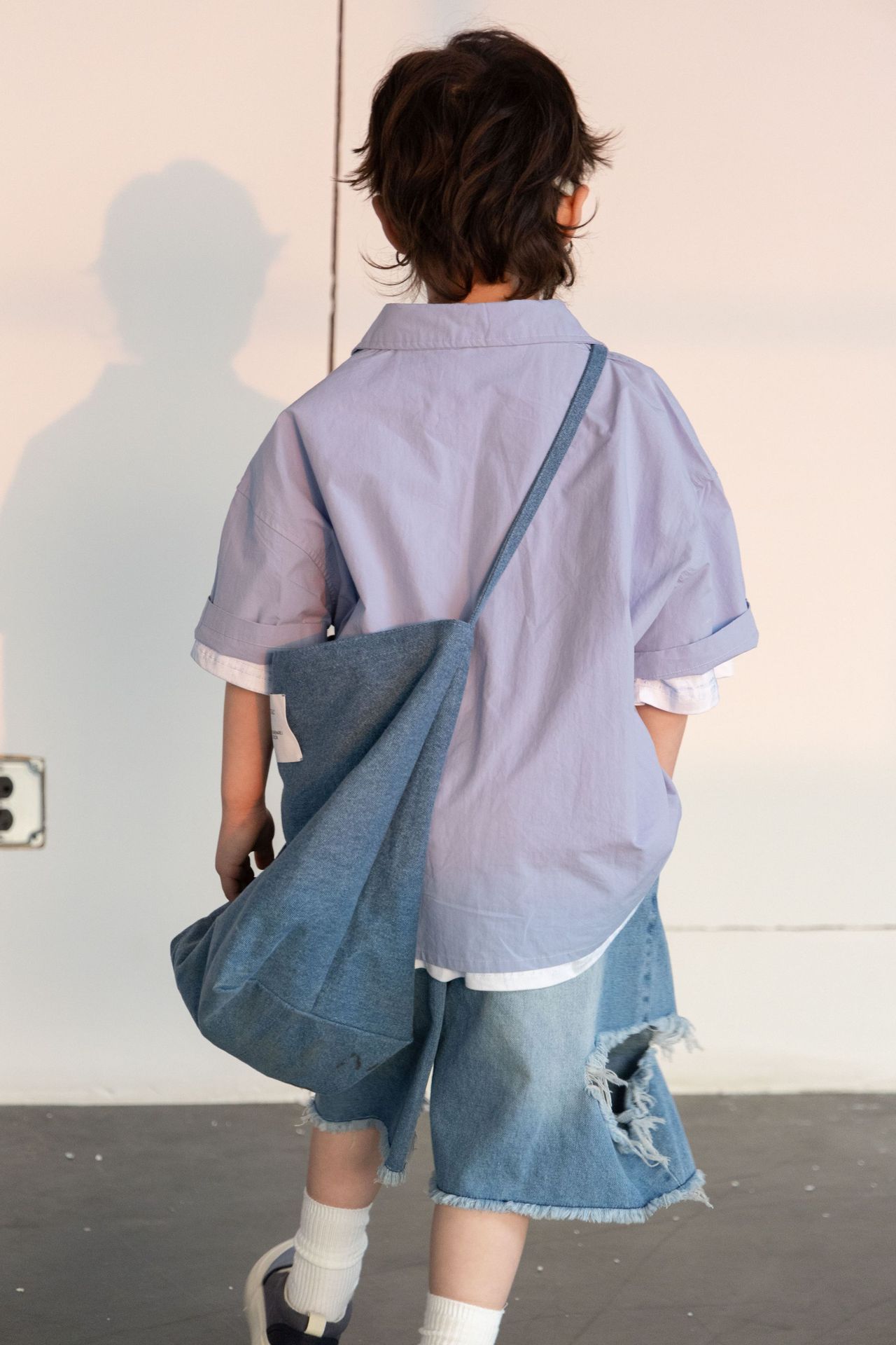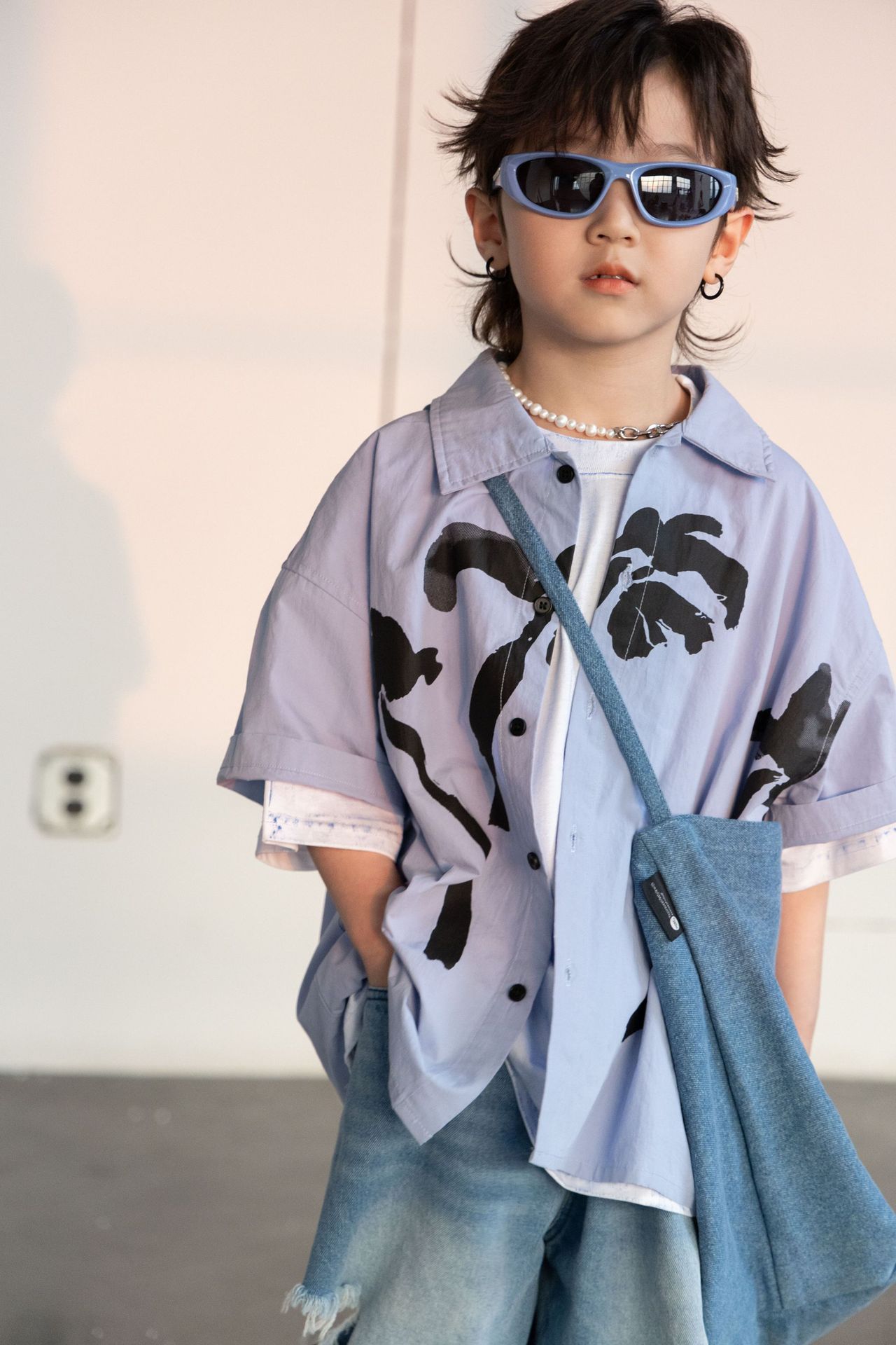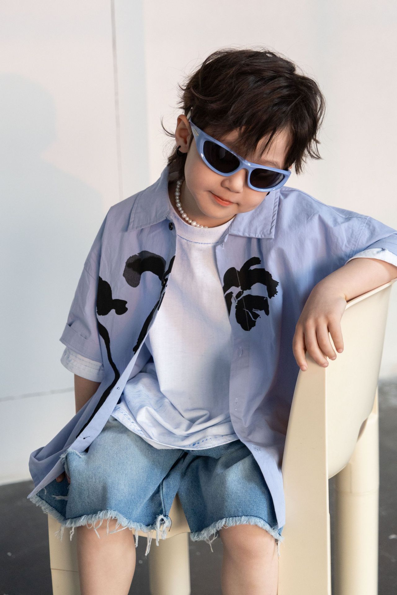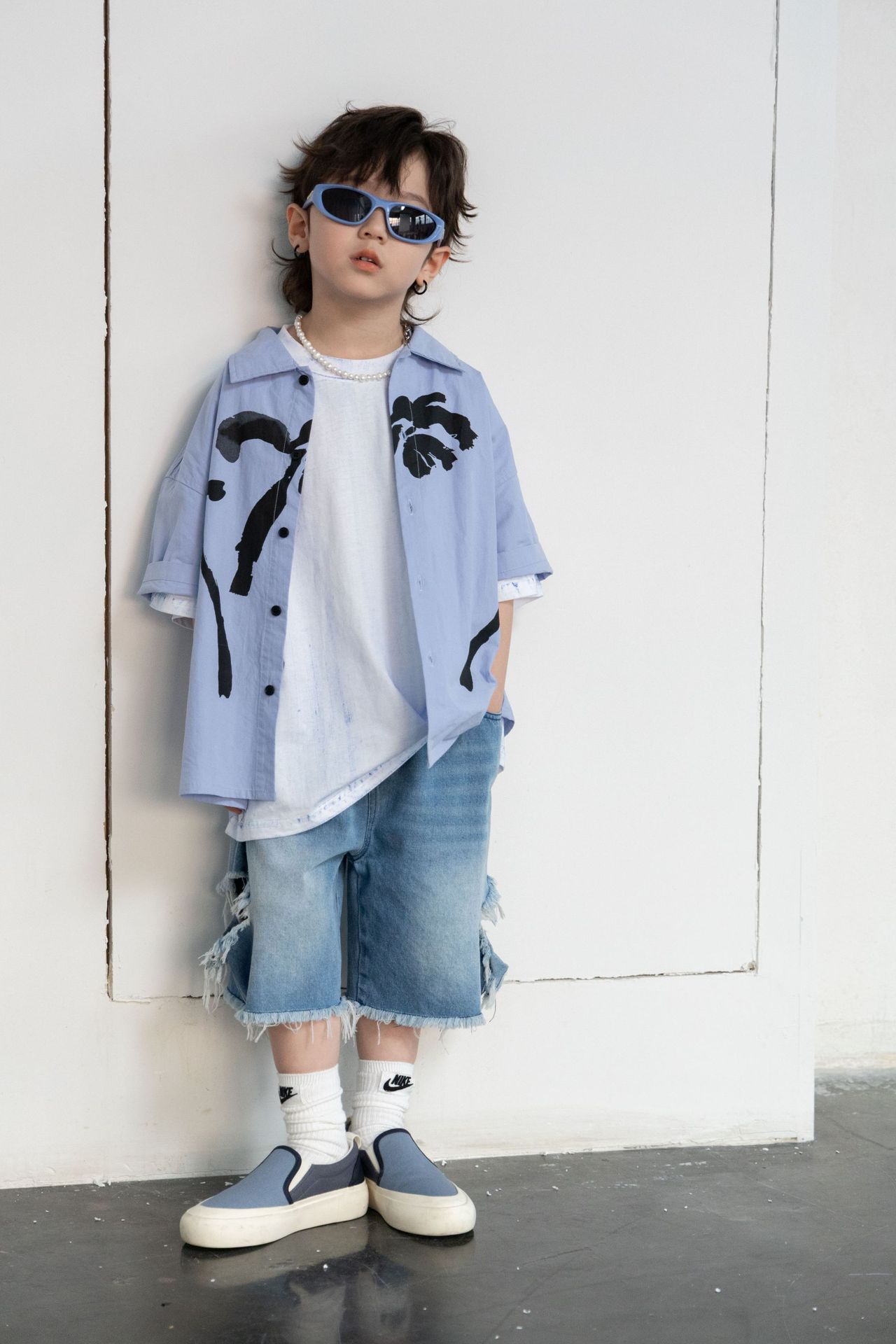 Chuyi 의류 아동용 반팔 셔츠 2024 여름 새 스타일 소년 한국 스타일 아동 의류 코코넛 나무 얇은 셔츠스토어 가기