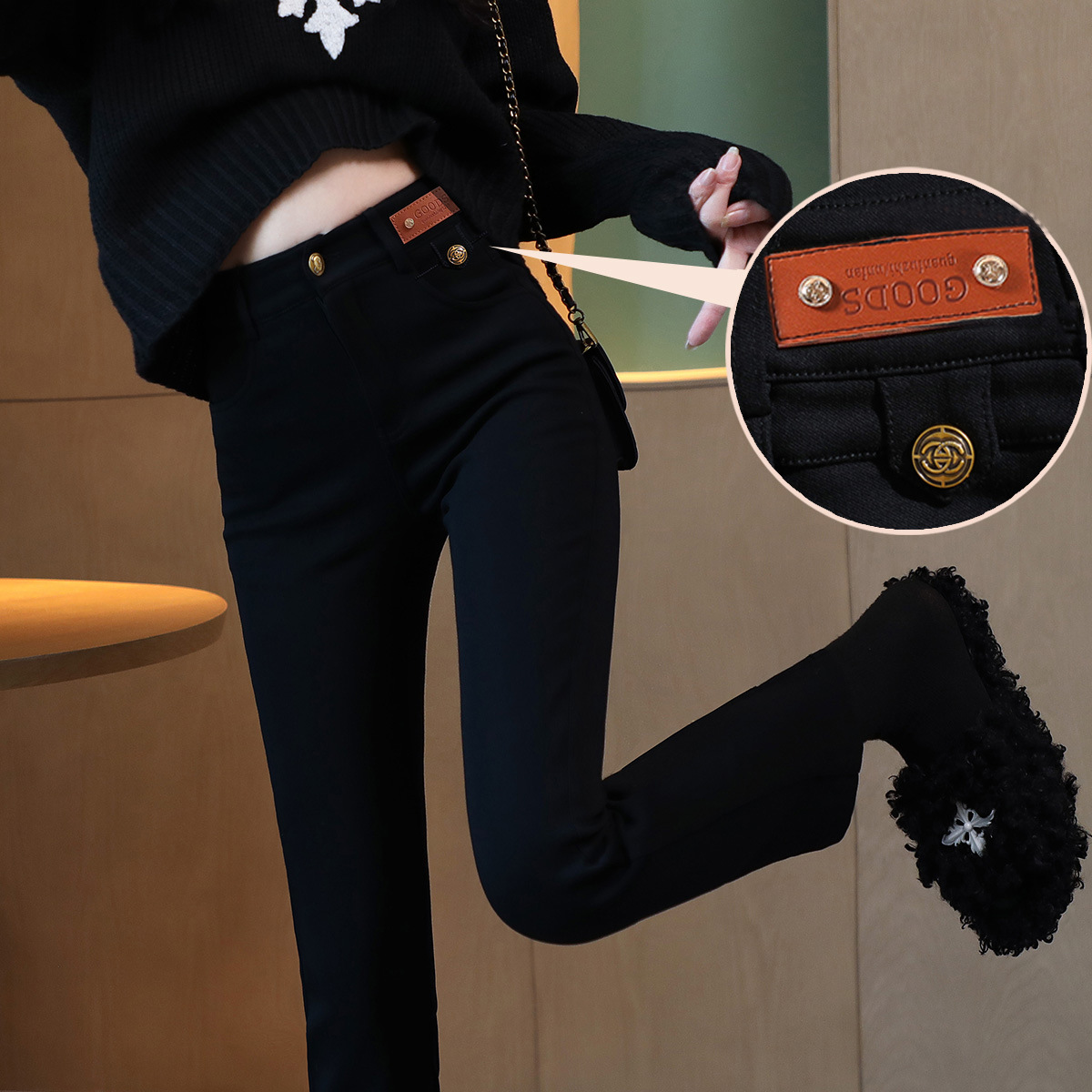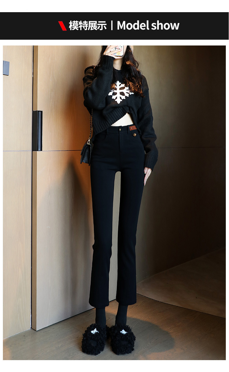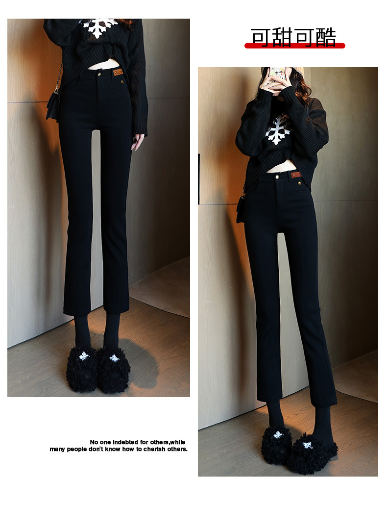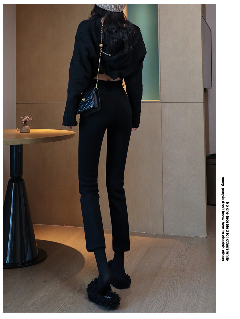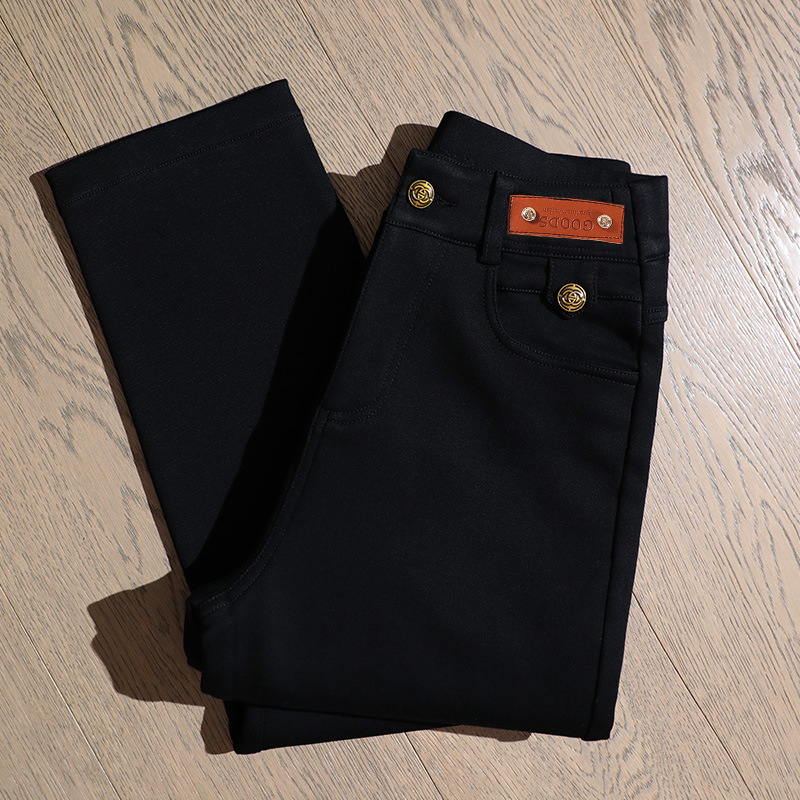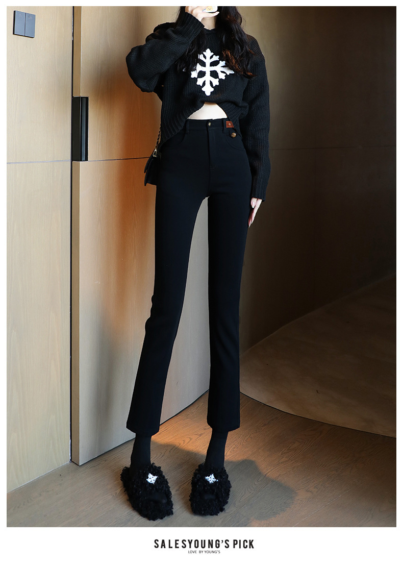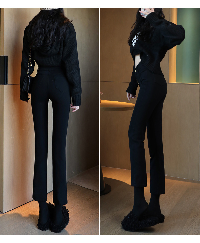 블랙 프렌치 스틱 파이프 바지 여자 봄 여름 가을 올 매치 작은 89 하이 허리 슬리밍 베이스 스트레이트 블랙 바지스토어 가기
