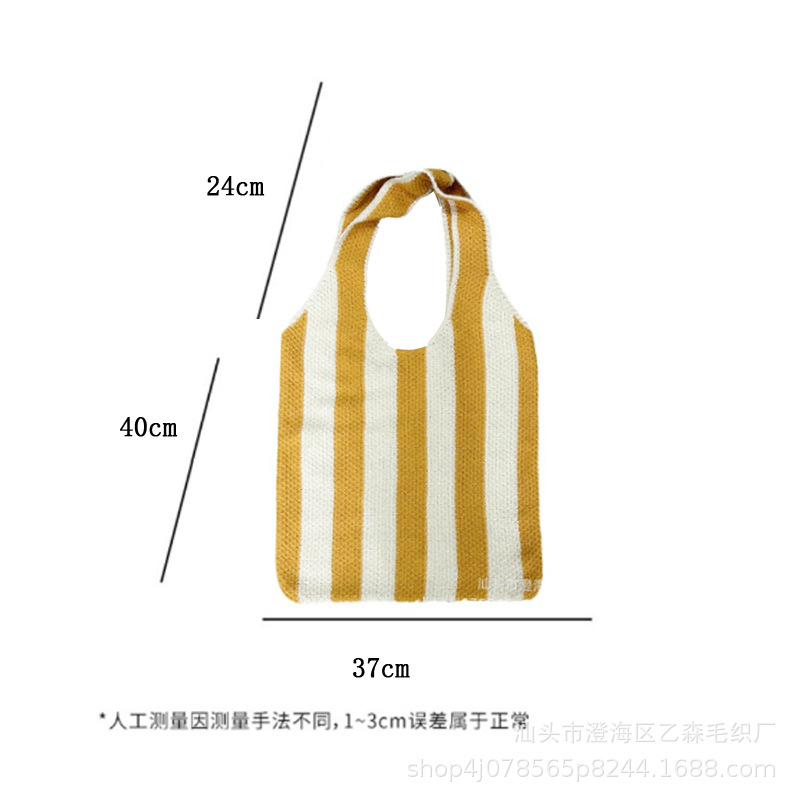 디자인 외국 스타일의 대형 줄무늬 울 라인 스퀘어 니트 여행 가방 가벼운 가스 가방 짠 가방 대용량 토트 타이드스토어 가기