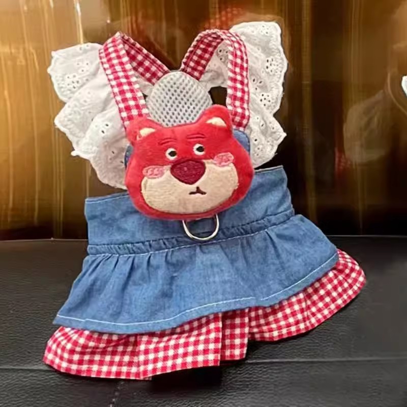 애완견 개 옷 공주 치마 작은 개 테디 비샤 요크셔 여름 얇은 교수형 견인 로프스토어 가기
