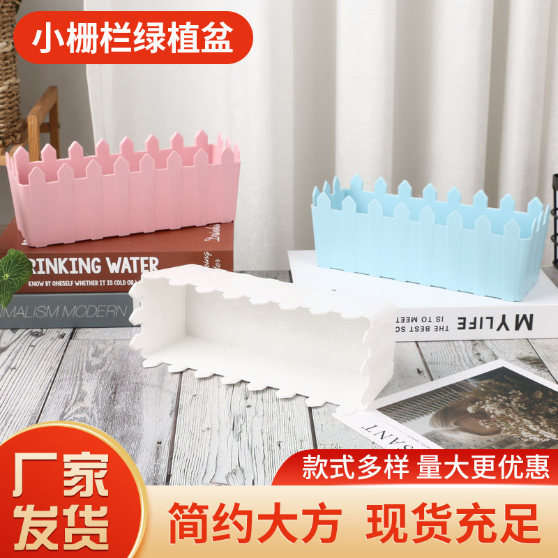 작은 울타리 플라스틱 실제 꽃꽂이 식물 녹색 식물 냄비 색상 창조적 인 플라스틱 울타리 작은 꽃 냄비