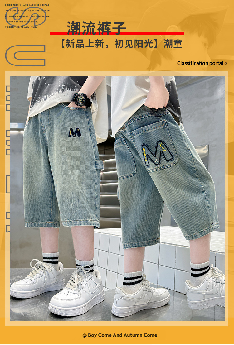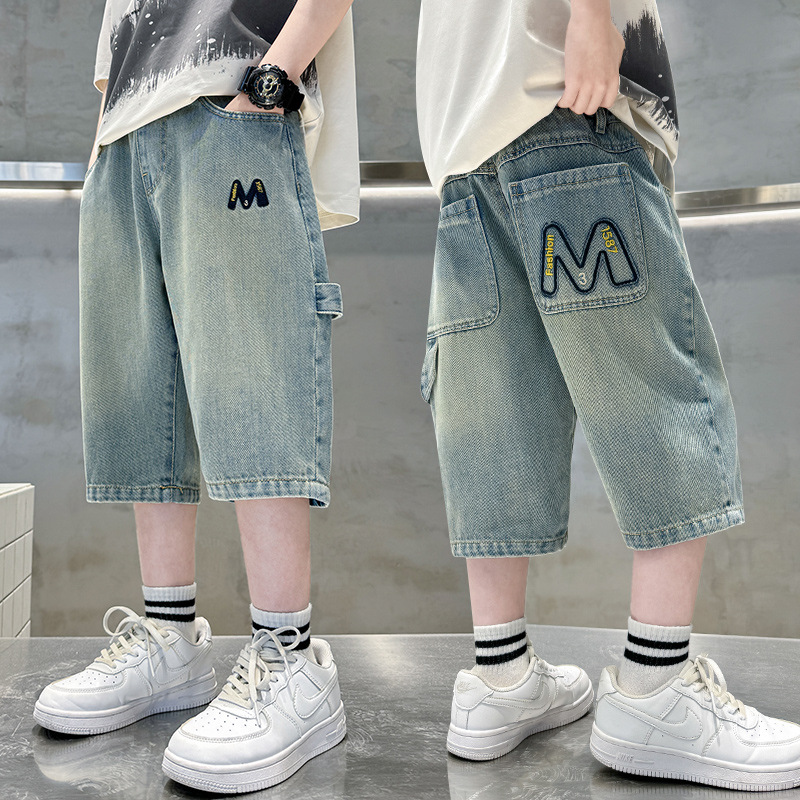 아동복 남아 바지 2026년 신상 여름 아동용 중대형 아동용 루즈핏 다용도 여름복 데미지 데님 반바지 트렌디스토어 가기