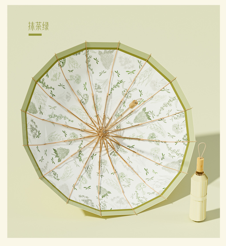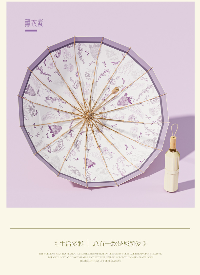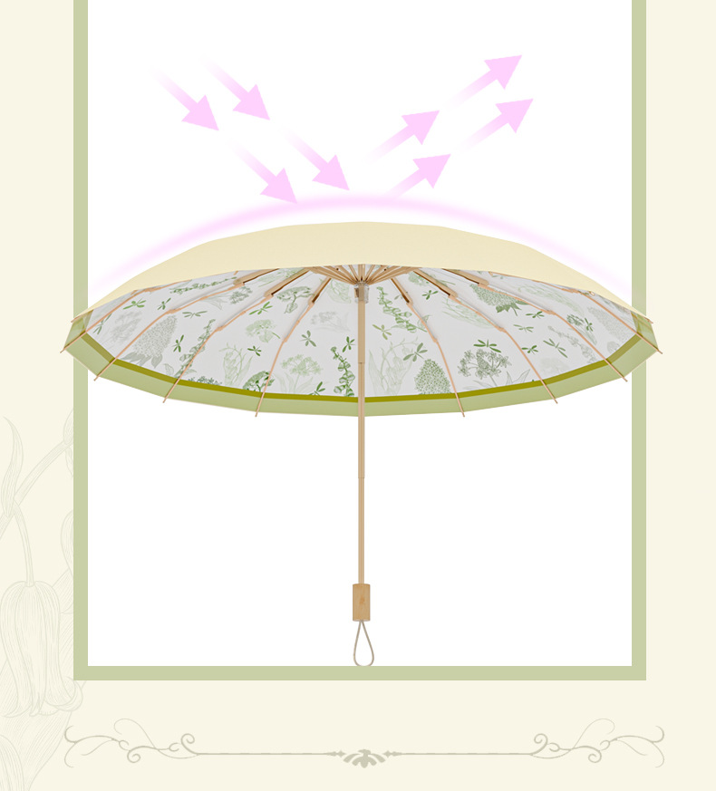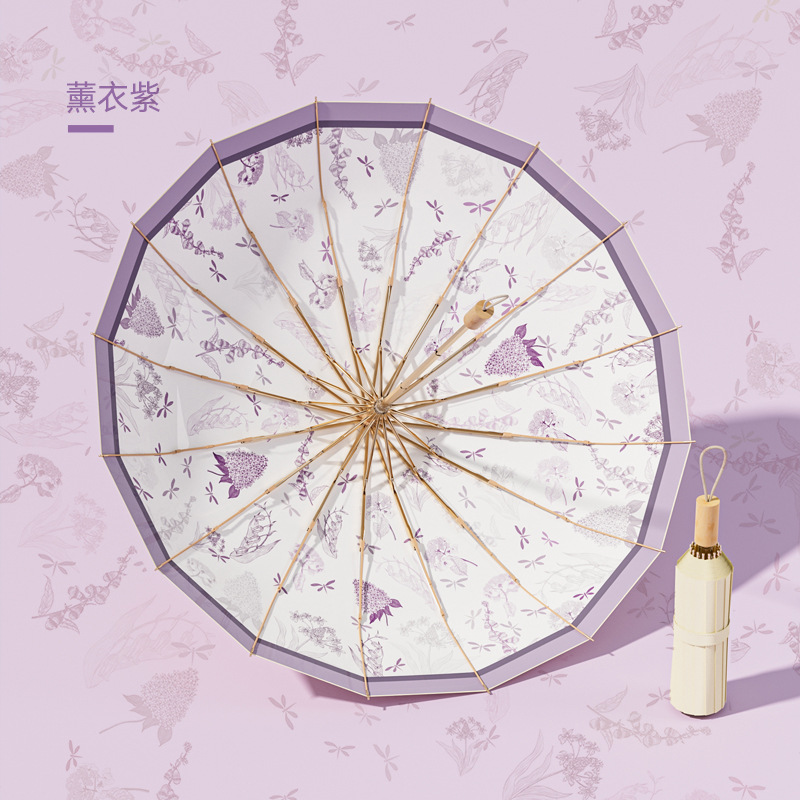 16-뼈 세 접는 햇빛 우산 컬러 접착제 선 스크린 우산 안티-UV 프렌치 레트로 맑고 비 듀얼 사용 맞춤형 태양 우산